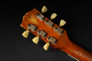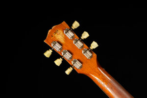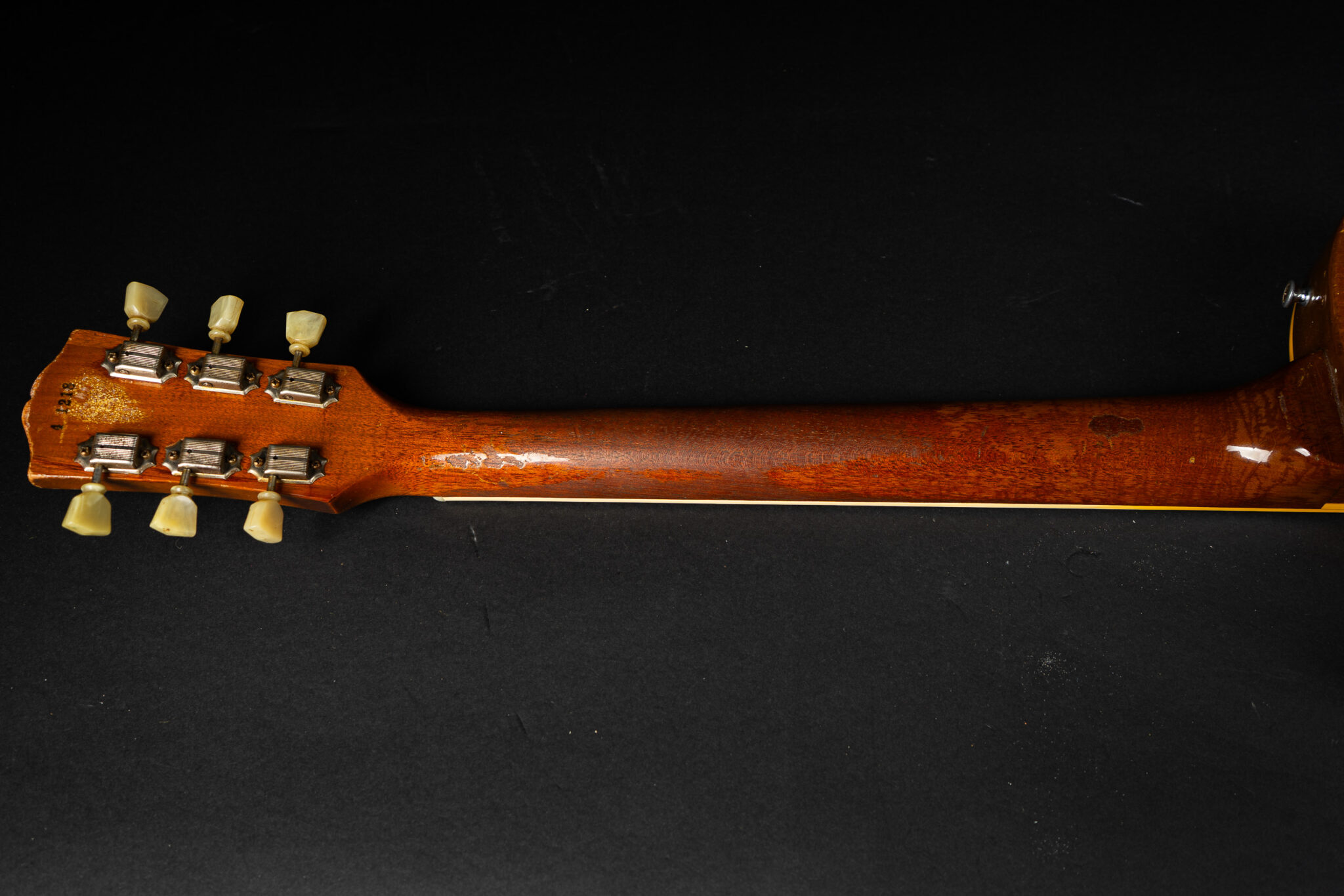 Clean and all original 1954 Gibson Les Paul Goldtop in excellent condition. Great example of a “wraptail” Goldtop with corrected neck angle – for many players this third version (second would be 1953 thin ear tailpiece w/slightly adjusted neck angle) is the perfect Les Paul. The basic and straight wraparound bridge design delivers a big tone and endless sustain. The guitar has been played so there is some honest wear, especially on the back of the neck but the top is still clean and just right broken in. The guitar is crack free and had no repairs – there is a small scar in the wood on the back of the neck near the headstock we only mention since you expect this from us being as honest as we can – thats why you buy from GuitarPoint. Super nice Goldtop that sounds really outstanding – amongst the best examples of this species we’ve had – and we owned, sold and played a few dozens of 53-55 wraptail Goldtops! Comes incl. original flat (great condition!) Gibson Geib case.