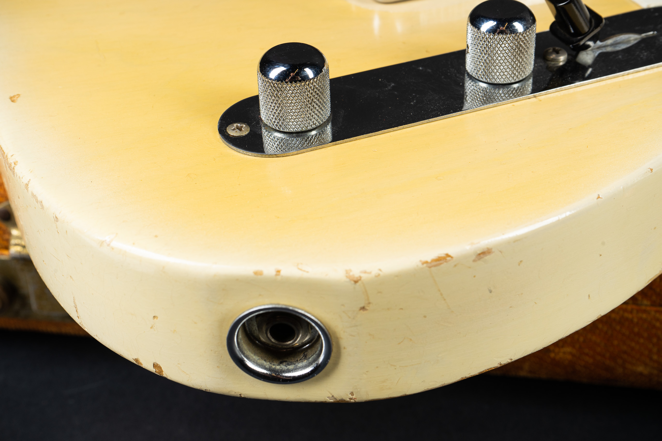 All original 1956 Fender Esquire – perfect blonde example of one of the best years for Fender. Once you try these soft V necks you get it. This is a lightweight clean guitar, 100% untouched with original tweed case. One of the nicest flame necks we have ever seen on a mid 50s Fender. It plays and sounds as good as it looks. Perfect finish. Pictures of this guitar were used in the Pinecaster book to illustrate the rare flame figuring on early to mid 50s examples.