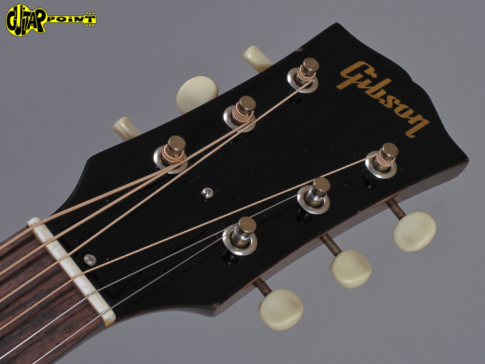 Outstanding clean 1965 Gibson B-25 in Sunburst finish in all original and excellent++ condition for its age. This B-25 is one of the desirable "pre/65" models with the wide 43mm nut-width, not as thin as the newer ones. The guitar has barely any visible play-wear, no repairs, the frets are still in perfect shape. The original Kluson "3-on a stripe" tuners have never been changed and still work fine. The medium sized C-spape neck and is very comfortable to play and sounds fantastic. Comes in a brown Alligator softcase.