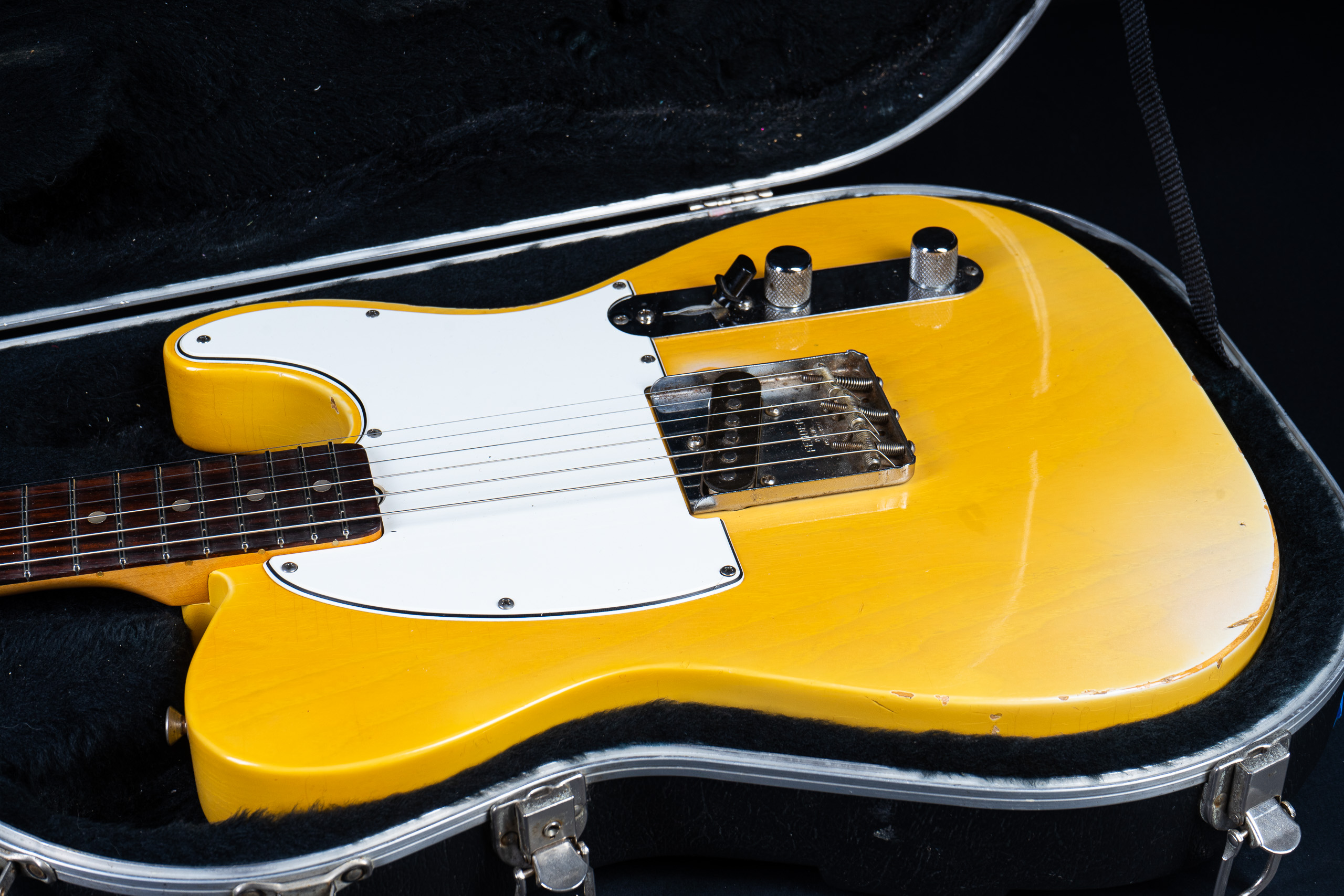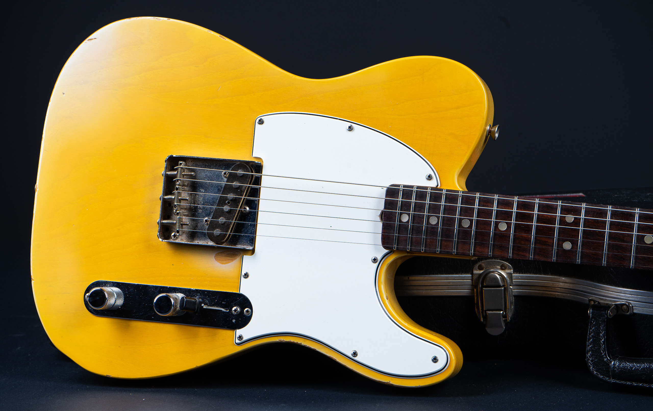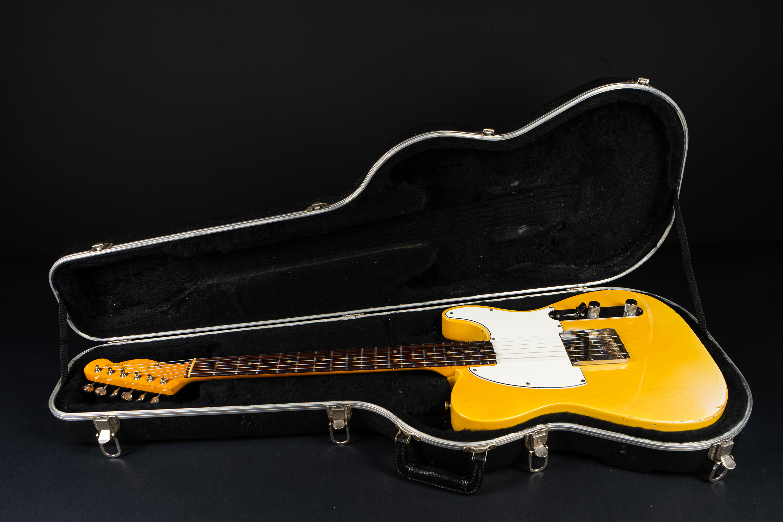 Super cool 1965/1966 Esquire in great condition. The guitar has a December 1965 neck and January 1966 pots and still that super nicely yellowed more see-through color than the later models. How many Esquires form this period have you seen? Very rare indeed. There is some routing in the neck-PU and electronic cavities, there very likely has been a slightly bigger pickup installed but none of this is visible without dissembling the guitar. Great sounding and actually very beautiful instrument! Comes incl. newer hardcase.