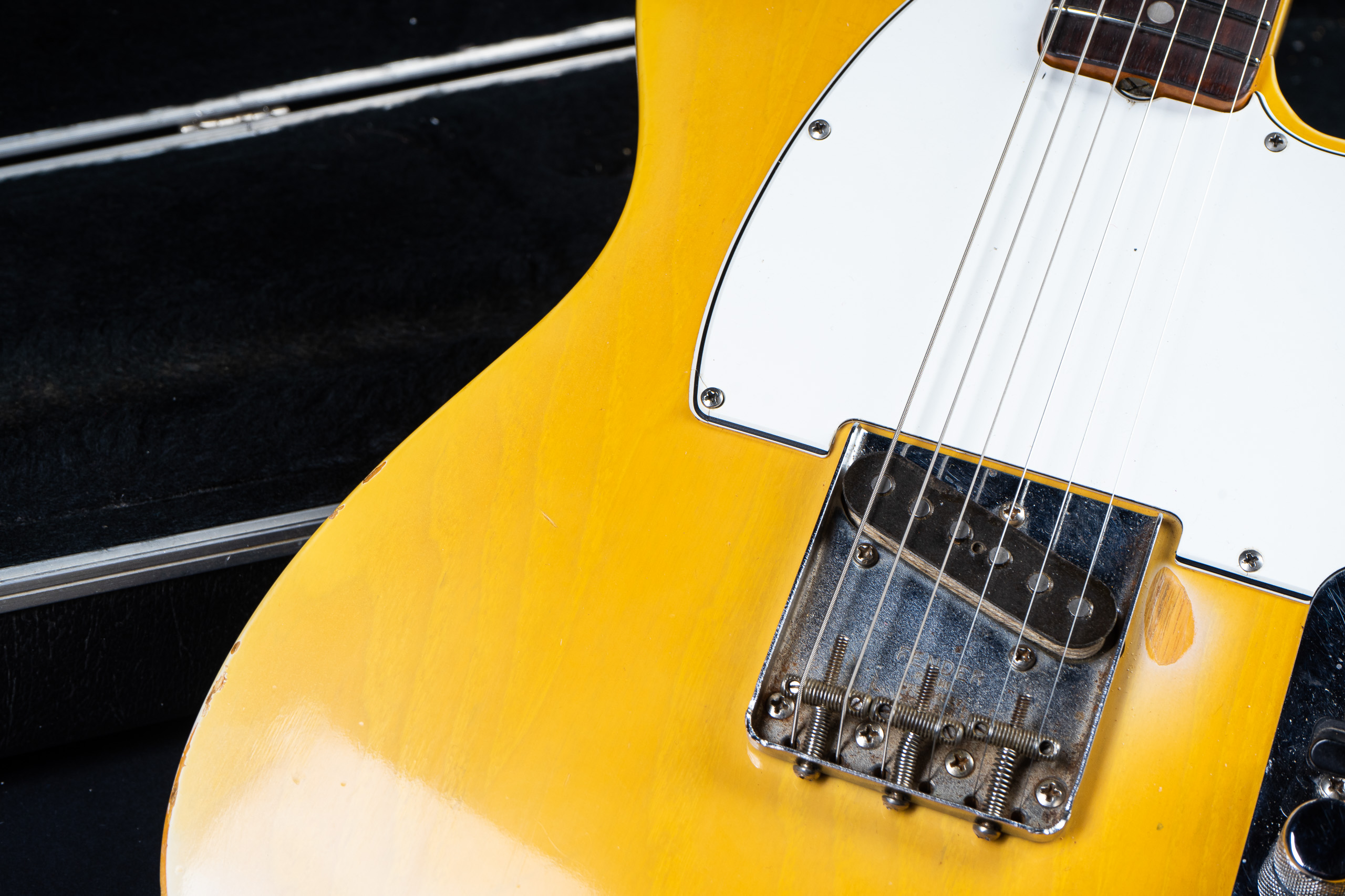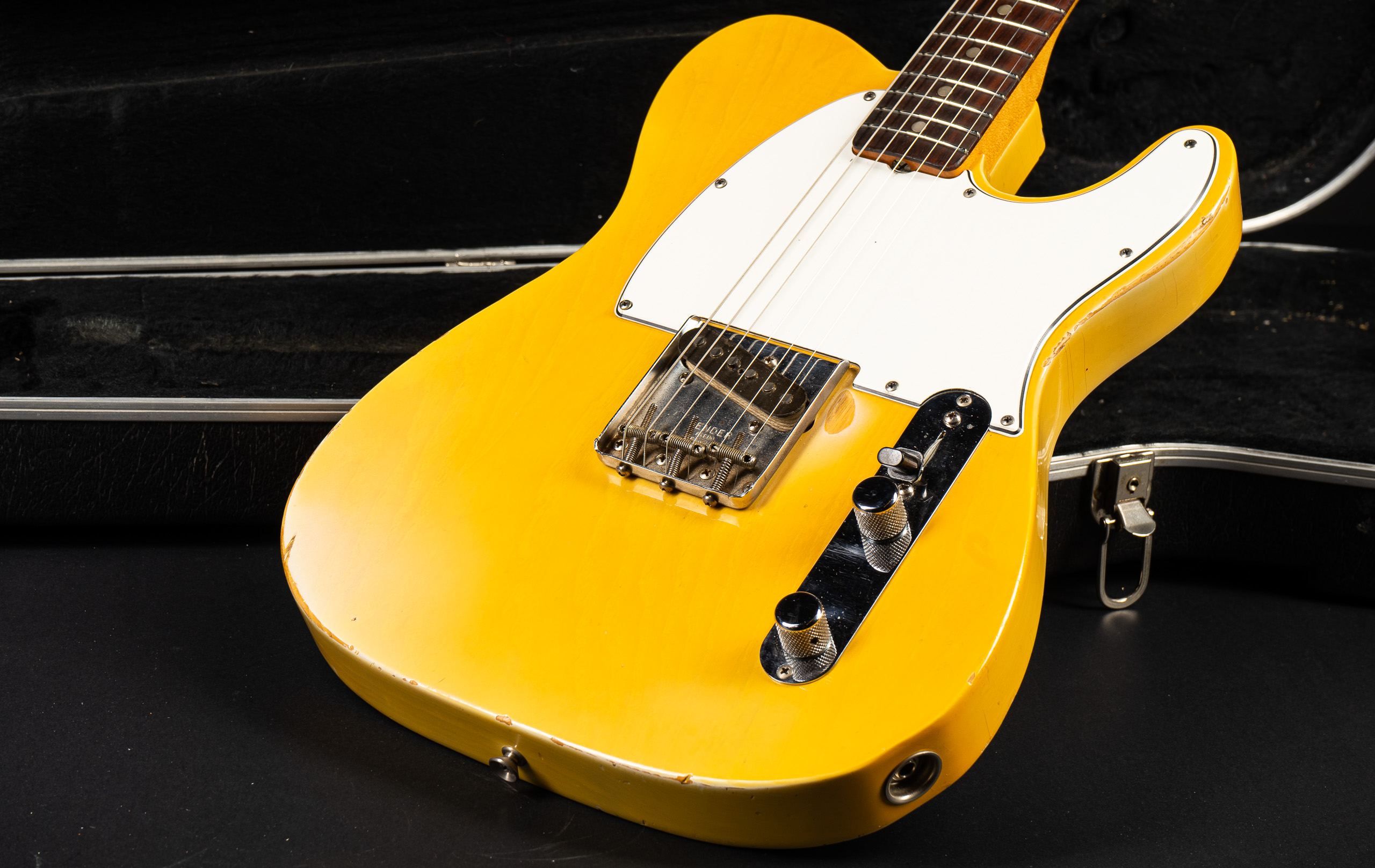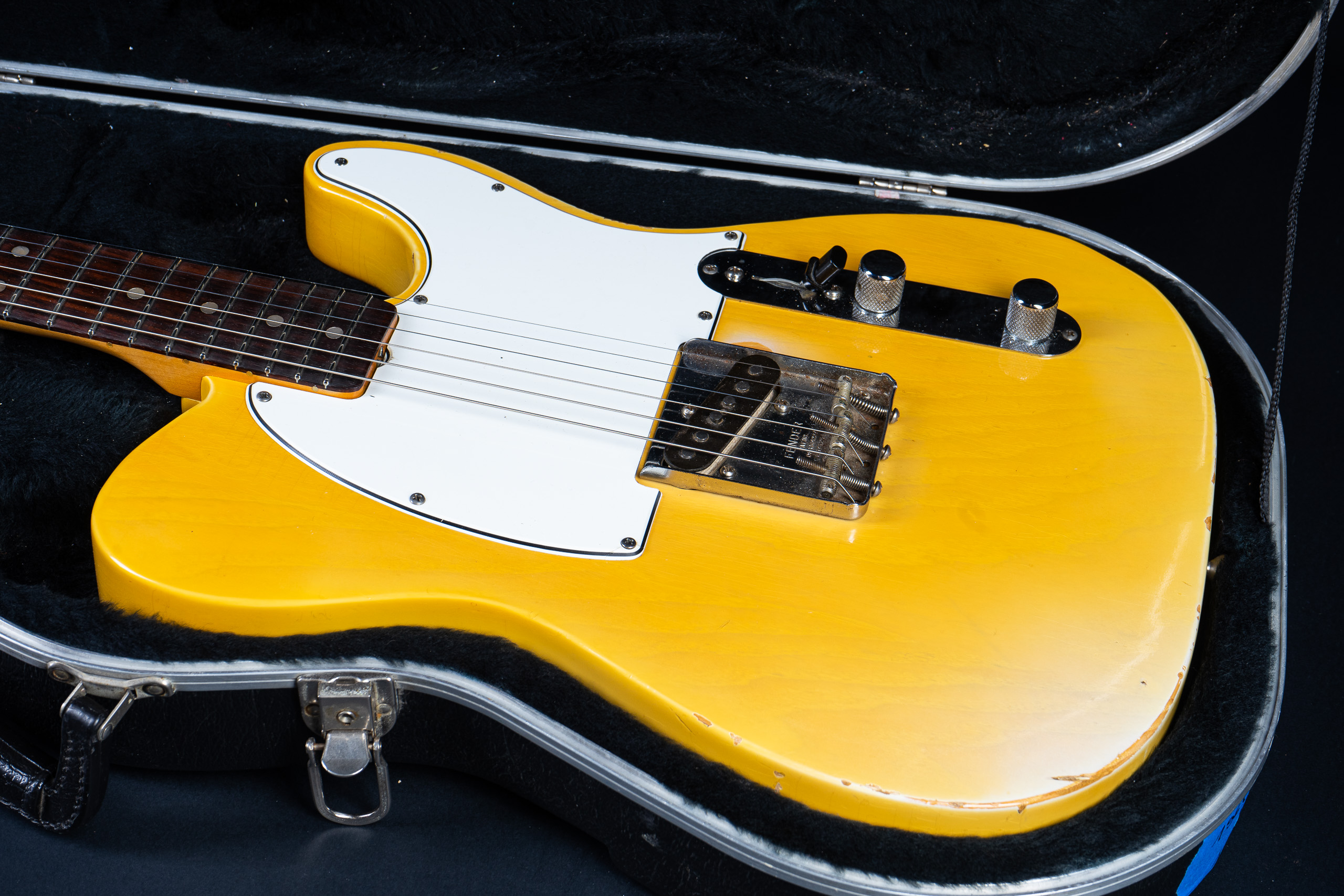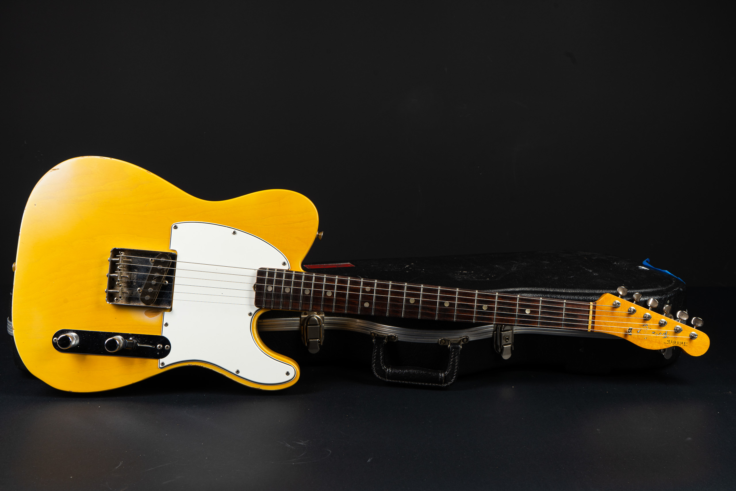 Super cool 1965/1966 Esquire in great condition. The guitar has a December 1965 neck and January 1966 pots and still that super nicely yellowed more see-through color than the later models. How many Esquires form this period have you seen? Very rare indeed. There is some routing in the neck-PU and electronic cavities, there very likely has been a slightly bigger pickup installed but none of this is visible without dissembling the guitar. Great sounding and actually very beautiful instrument! Comes incl. newer hardcase.