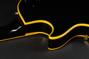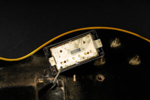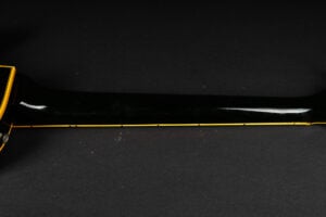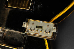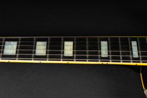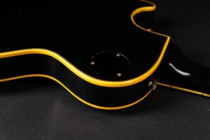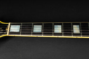 Wonderful example of a 1969 Gibson Les Paul Custom Black Beauty. It is the three-piece neck one-piece body version. Beautiful finish, no oversprays or repairs. All original guitar – besides it once had different tuners (the original waffle back tuners are back on), the jack plate is metal which is a good thing and the pickup covers had been off – thats it. The pickup rings are still M69s. The stoptail is a short seam lightweight aluminum. Nice full neck profile! The frets have almost zero life left so we are going to refret the guitar with Jescar 51100 wire. Comes incl. original case with purple plush!
