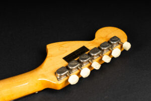1970 Fender Mustang in Competition Burgundy with matching headstock! The Kurt Cobain Smells like Teen Spirit guitar… Super cool, second year. Nicely faded Burgundy finish with competition stripes, pickups and pots are dated 1970. Plays great with low action and comes incl. original case. Tremolo arm is missing – like on 99% of all Mustangs.