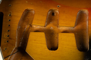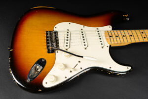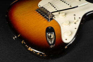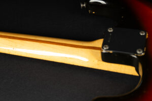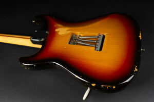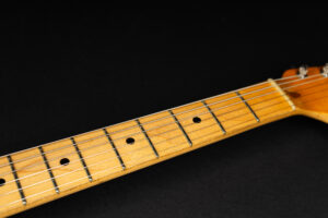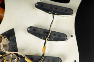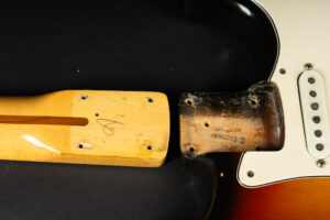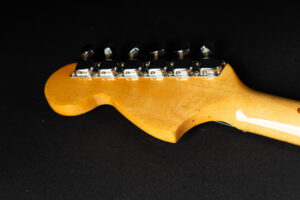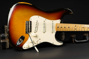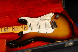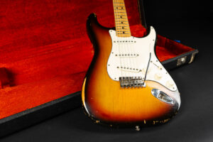 1971 Fender Stratocaster – one of the last 4-bolt Strats before Fender introduced the 3-bolt necks. Basically identical to a 1969 or 1970 model – especially with the maple neck a true Hendrix vibe! The guitar has some mods – there are two holes in the middle pickup cavity from some former owners experiment, three new pots and repro-saddles on the original steel block tremolo. Nice weight and comfortable neck. All three original pickups are dated 1971, the neck is dated August 1971. Amazing player and the ultimate chance to get a 60s spec Strat for under 10K. Comes incl. original case.