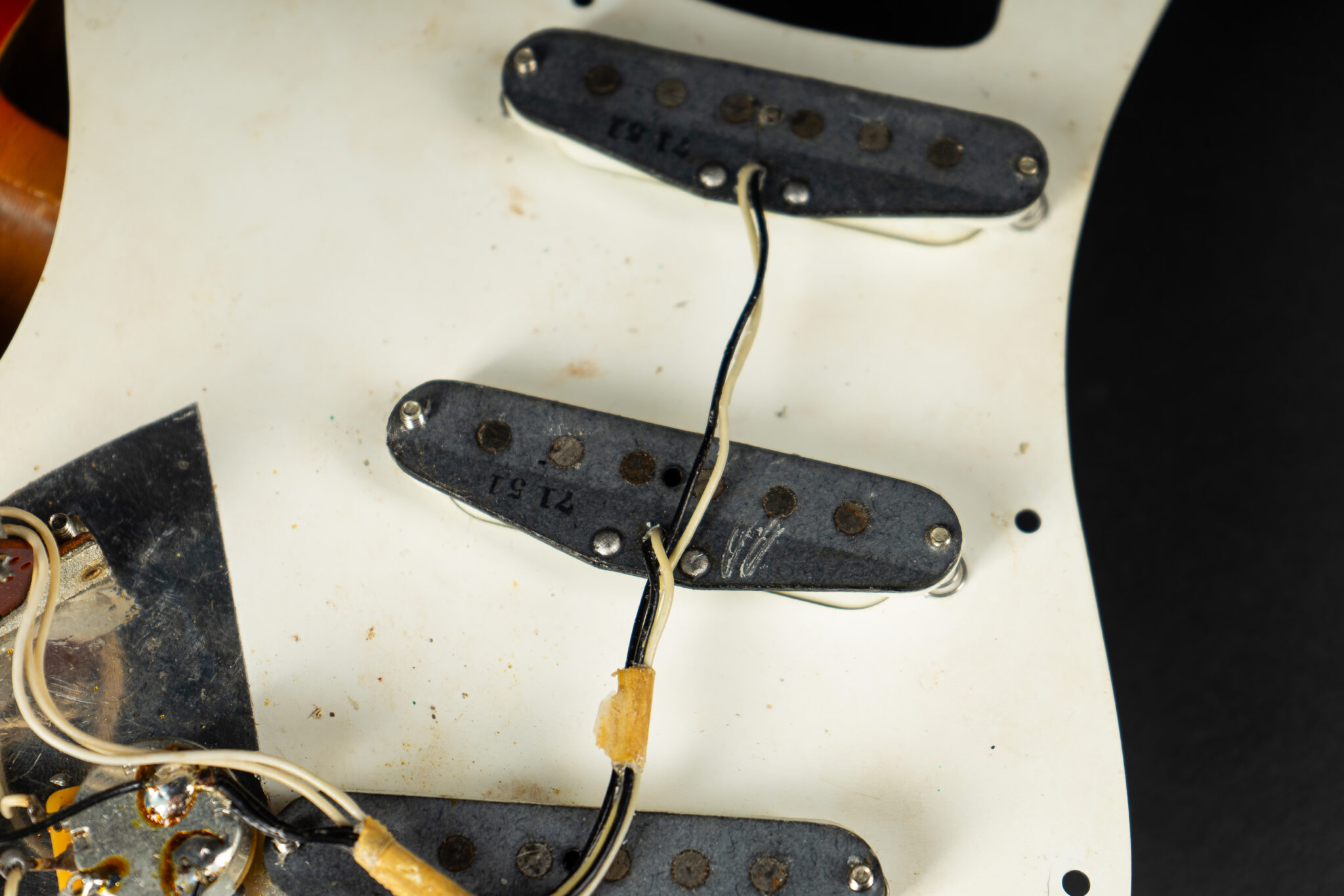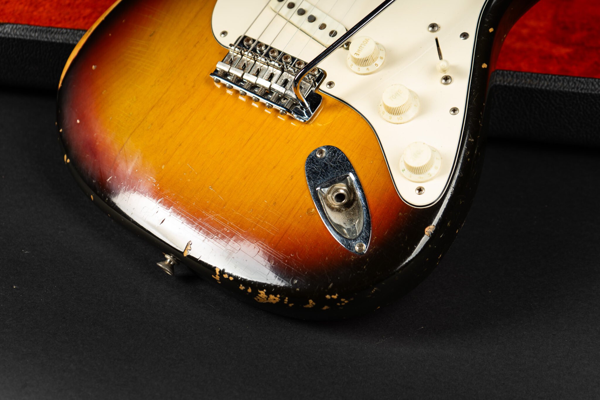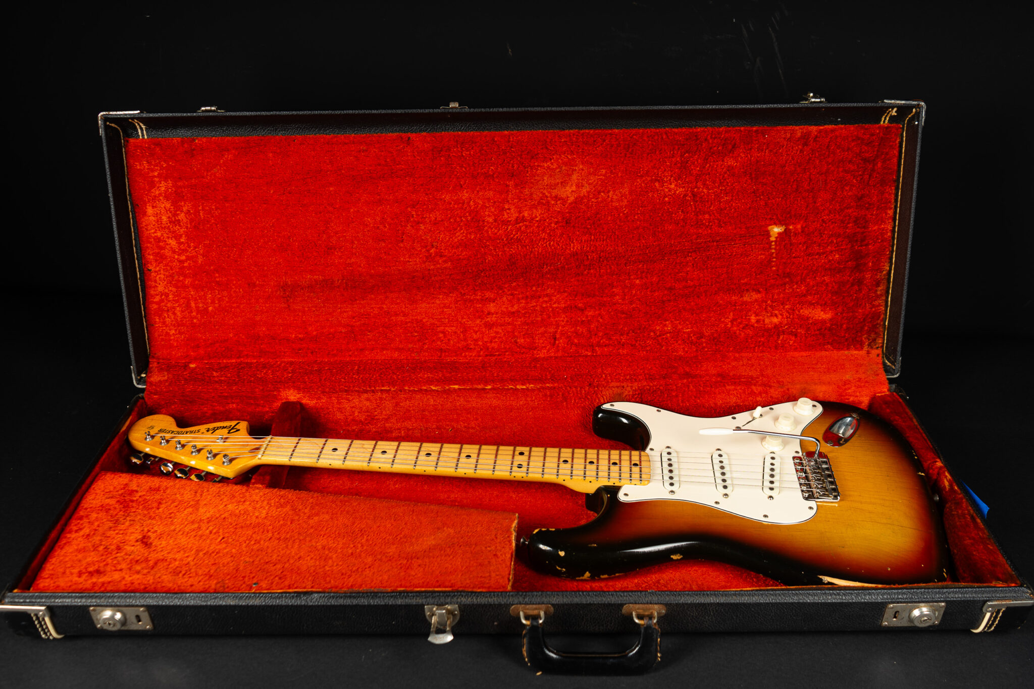 1971 Fender Stratocaster – one of the last 4-bolt Strats before Fender introduced the 3-bolt necks. Basically identical to a 1969 or 1970 model – especially with the maple neck a true Hendrix vibe! The guitar has some mods – there are two holes in the middle pickup cavity from some former owners experiment, three new pots and repro-saddles on the original steel block tremolo. Nice weight and comfortable neck. All three original pickups are dated 1971, the neck is dated August 1971. Amazing player and the ultimate chance to get a 60s spec Strat for under 10K. Comes incl. original case.