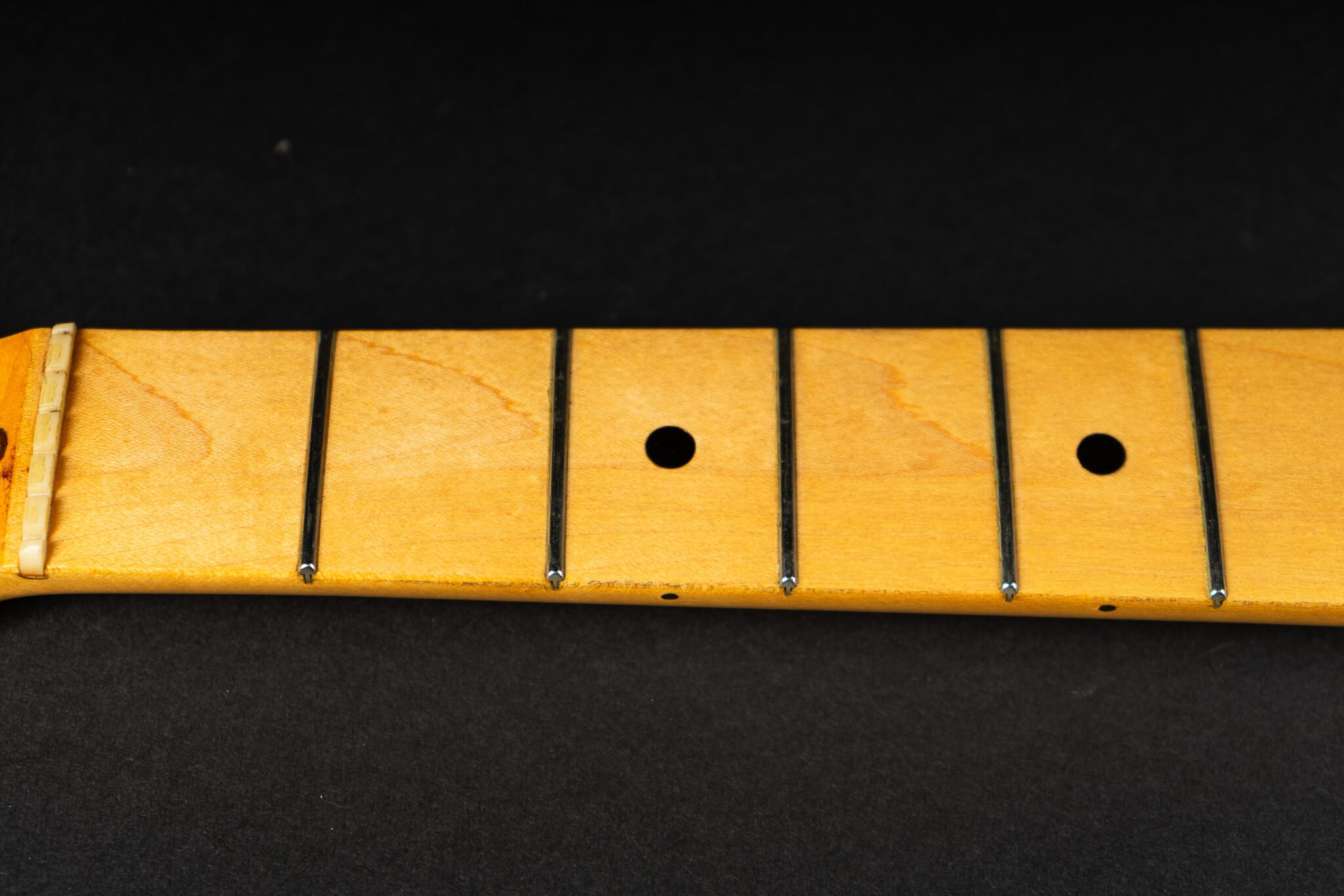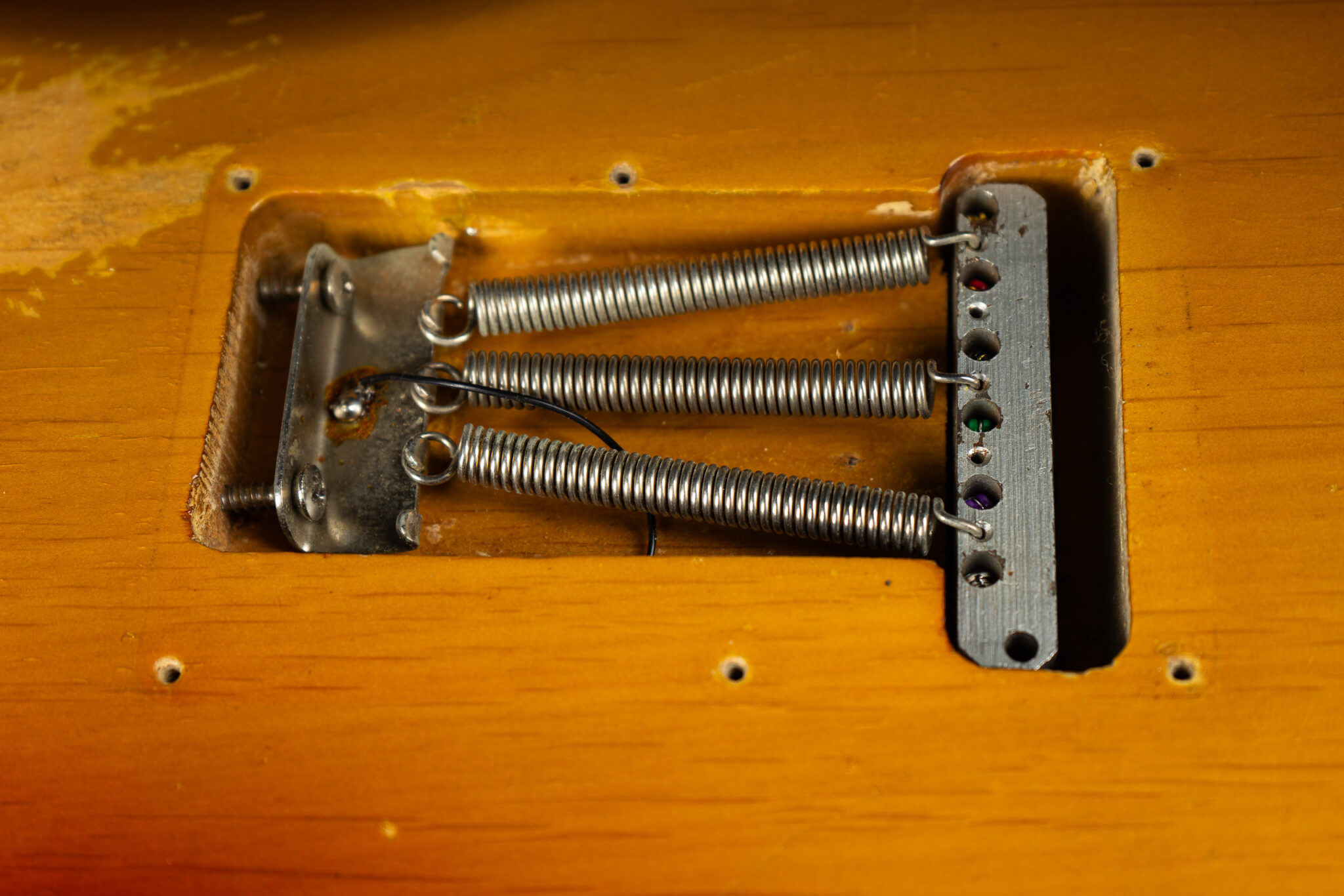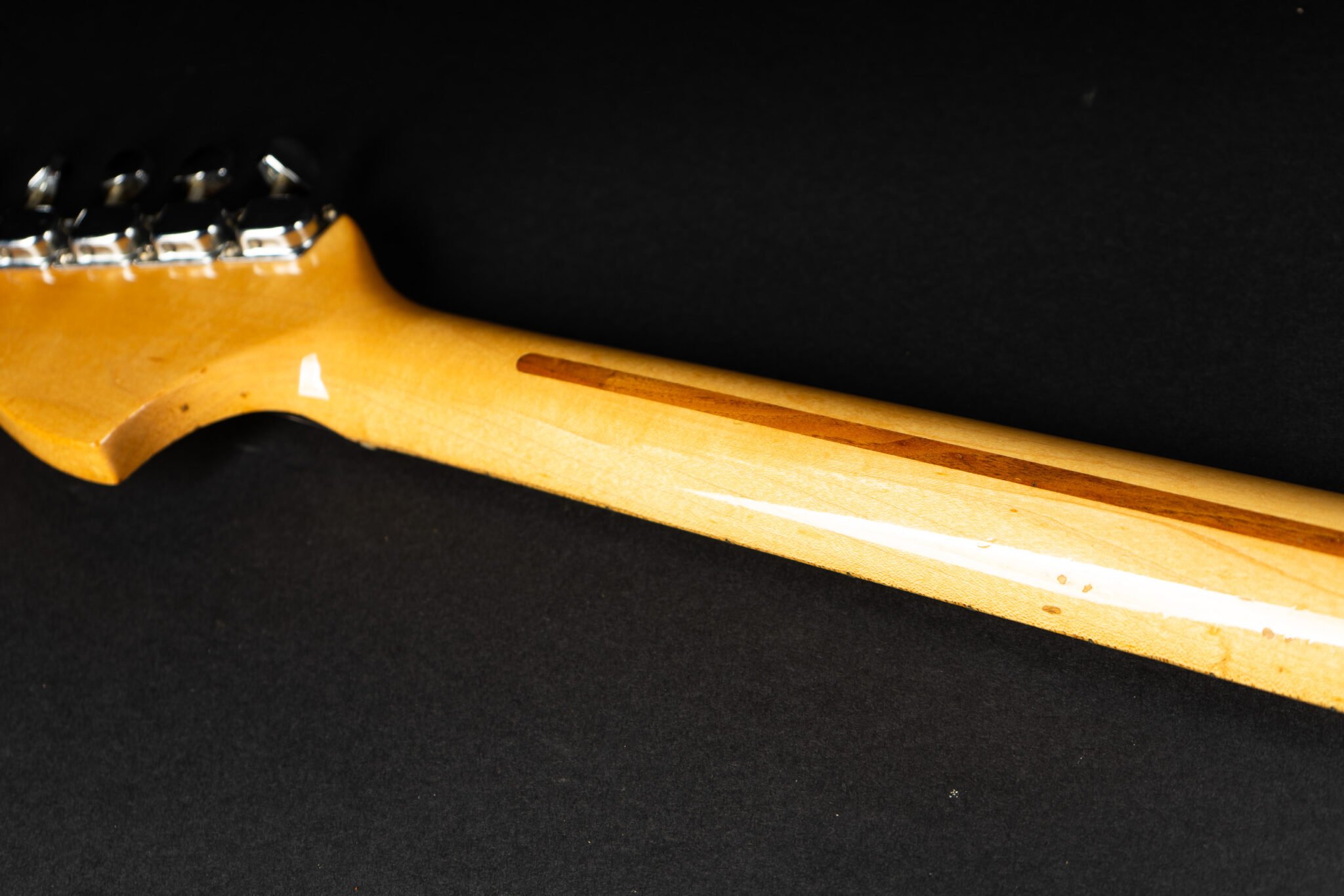1971 Fender Stratocaster – one of the last 4-bolt Strats before Fender introduced the 3-bolt necks. Basically identical to a 1969 or 1970 model – especially with the maple neck a true Hendrix vibe! The guitar has some mods – there are two holes in the middle pickup cavity from some former owners experiment, three new pots and repro-saddles on the original steel block tremolo. Nice weight and comfortable neck. All three original pickups are dated 1971, the neck is dated August 1971. Amazing player and the ultimate chance to get a 60s spec Strat for under 10K. Comes incl. original case.