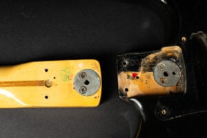 Clean 1972 Fender Hardtail Stratocaster in custom color Black. All original guitar! Three grey bottom single coil pickups dated 1972, all pots are dated to the 10th week of 1972. Nothing beats a vintage black finish – and this one has that iconic „Blackie“ look. Being a Hardtail with the strings going directly through the body it has that extra portion of twang and tone. A perfect alternative to the tremolo model, especially if you don‘t use it anyway. Also, the Hardtails tend to sound a lot beefier. Comes including it‘s original case.