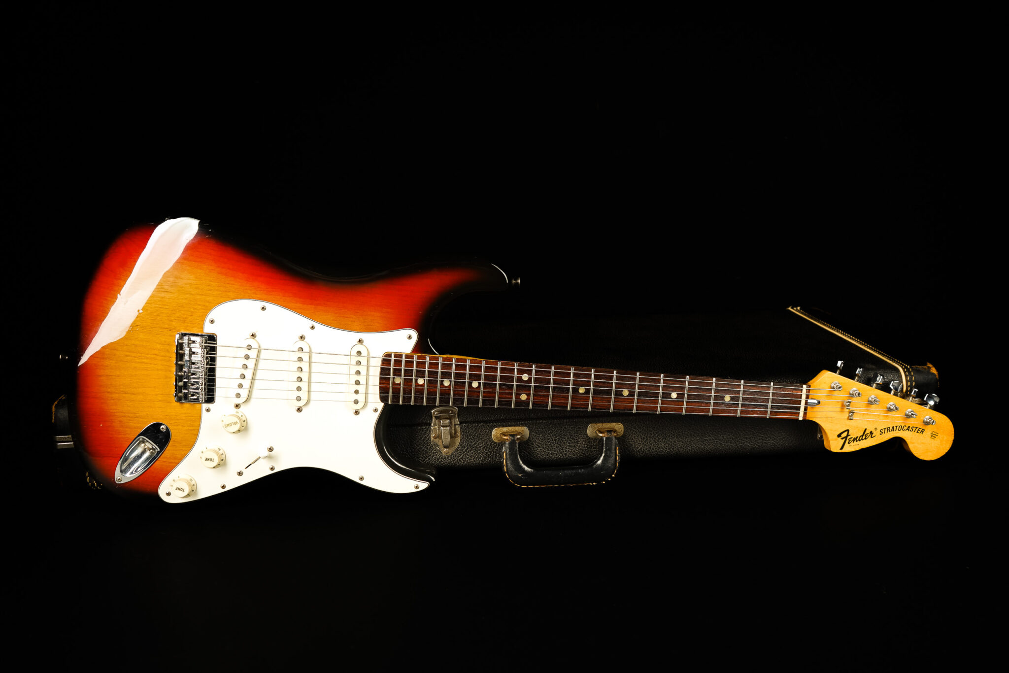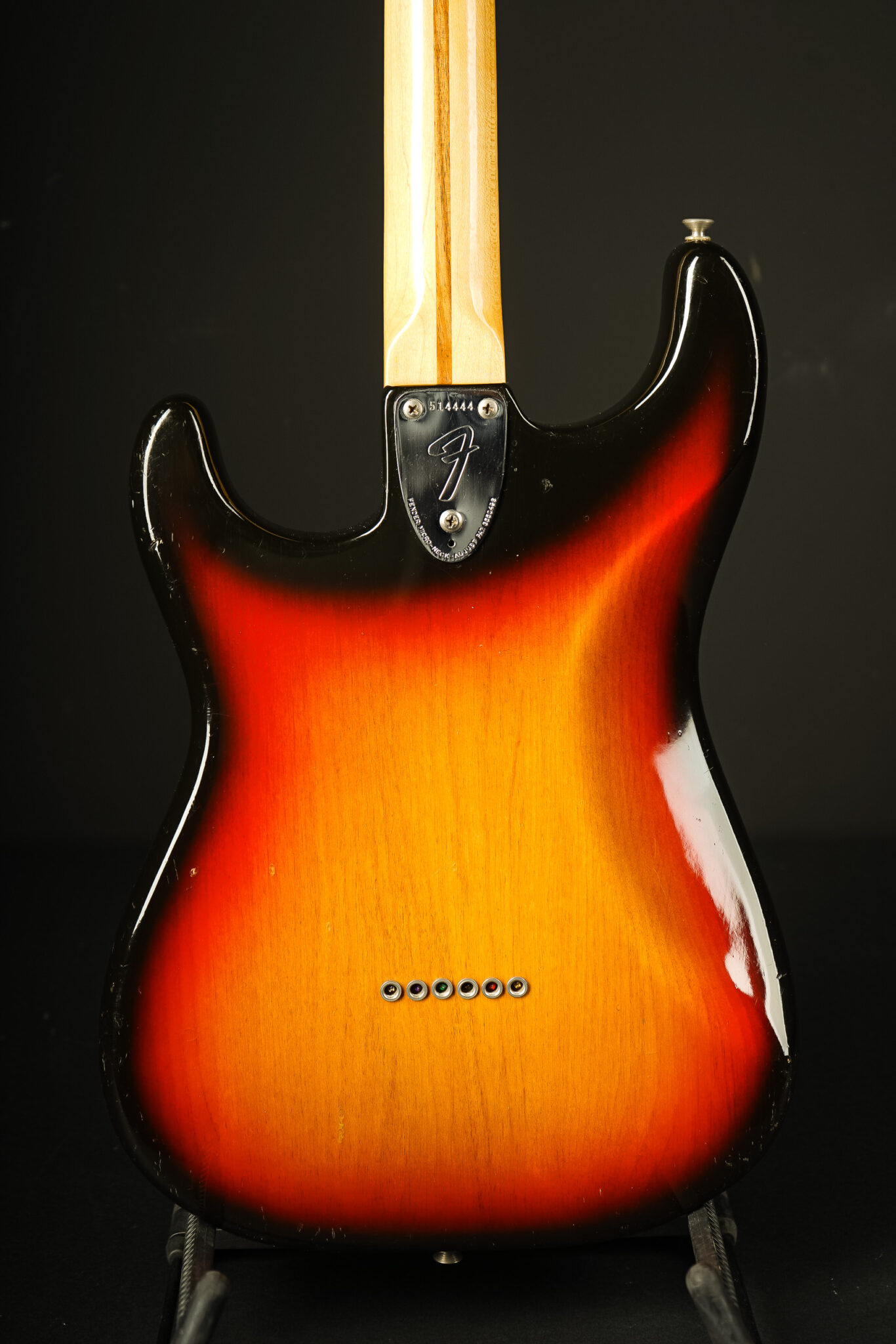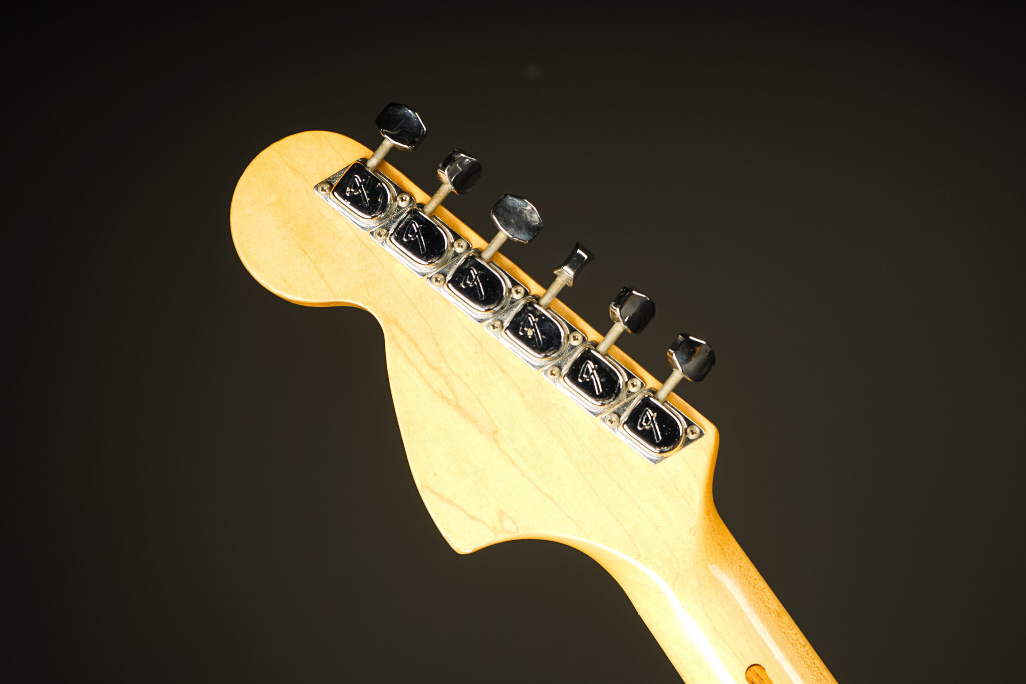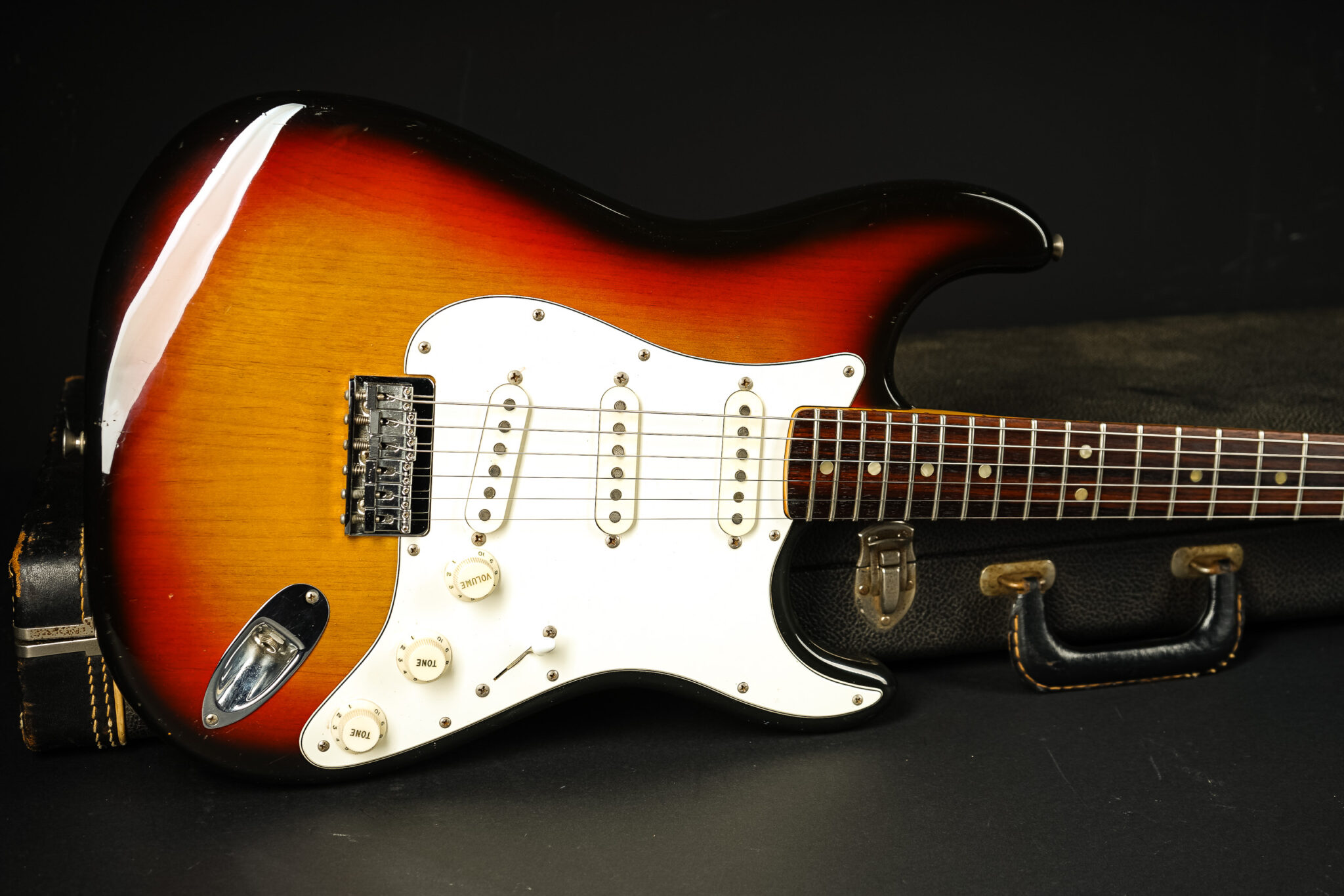 Super clean 1973 Fender Hardtail Strat in all original condition – besides an added 5 way switch. Three black bottom pickups. Sounds surprisingly full for a 70s Strat — especially the bridge pickup, which isn’t harsh but rather warm and punchy. Overall, it delivers beautiful, classic Strat tones, and thanks to the excellent neck, it plays exceptionally comfortably. Comes incl. original case.