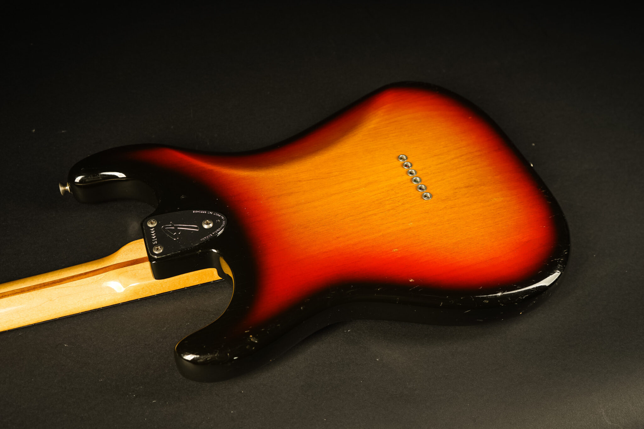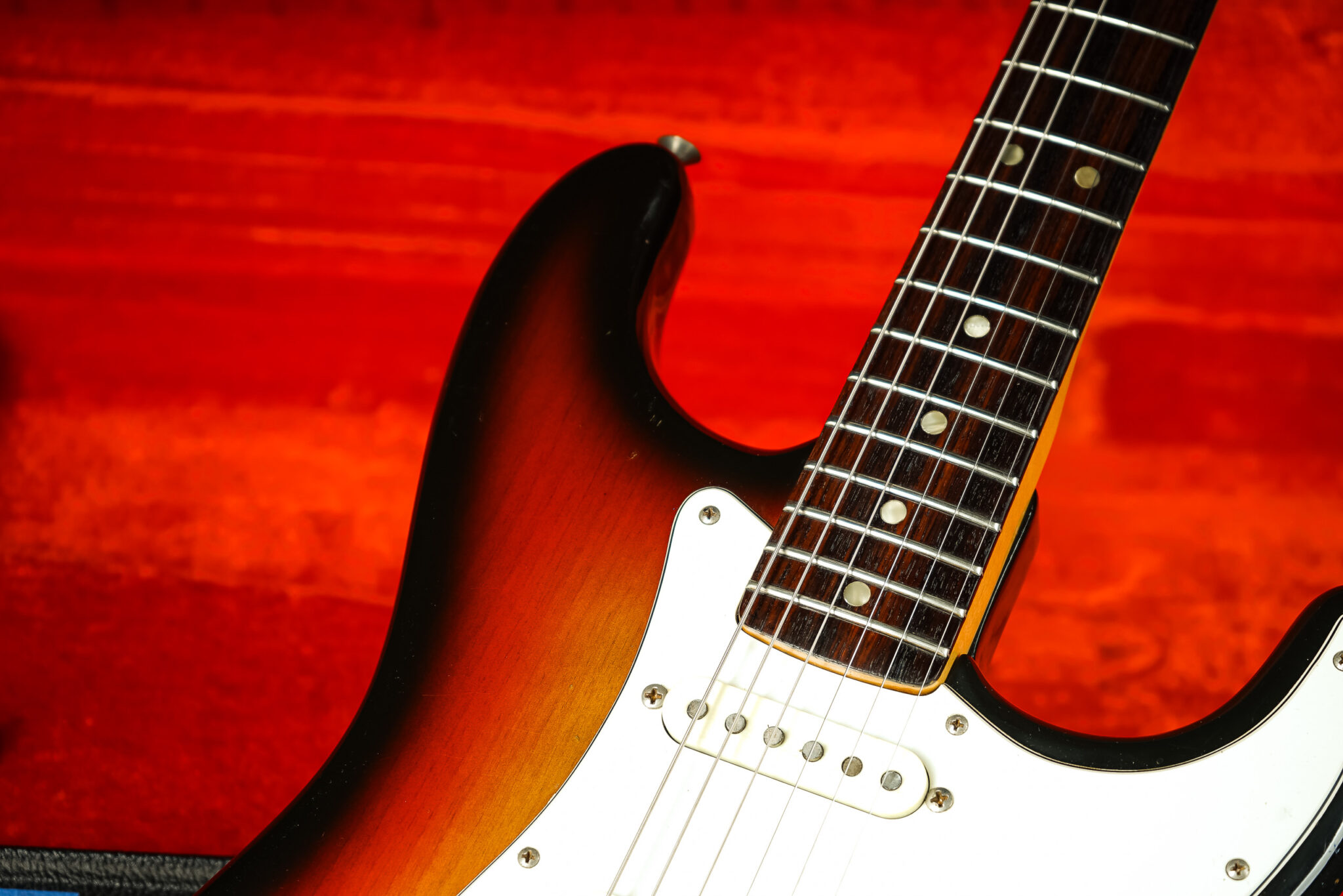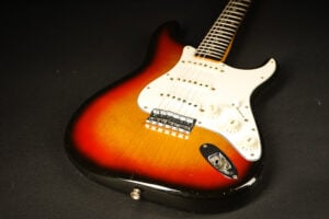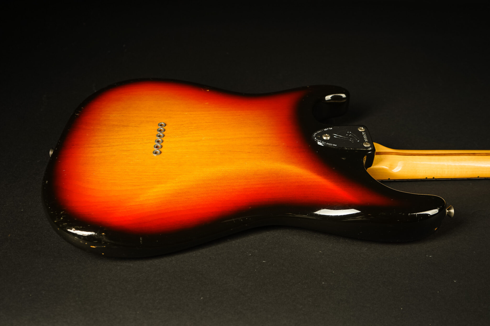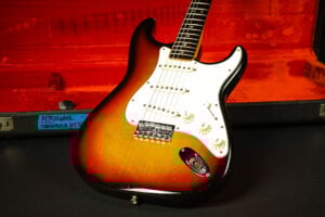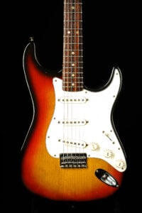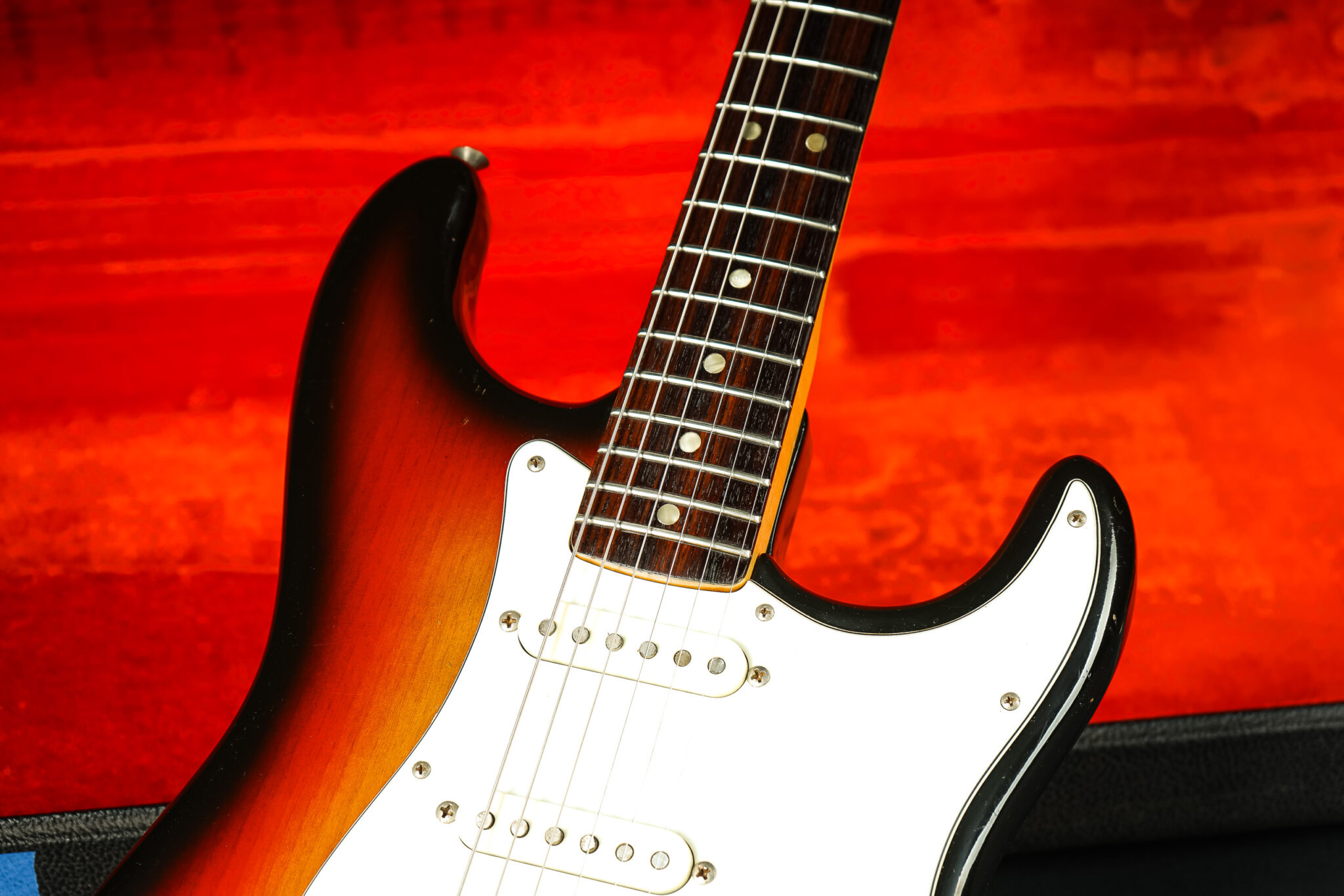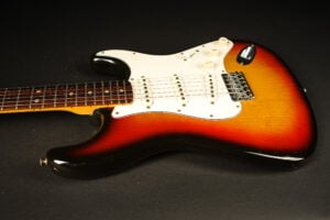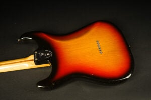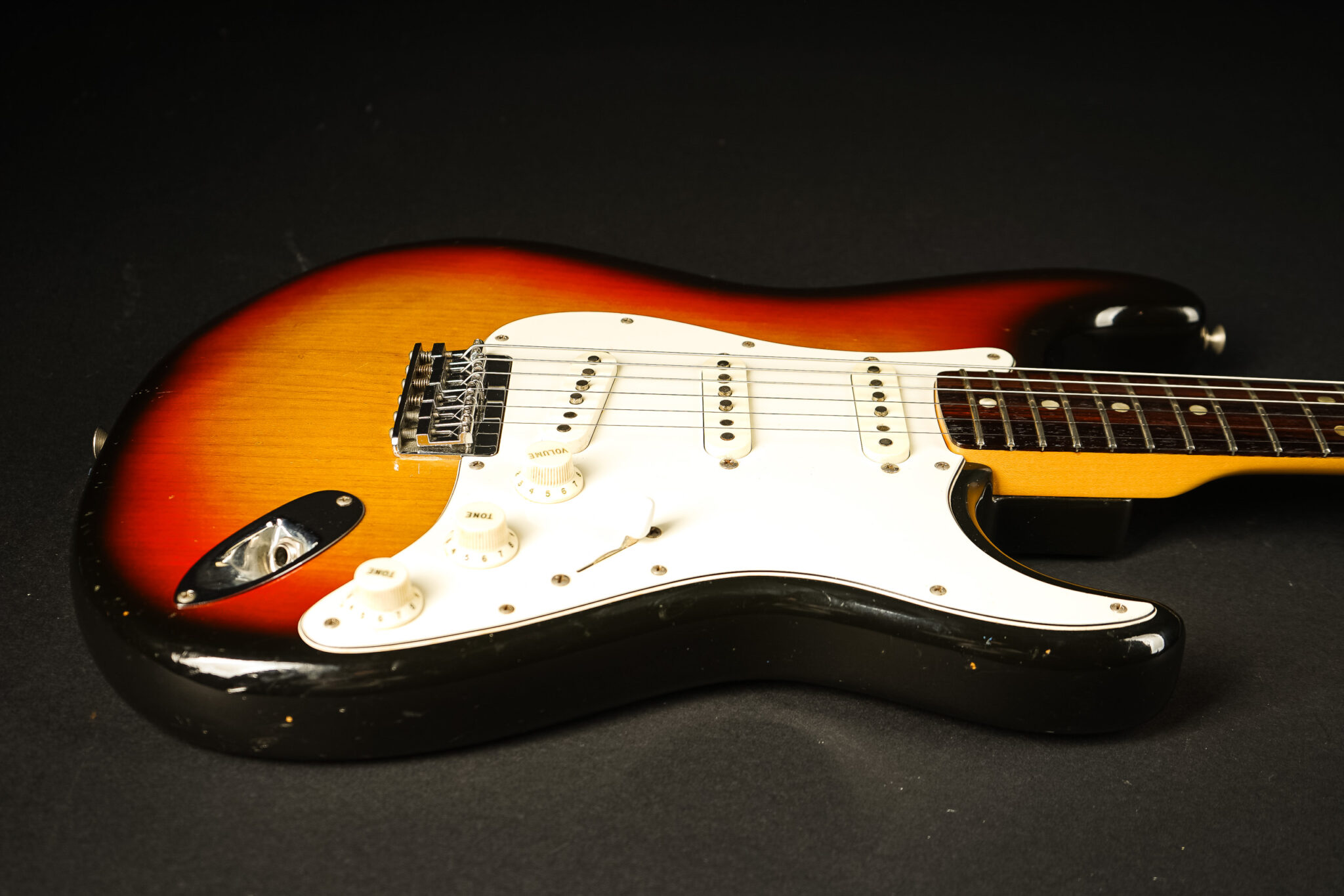 Super clean 1973 Fender Hardtail Strat in all original condition – besides an added 5 way switch. Three black bottom pickups. Sounds surprisingly full for a 70s Strat — especially the bridge pickup, which isn’t harsh but rather warm and punchy. Overall, it delivers beautiful, classic Strat tones, and thanks to the excellent neck, it plays exceptionally comfortably. Comes incl. original case.