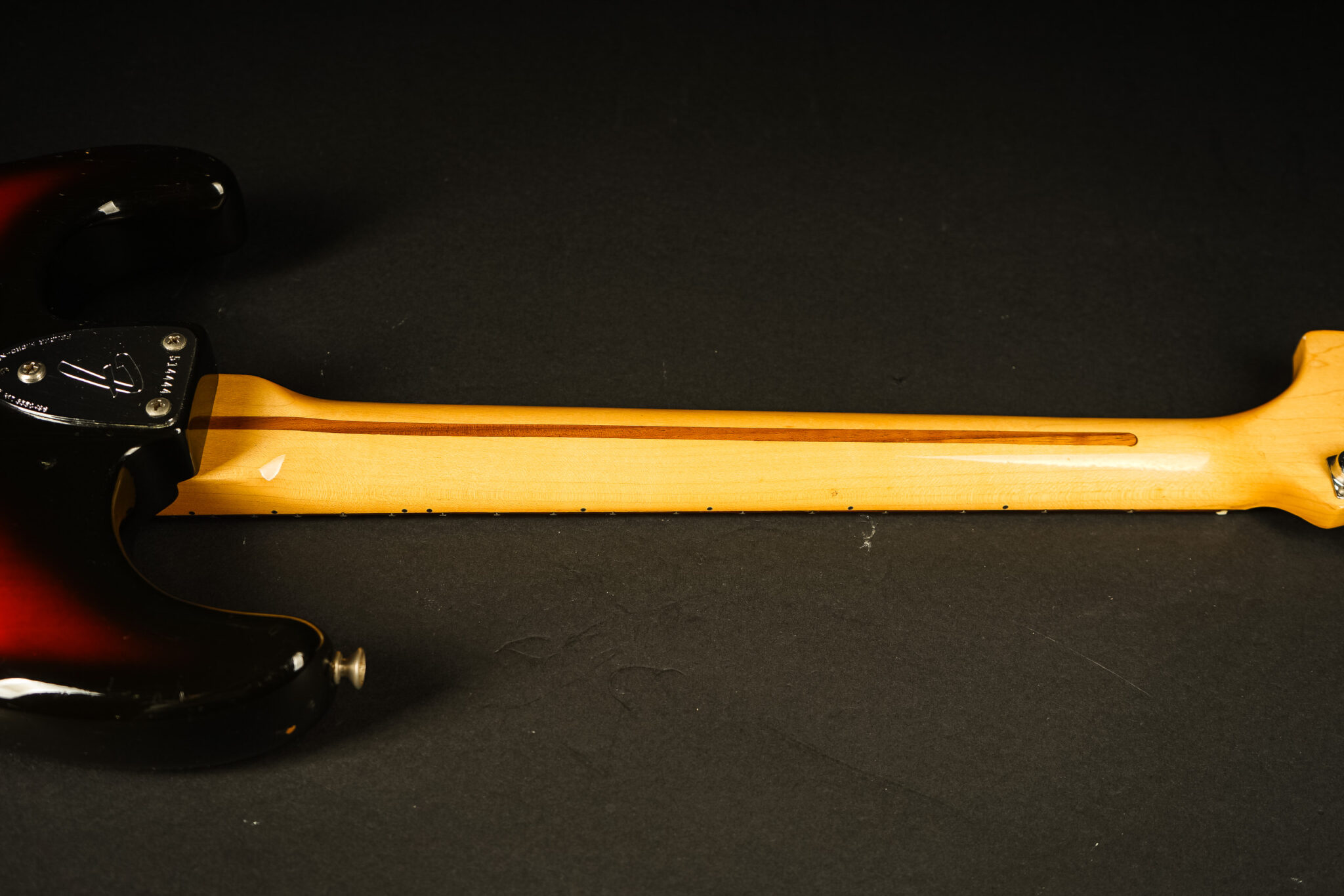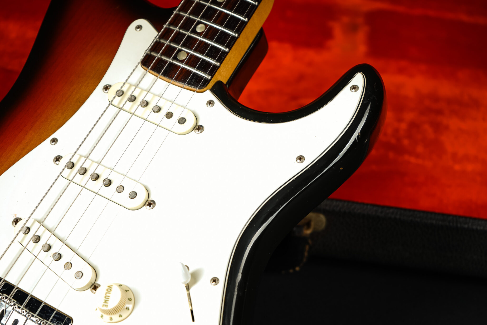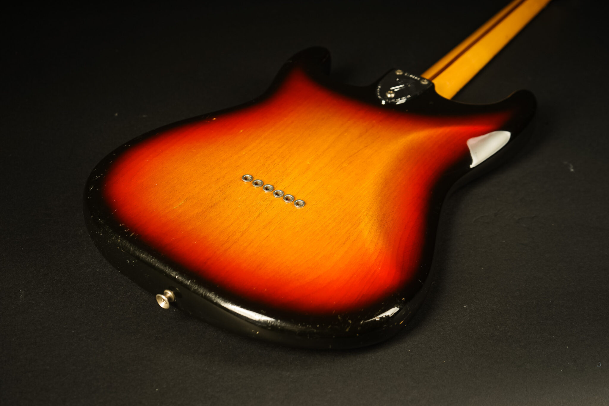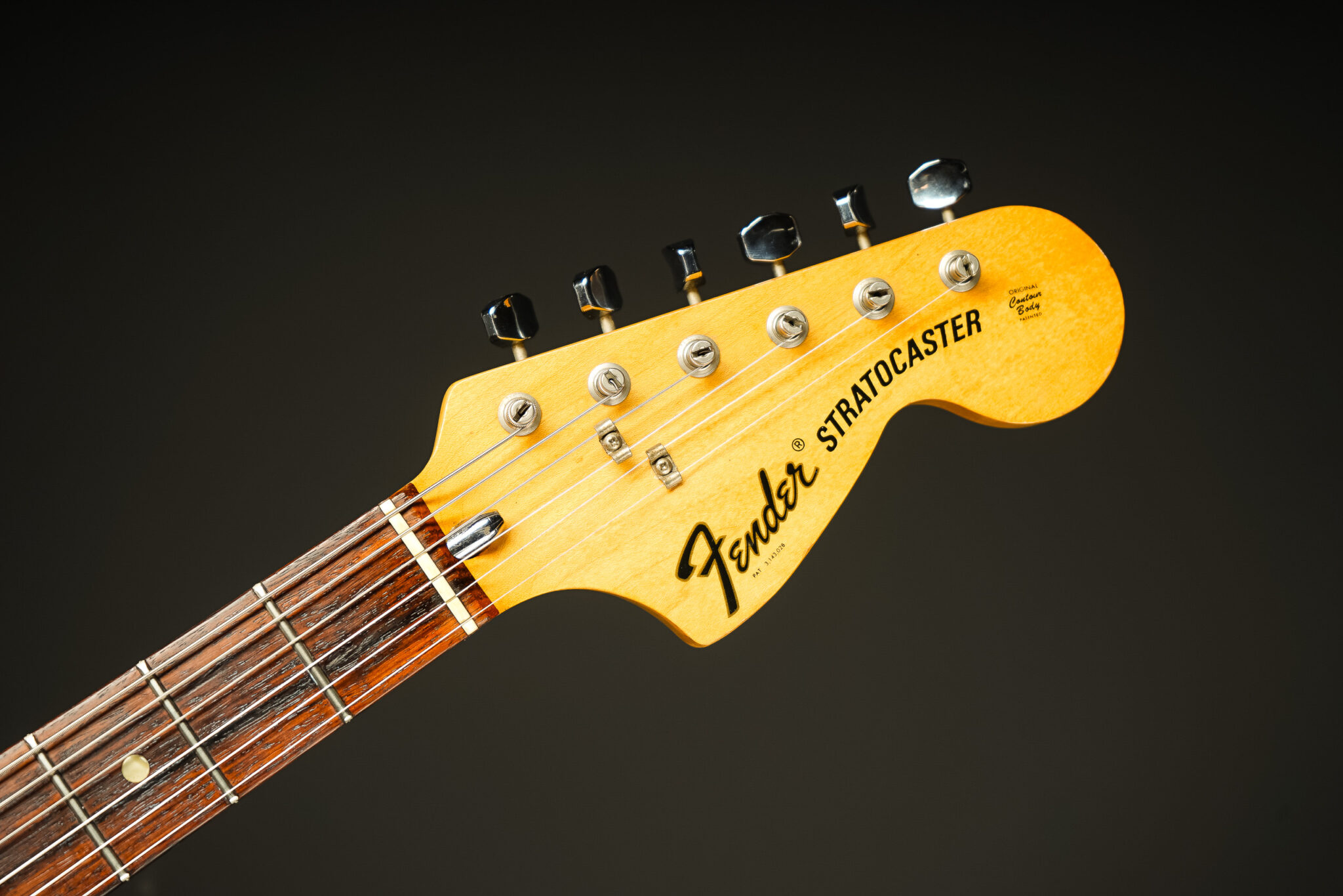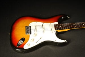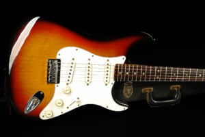 Super clean 1973 Fender Hardtail Strat in all original condition – besides an added 5 way switch. Three black bottom pickups. Sounds surprisingly full for a 70s Strat — especially the bridge pickup, which isn’t harsh but rather warm and punchy. Overall, it delivers beautiful, classic Strat tones, and thanks to the excellent neck, it plays exceptionally comfortably. Comes incl. original case.
