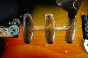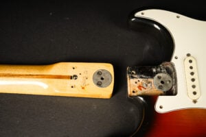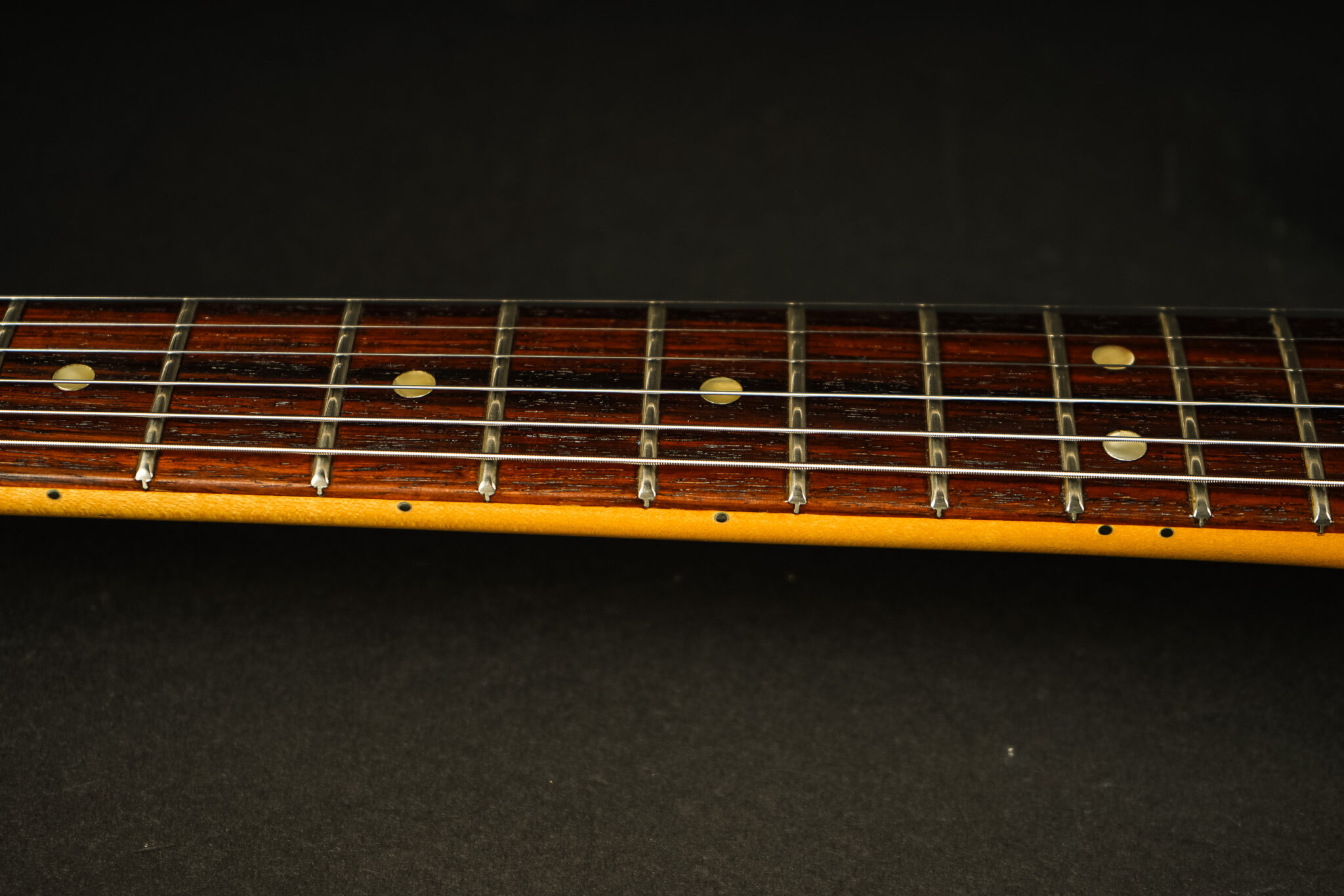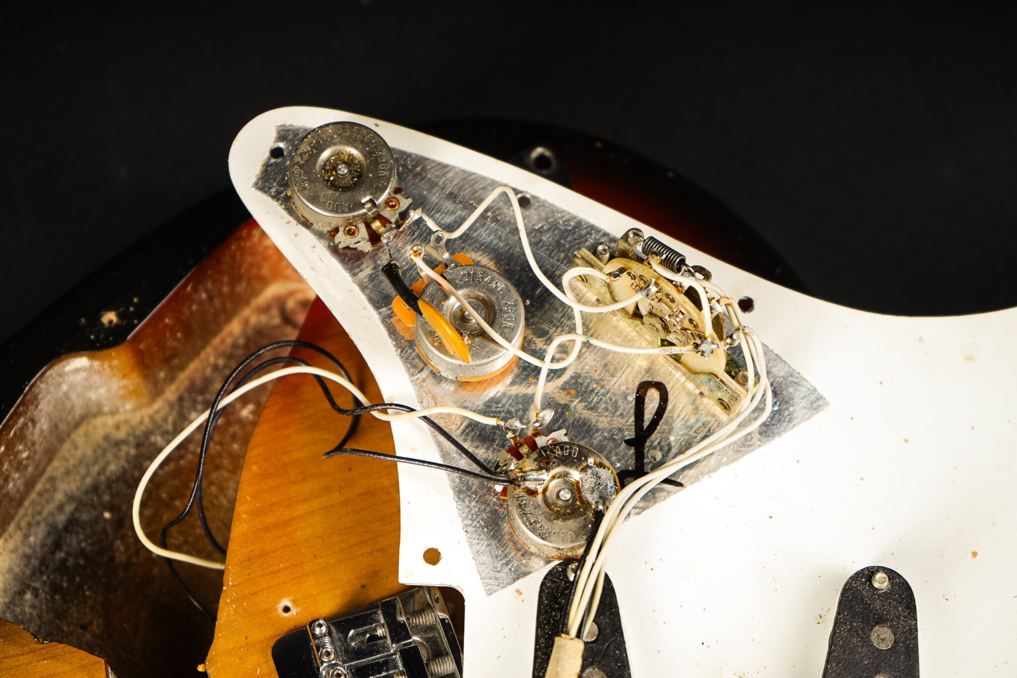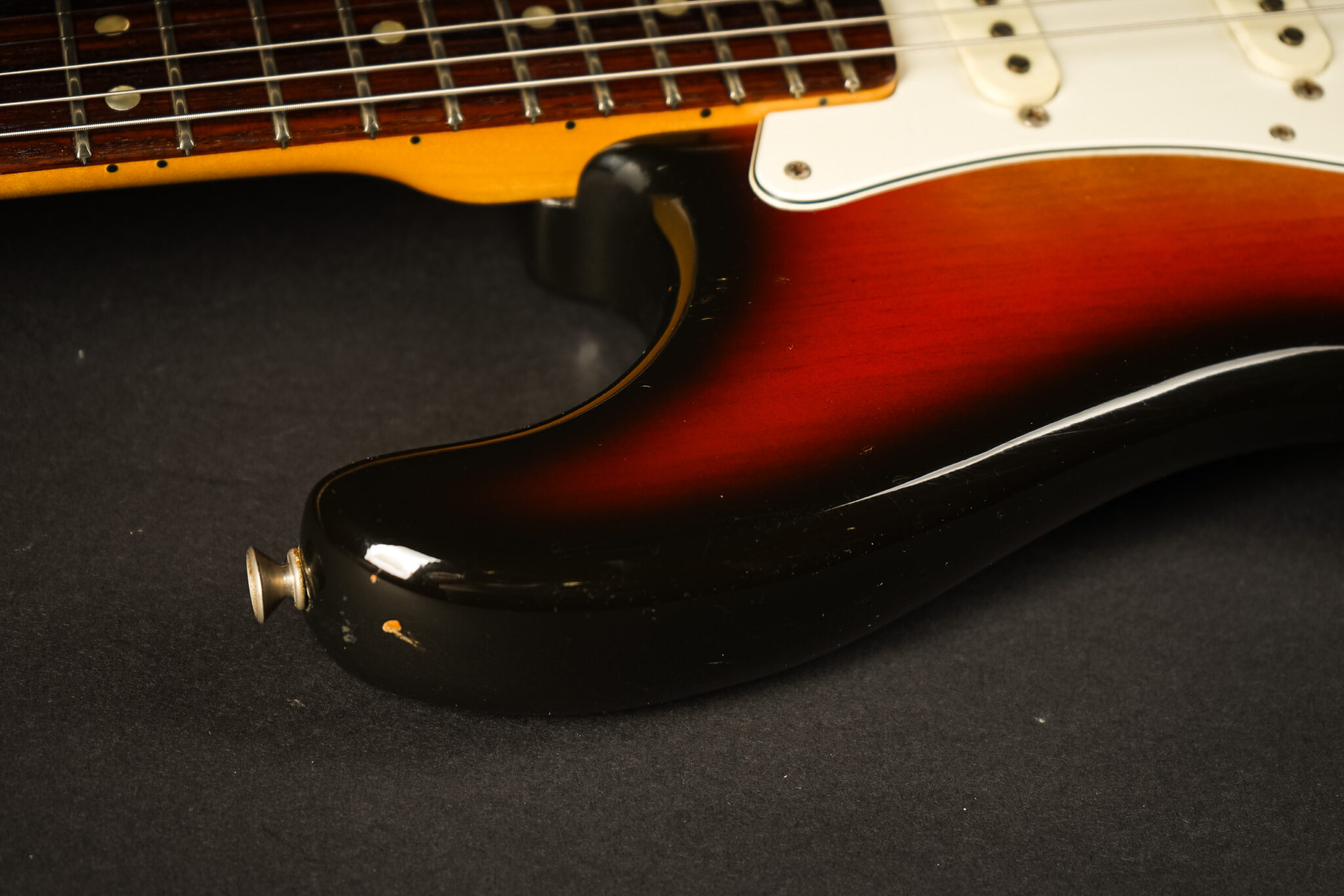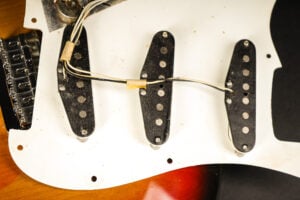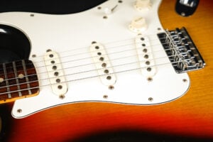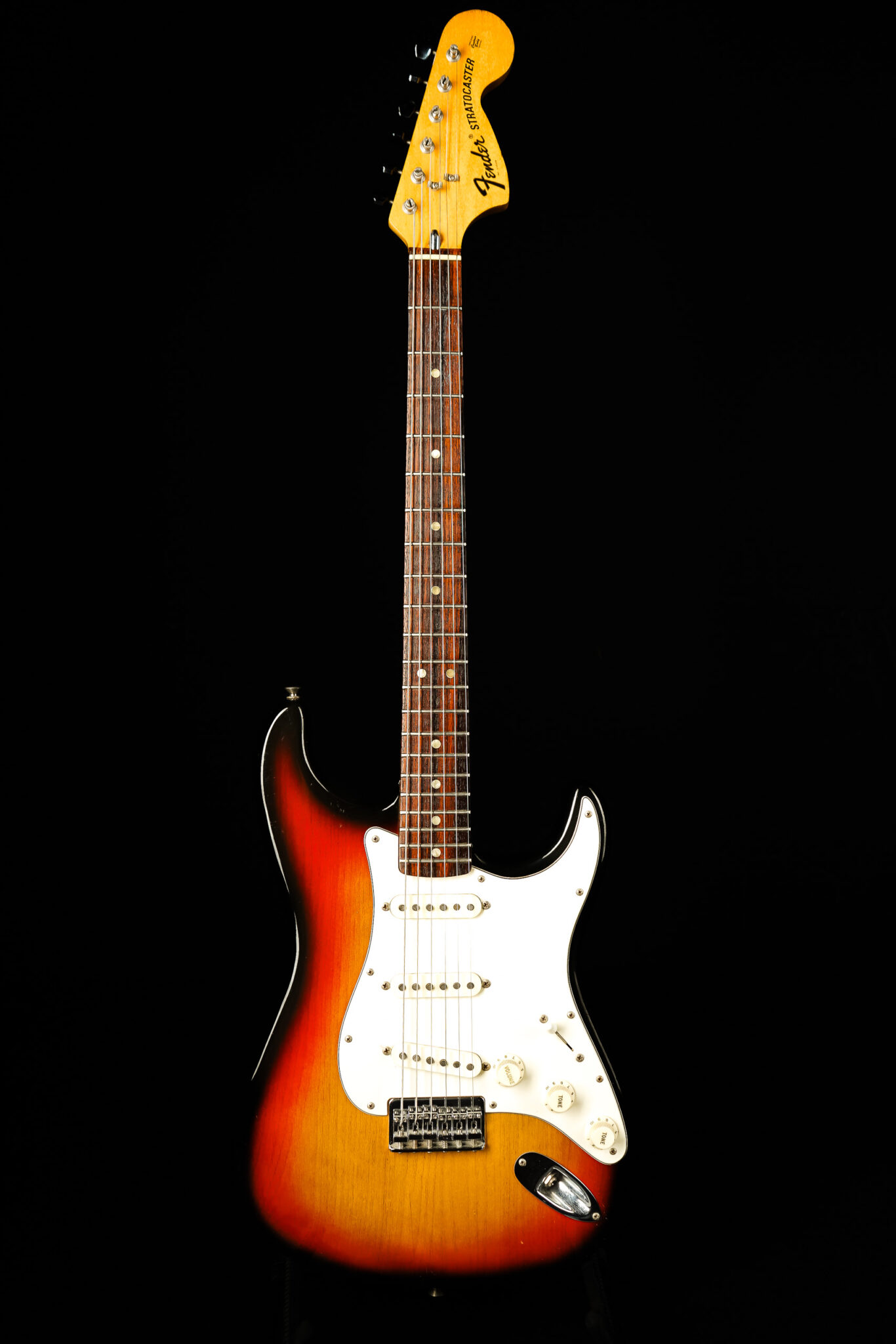Super clean 1973 Fender Hardtail Strat in all original condition – besides an added 5 way switch. Three black bottom pickups. Sounds surprisingly full for a 70s Strat — especially the bridge pickup, which isn’t harsh but rather warm and punchy. Overall, it delivers beautiful, classic Strat tones, and thanks to the excellent neck, it plays exceptionally comfortably. Comes incl. original case.