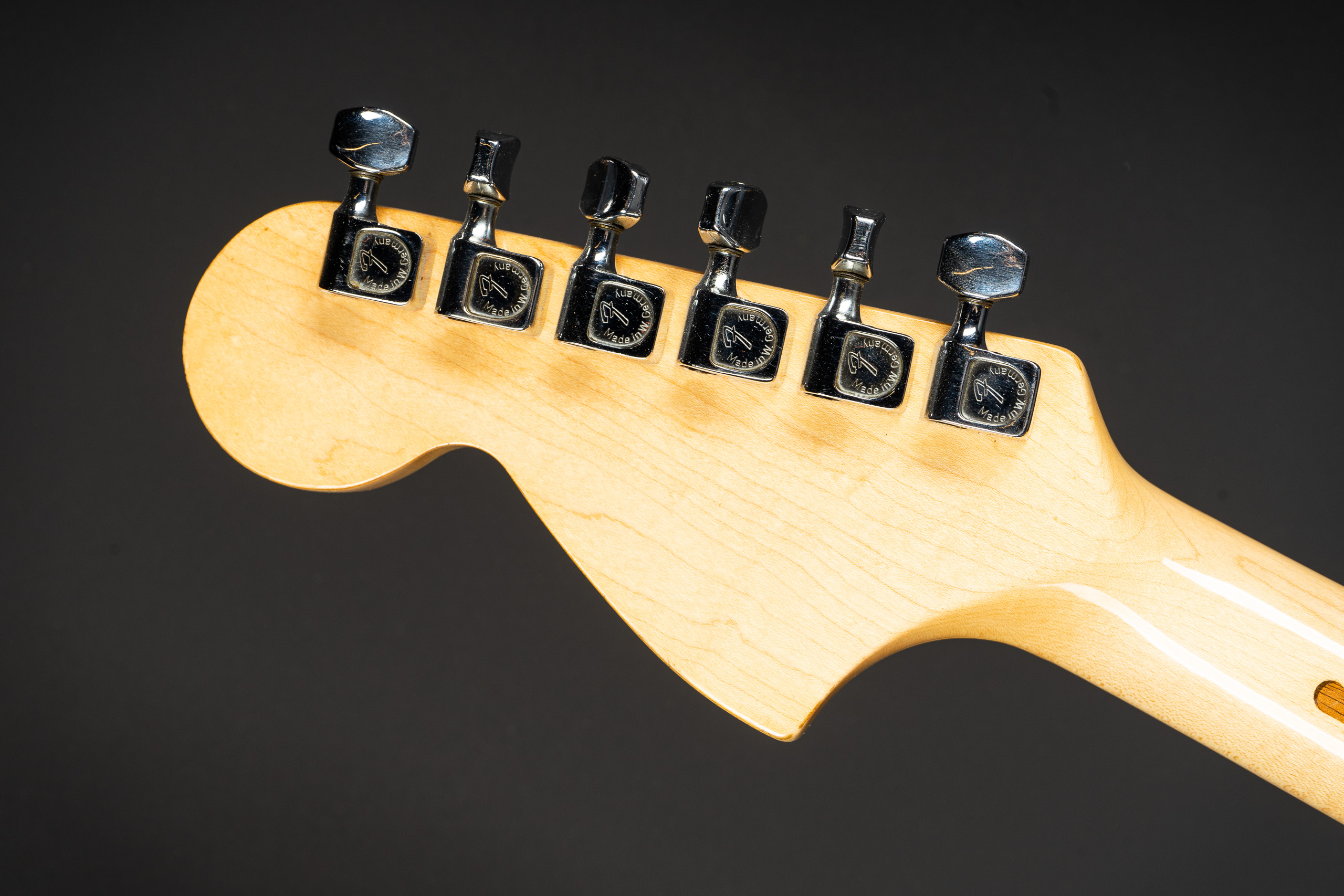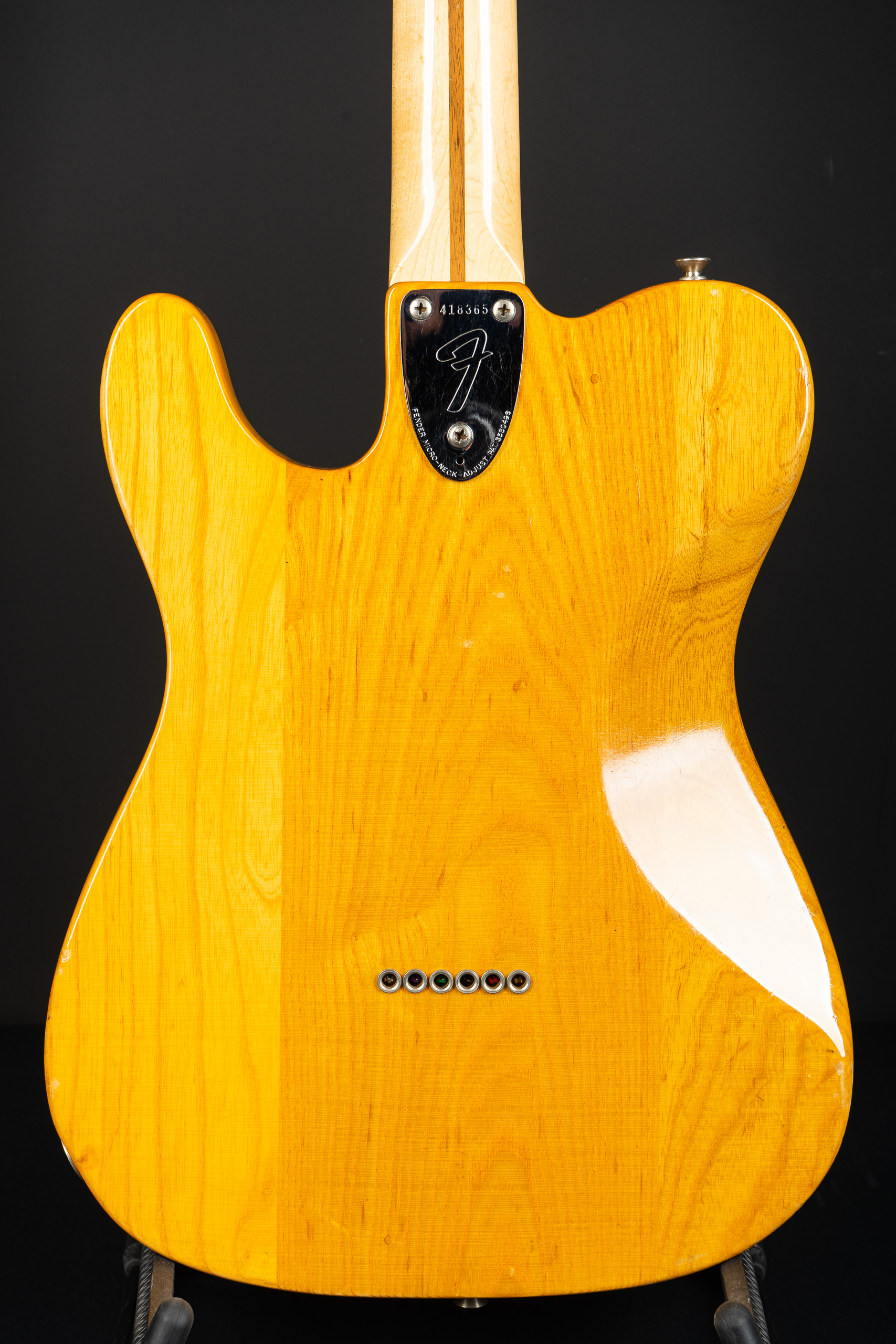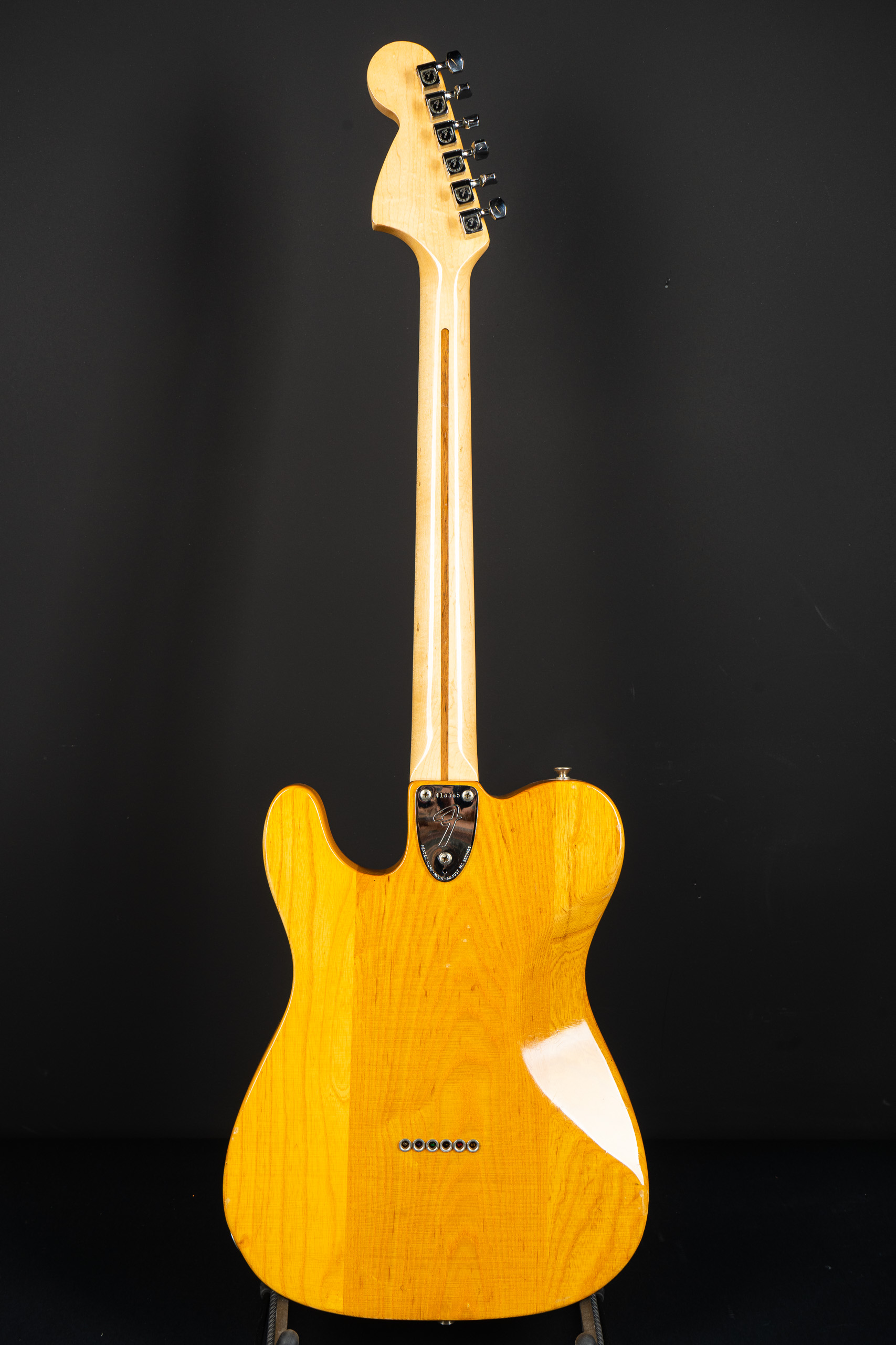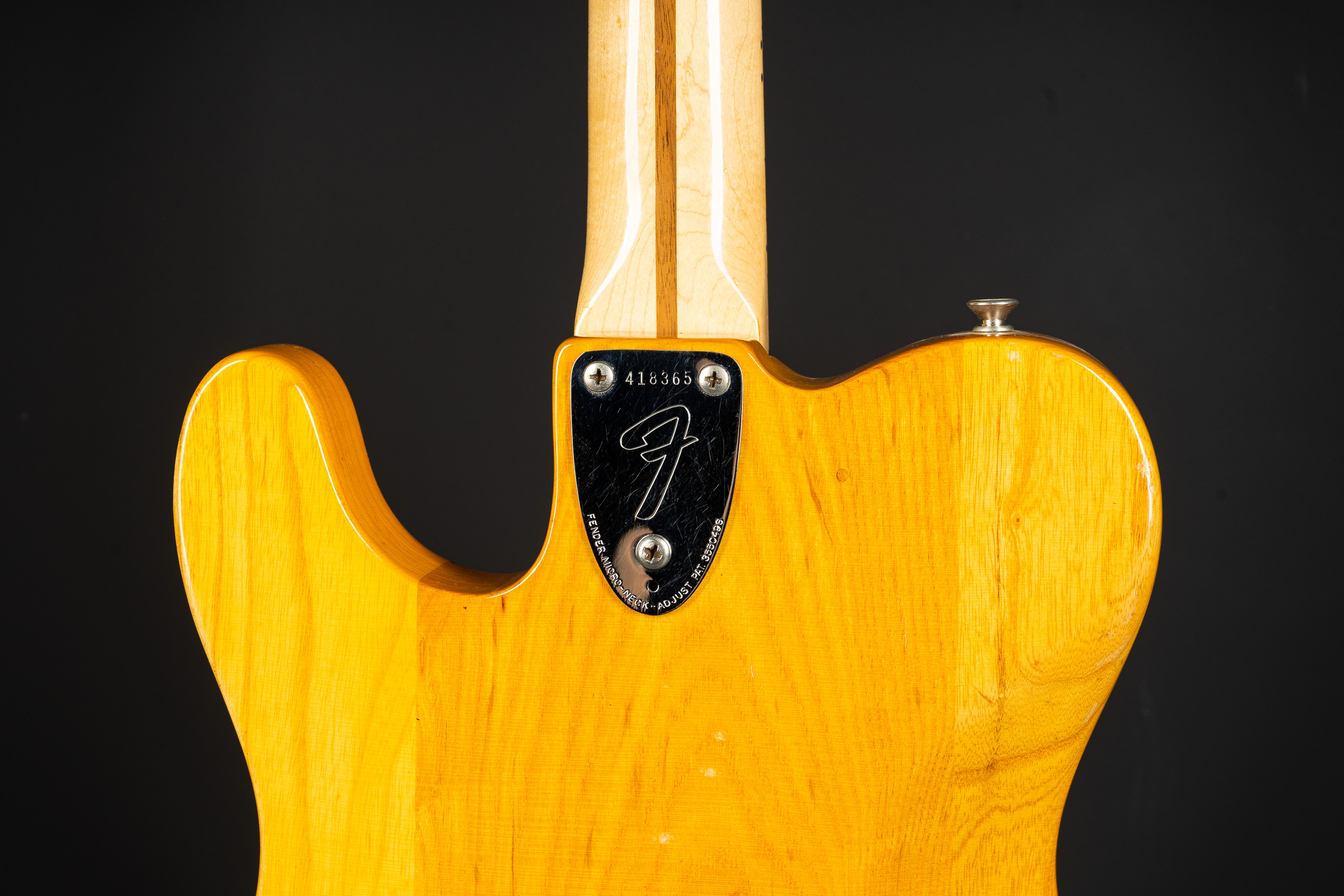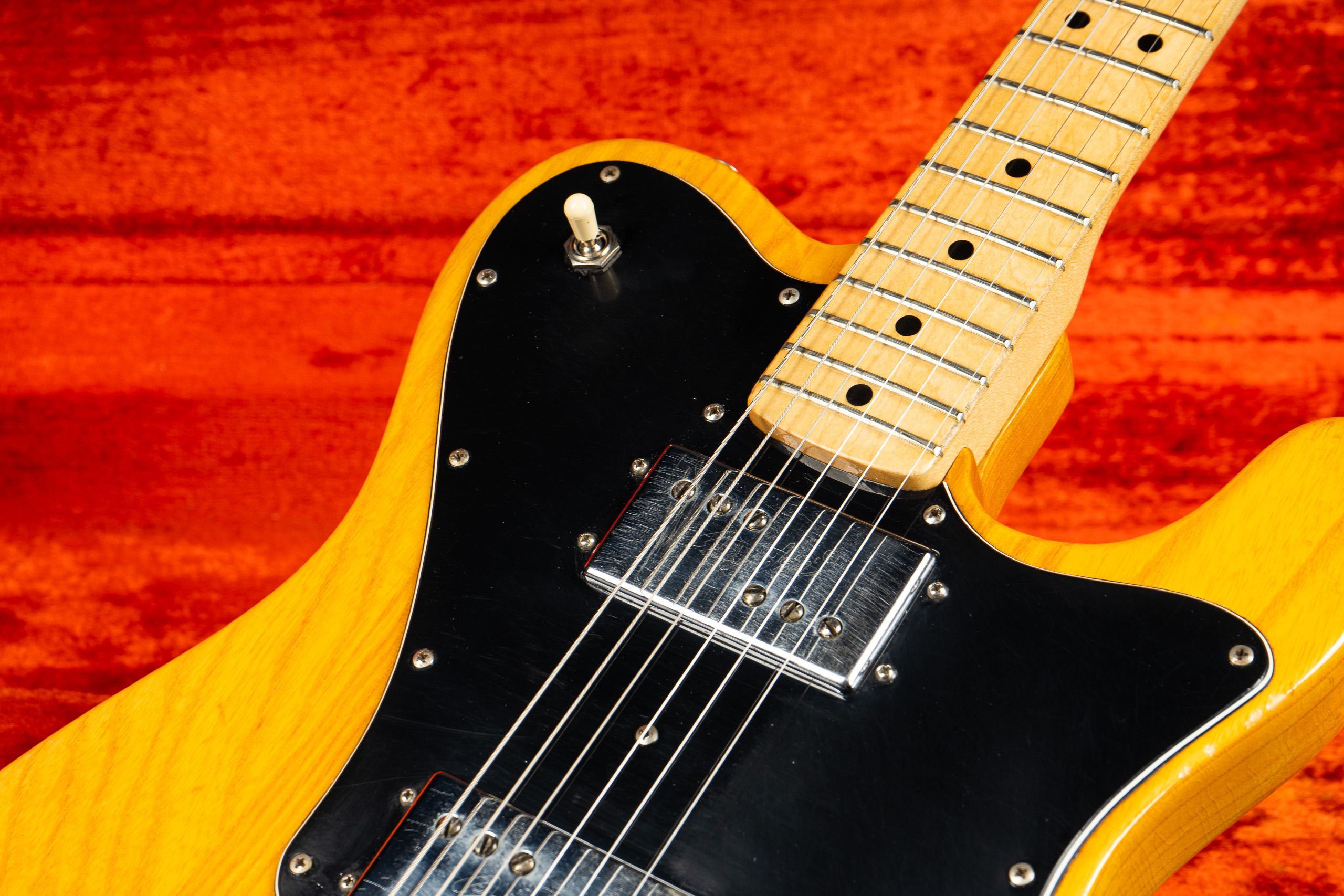 The 70s Deluxe Teles with the amazing sounding “Wide Range” humbuckers became more and more popular during the last years since they offer a great “between both worlds” sound variation and are wonderful versatile instruments! This guitar is all original and in excellent condition besides some minor remains in the clear lacquer from a former sticker on the top behind the bridge and some minor play-wear and tarnish of the chrome-plating. The two original Fender humbuckers have strong outputs of 10,72K(N) and 10,42K(B) and sound great! The medium-sized c-shape neck is very comfortable to play, the original frets are still in good condition. Comes in orig. black Fender tolex Case w/orange interior.