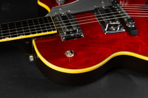 Really cool 1973 Gretsch Baldwin era Roc Jet in Cherry Red color. Great player! Second generation of the Roc Jet with two Super’Tron pickups. The guitar has a repaired head crack which was oversprayed, it’s been changed to Grover tuners and has 4 new CTS pots. Great guitar for the money! Comes incl. case