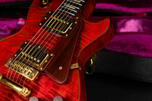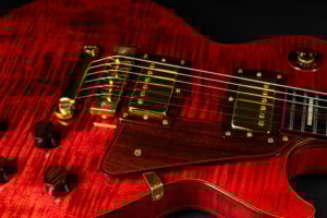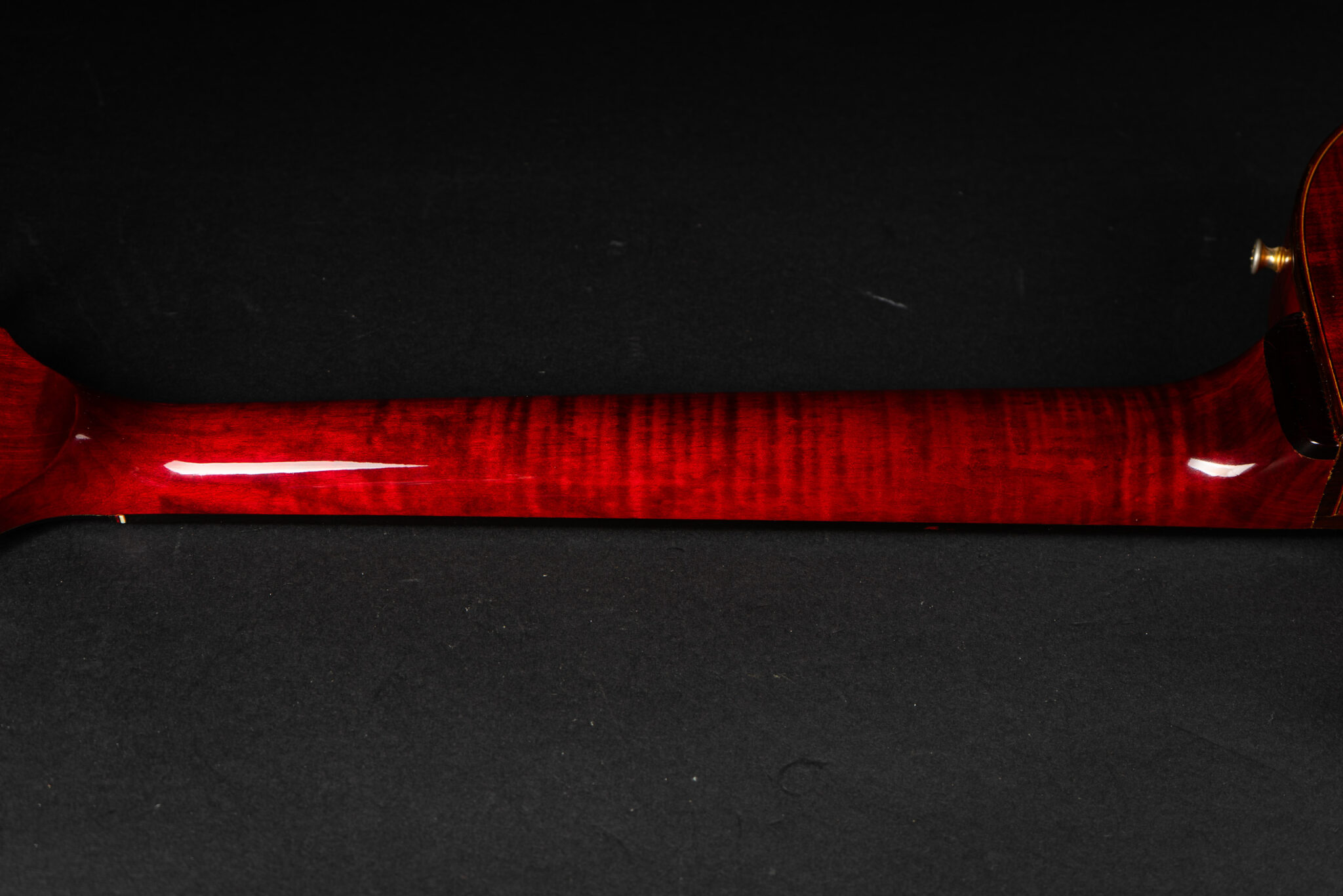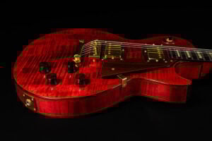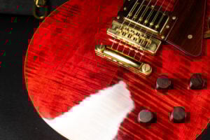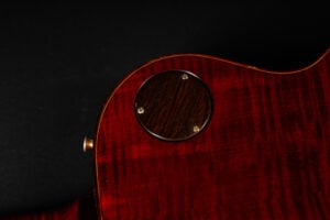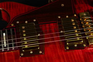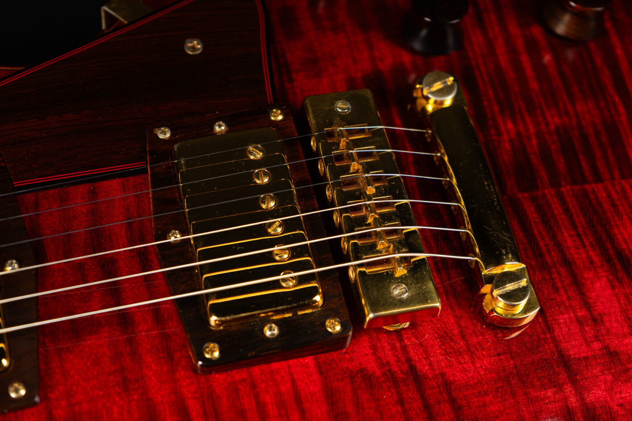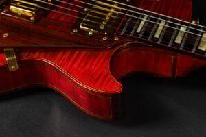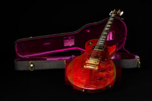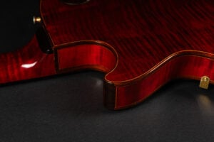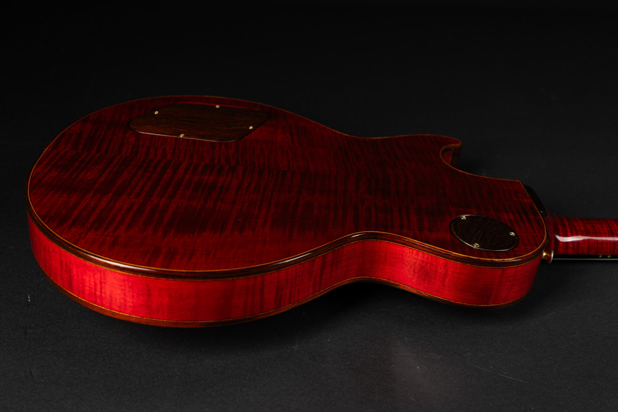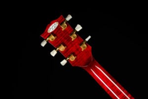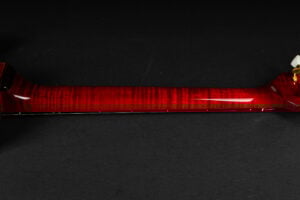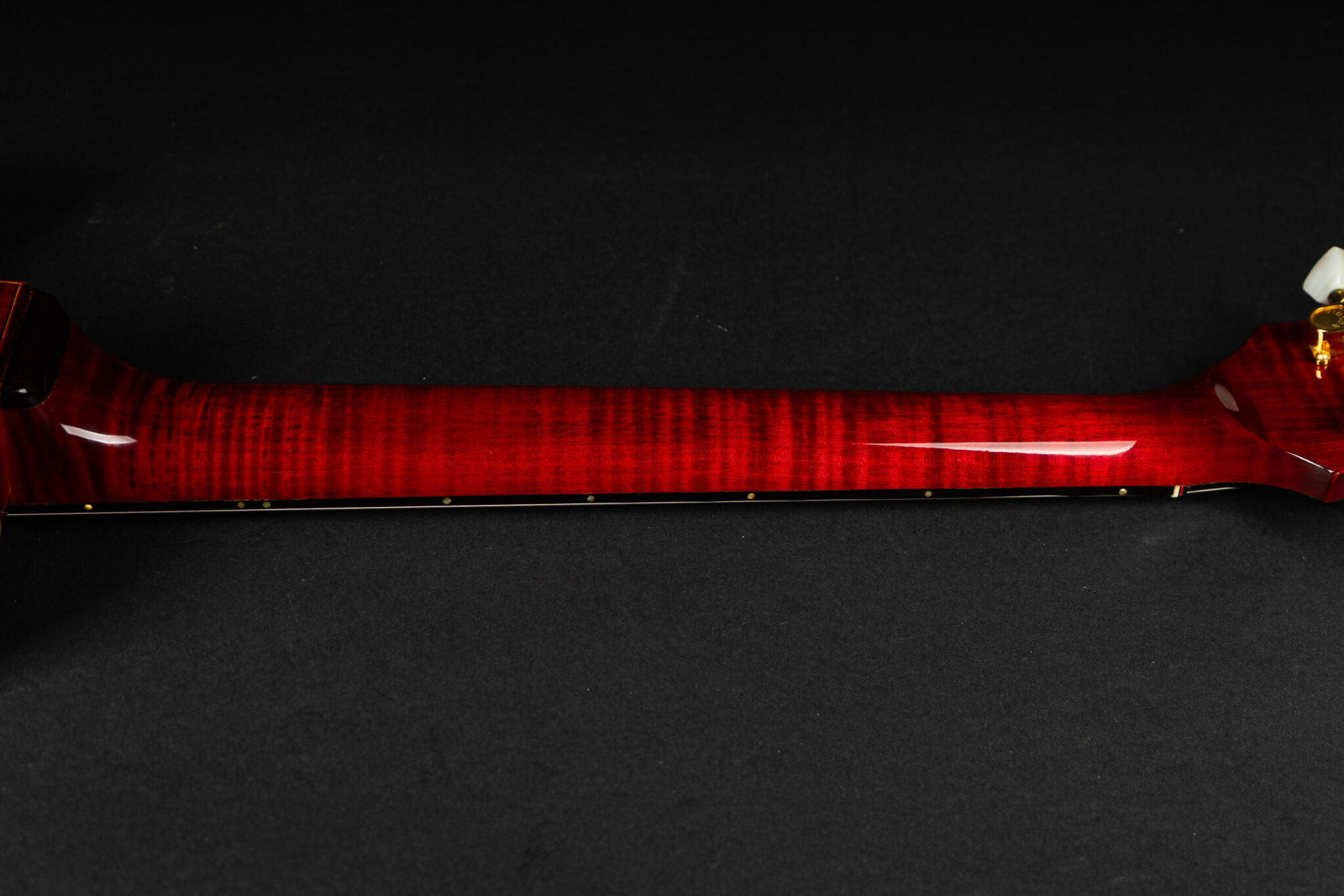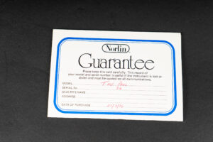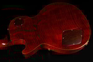 Introduced at the 1975 Namm Show as the ultimate Les Paul… produced from 1976 – 1979 “The Les Paul” is a unique piece of art and the top-of-the-line model of all 1970s Les Pauls! Made of specially sourced Austrian maple top, back and sides with a mahogany core, multiply wooden binding and hand made wooden parts the construction of this guitar is very complicated and the guitar was very expensive even back then ($3199 – which would be $17.200 today!) The fretboard is made of ebony and rosewood, the pickups are “Super Humbuckers”…only 77 have been poduced and only 18 are Wine Red – just like this wonderful example with Reg. No. 34. Since its an earlier/mid production model, serialized in August 1977, it still has all the wooden parts – since Gibson ran out of high quality material for this very special run, later models had plastic knobs or brass nuts. A highly collectible Les Paul, THE Les Paul – and the first Wine Red colored we’ve had. Comes with original case and warranty card.