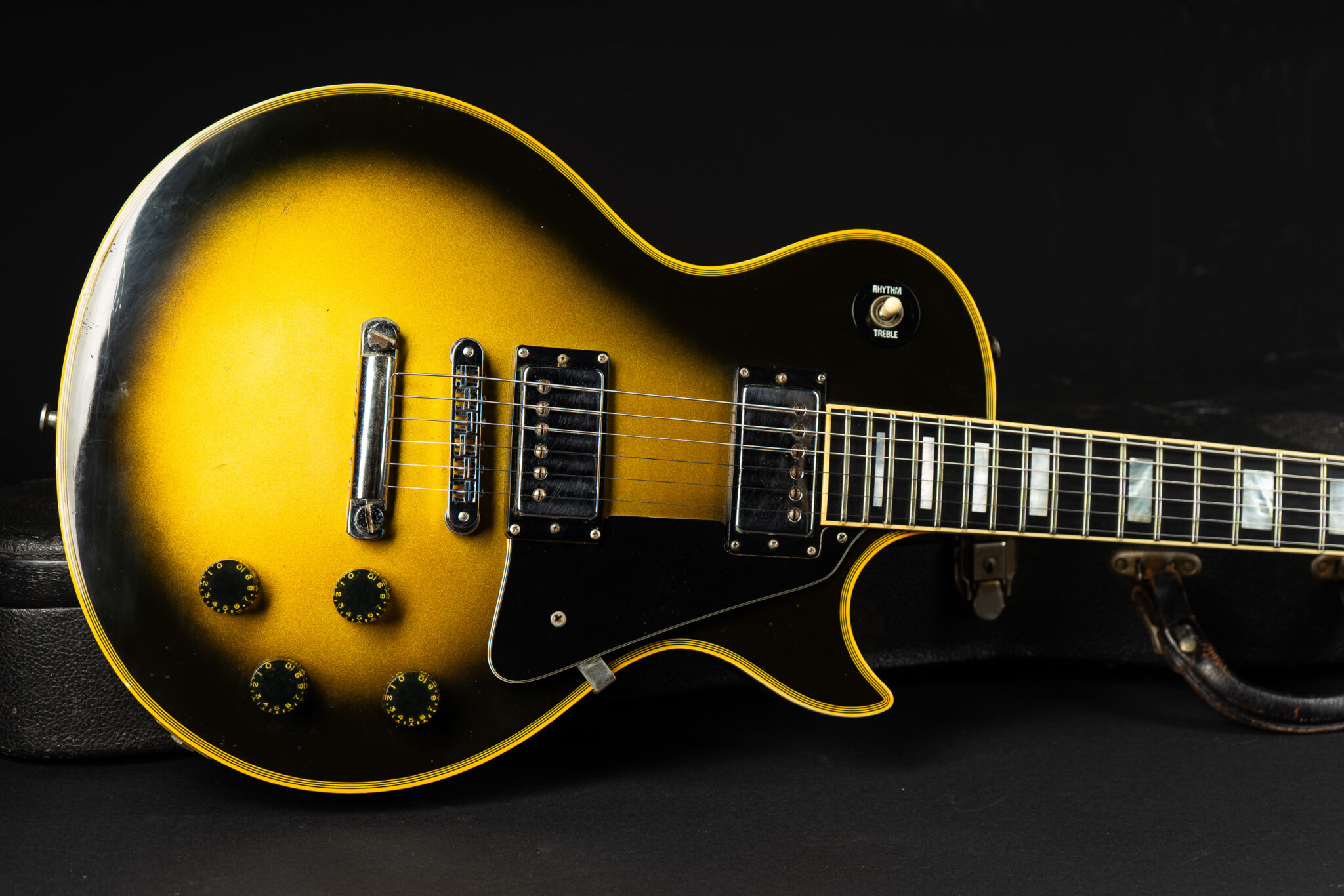 Beautiful 1980 Gibson Les Paul Custom in Silverburst finish – the Adam Jones spec guitar with maple neck and mahogany body. Both pickups are dated 1980, pots are dated to late 1979. Comes from the original owner who bought it new in December 1980 in Pennsylvania – the original sales receipt is included. Its definitely the heavy weight champion with 5,28Kg – but it sounds just as heavy too! Really good sounding Custom with – as you may imagine – sustain for years! All original besides a new Schaller bridge. The frets are rather low and a refret would be recommended (please ask – we can do that for you). Comes incl. original case.