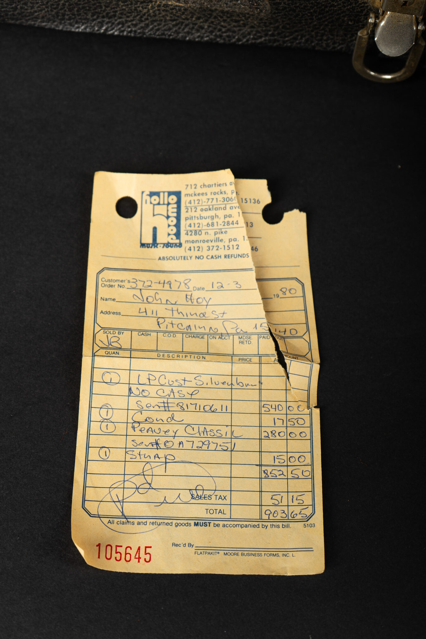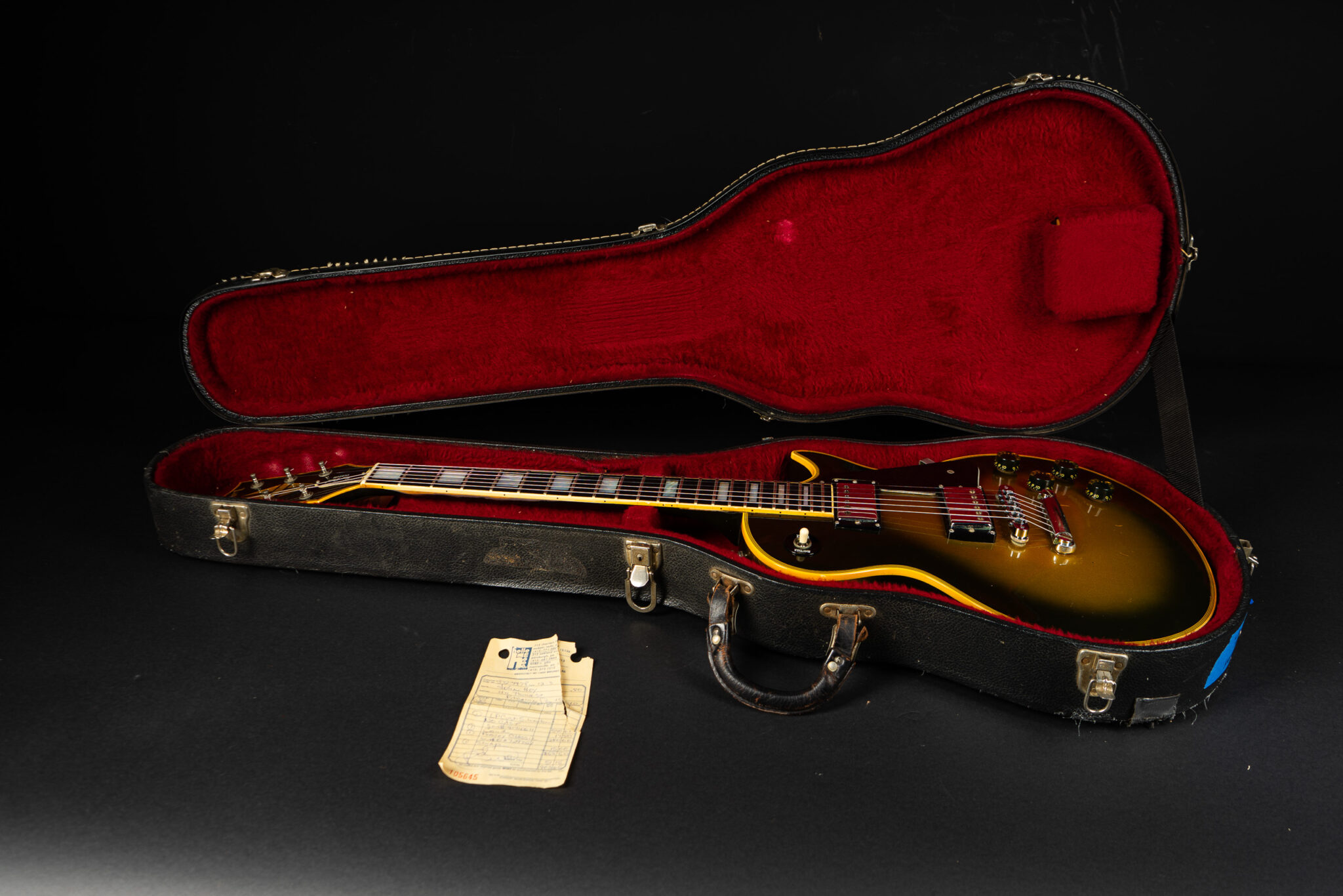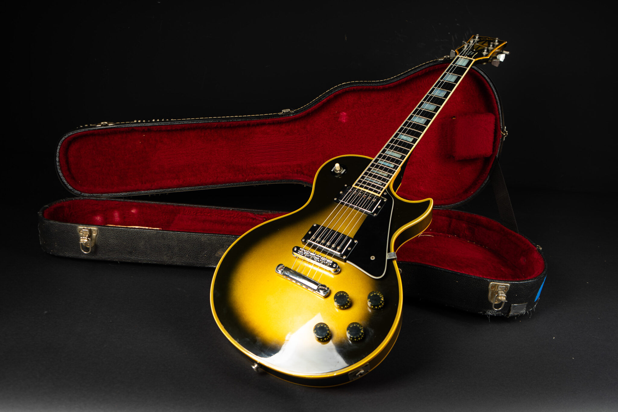 Beautiful 1980 Gibson Les Paul Custom in Silverburst finish – the Adam Jones spec guitar with maple neck and mahogany body. Both pickups are dated 1980, pots are dated to late 1979. Comes from the original owner who bought it new in December 1980 in Pennsylvania – the original sales receipt is included. Its definitely the heavy weight champion with 5,28Kg – but it sounds just as heavy too! Really good sounding Custom with – as you may imagine – sustain for years! All original besides a new Schaller bridge. The frets are rather low and a refret would be recommended (please ask – we can do that for you). Comes incl. original case.