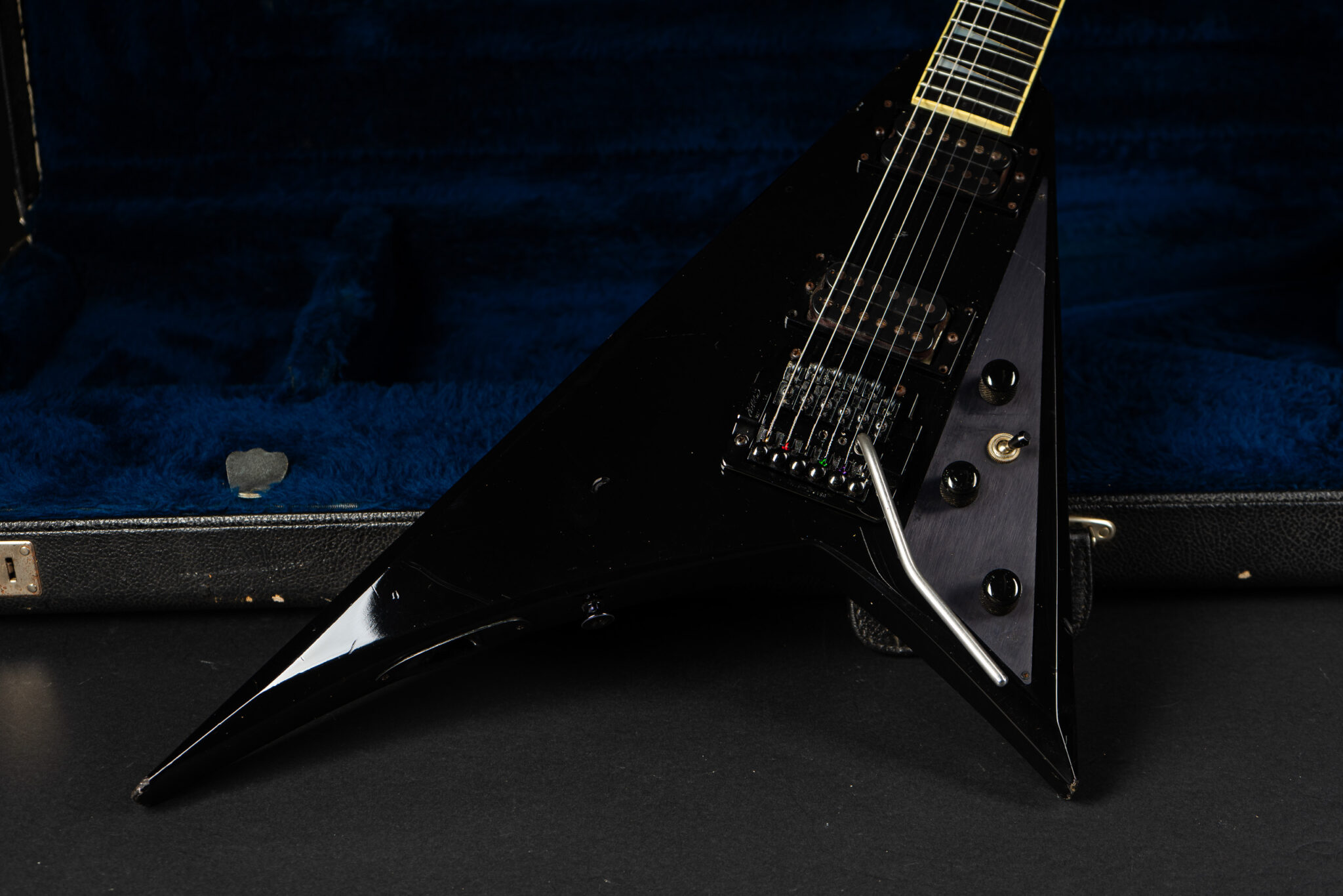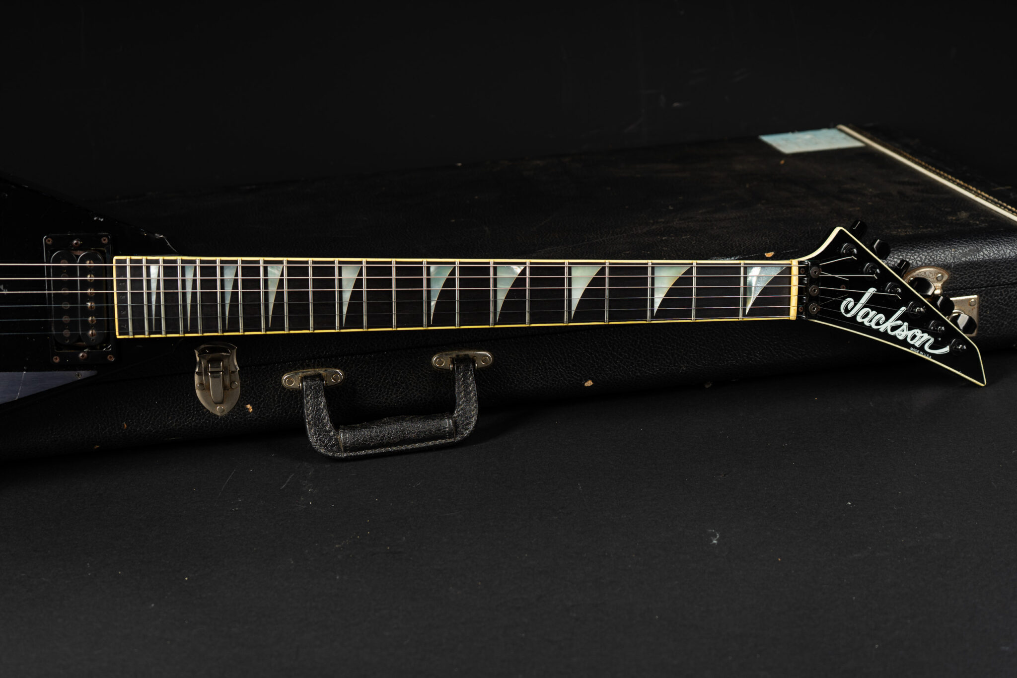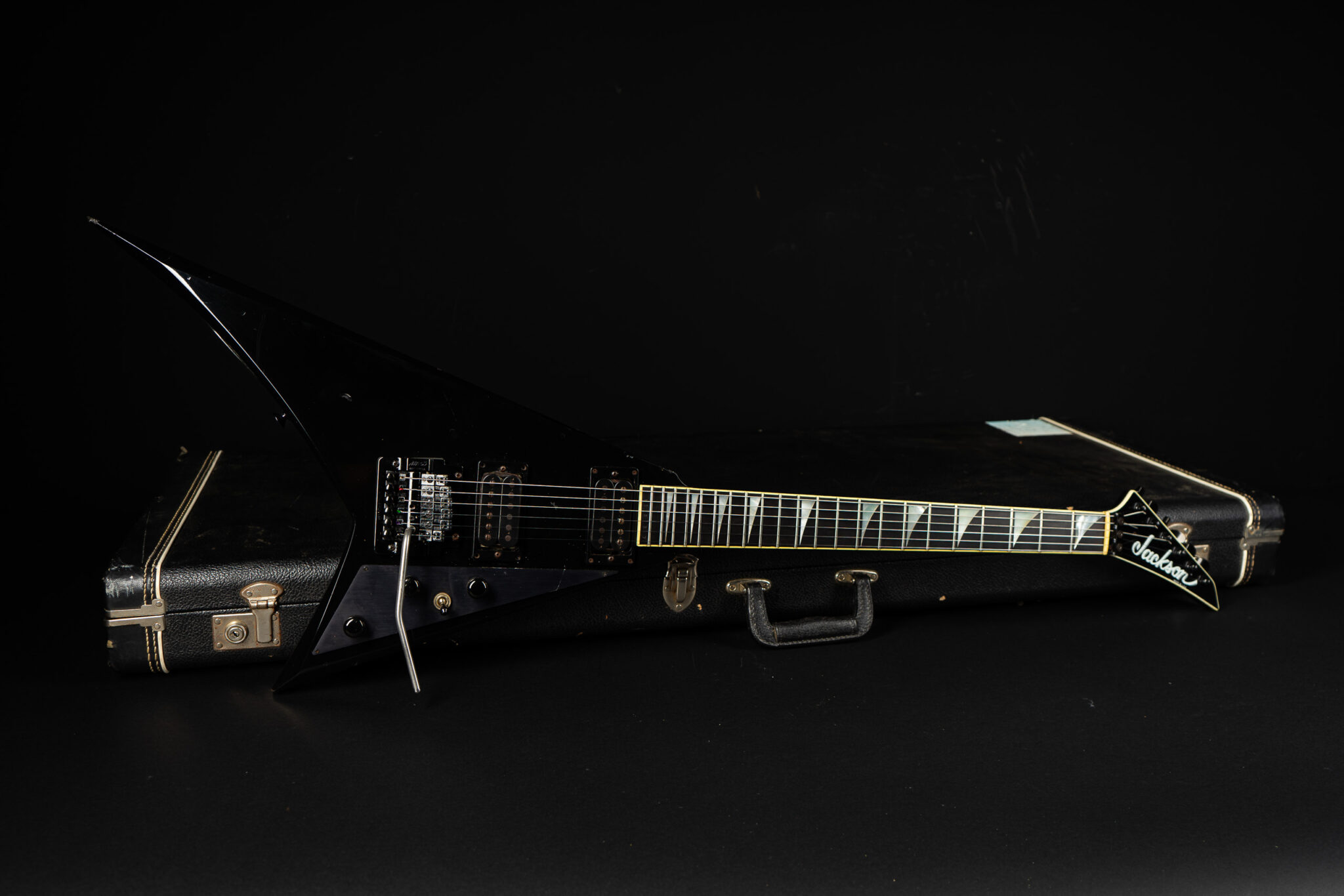 Rare 1985 San Dimas made Jackson RR-1 Randy Roads – all original – with Kahler tremolo. The guitar has been played a lot so it shows some honest wear but kept in original condition. Pickups are Jackson J-50N & J-80 – super hot, that guitar screams! Comes incl. original case.
