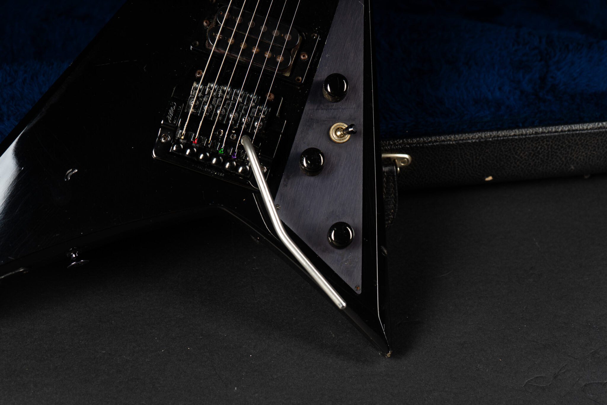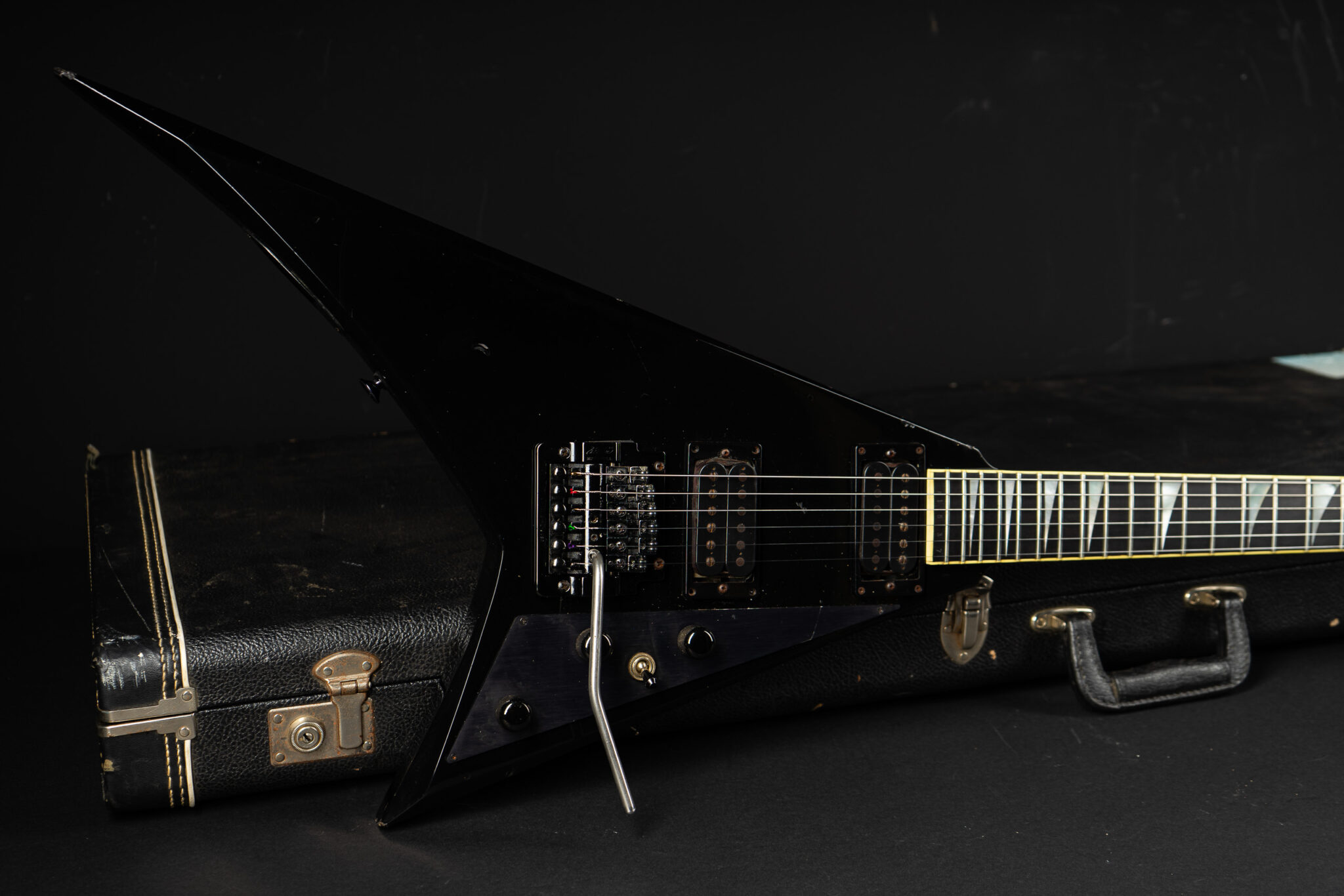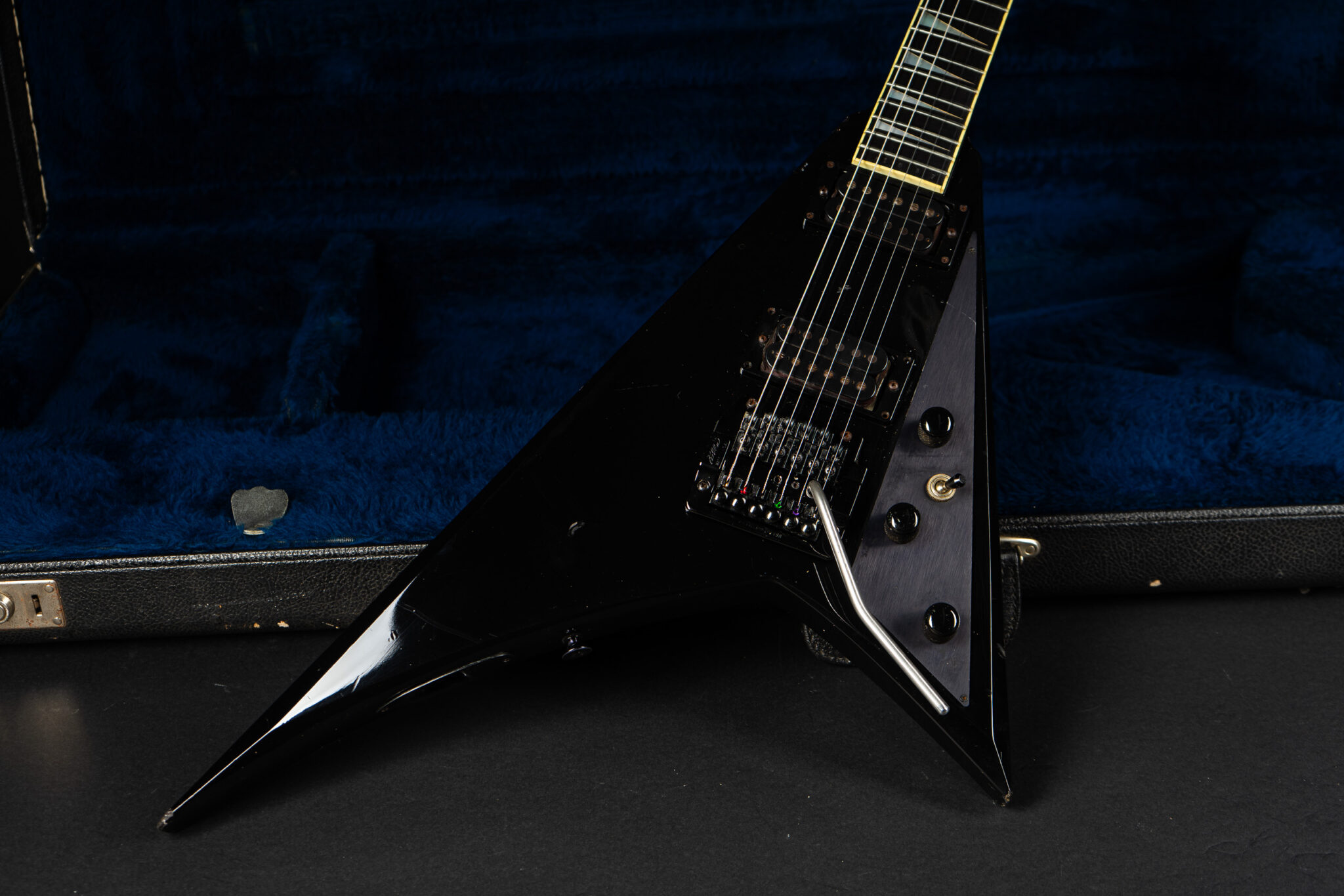 Rare 1985 San Dimas made Jackson RR-1 Randy Roads – all original – with Kahler tremolo. The guitar has been played a lot so it shows some honest wear but kept in original condition. Pickups are Jackson J-50N & J-80 – super hot, that guitar screams! Comes incl. original case.