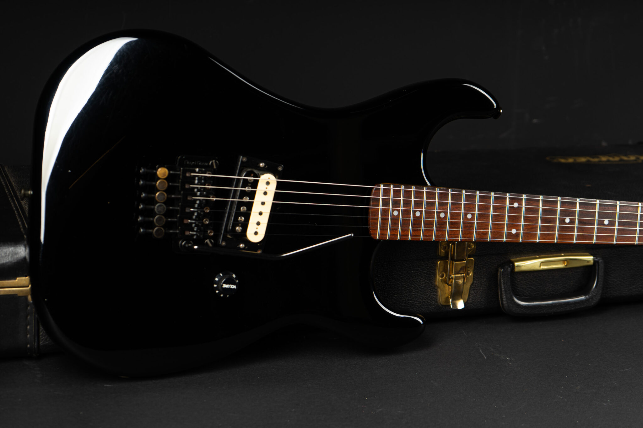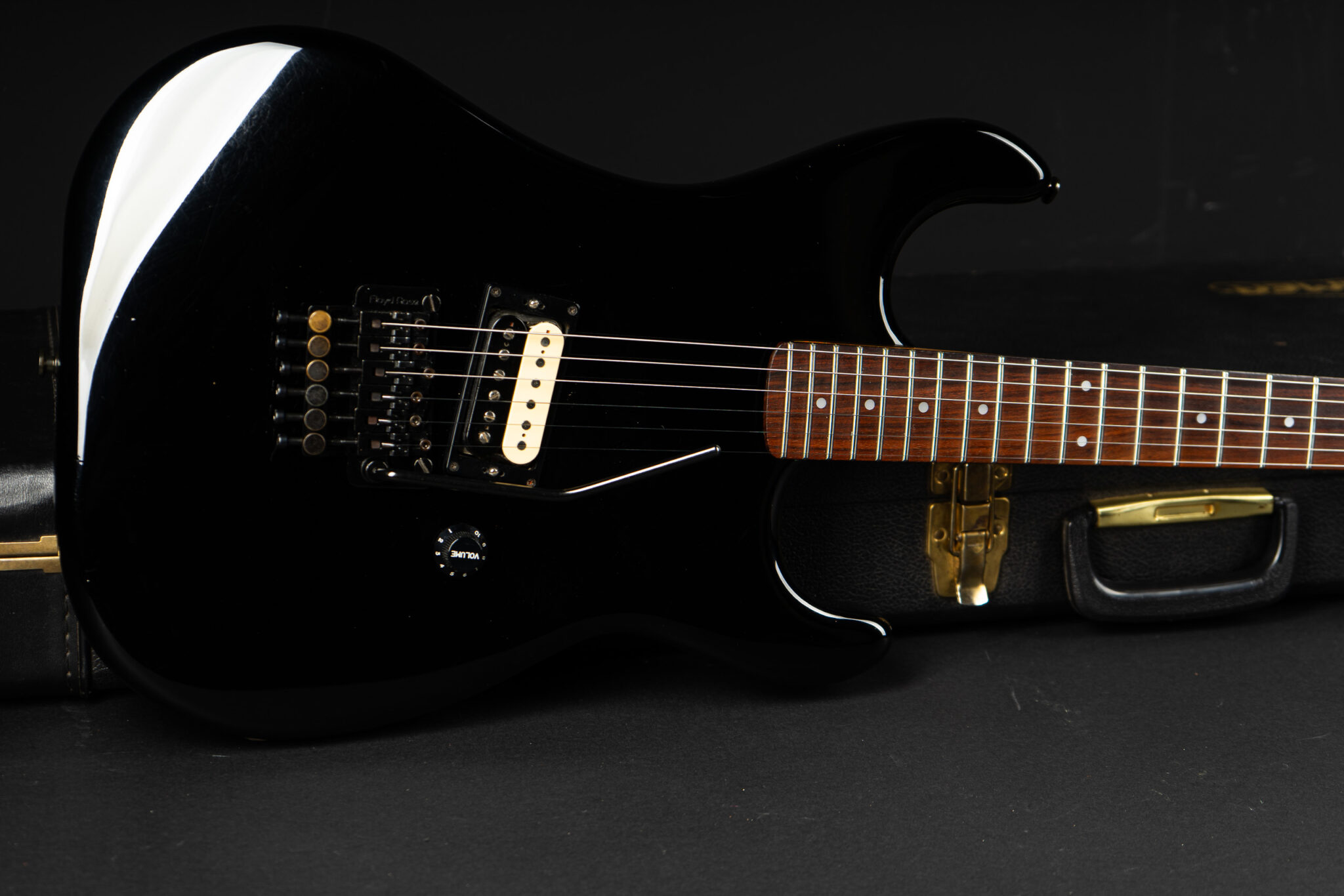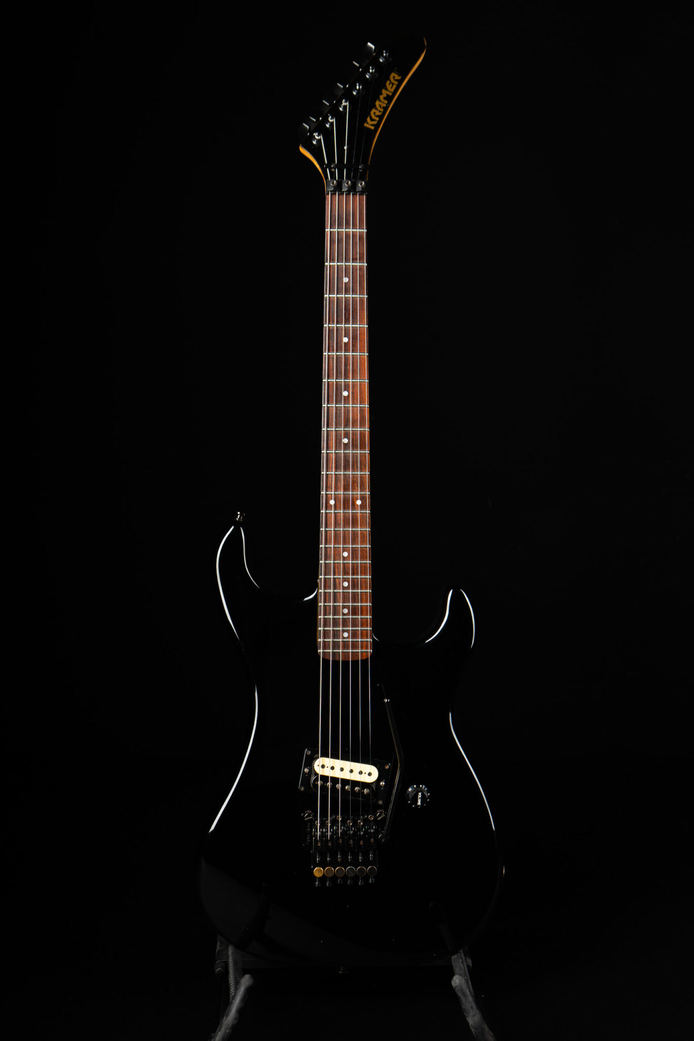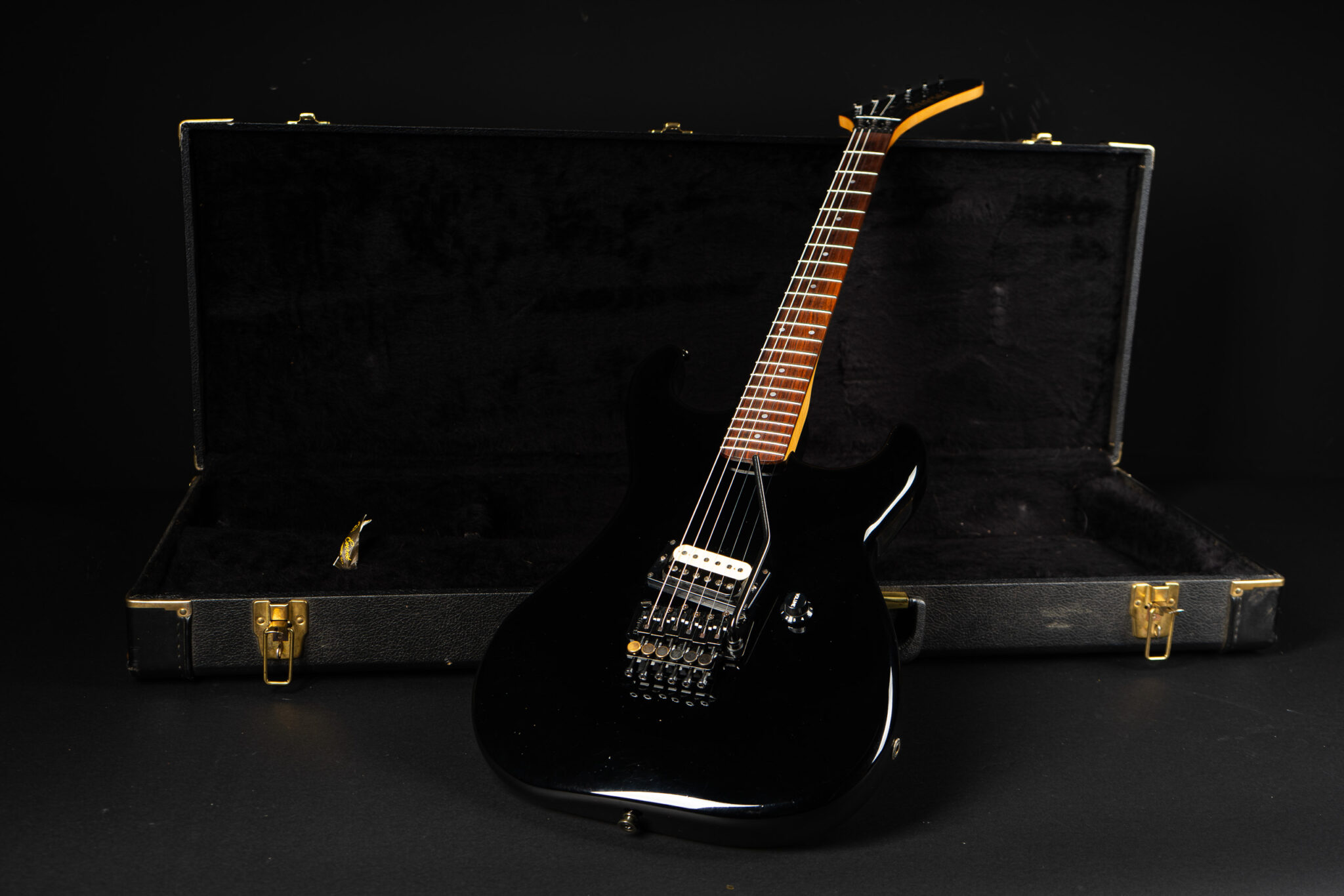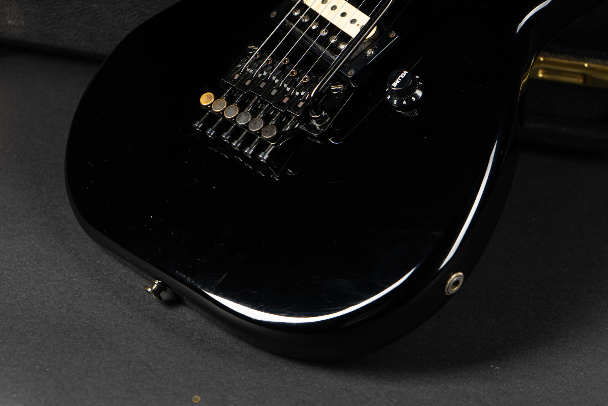 All original 1985 Kramer Baretta in Black finish. The neck is dated September 1985. Still the earlier pre “Neptune” stamped neck plate! 1985 dated pot, Seymour Duncan JB humbucker and USA Floyd Rose. No asian parts, body made in Connecticut by Sports and neck likely made in Canada. Super nice guitar, comes with original case.