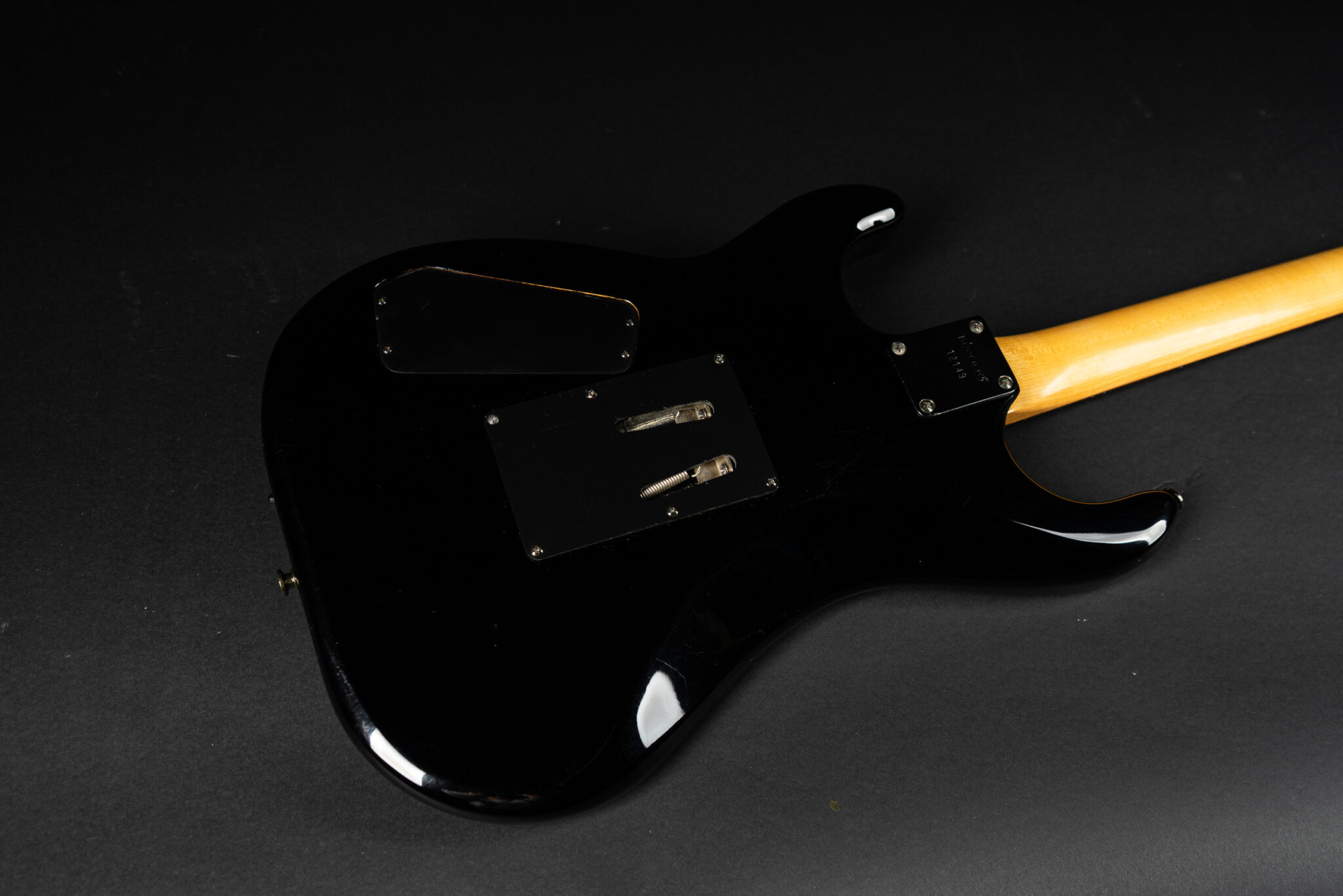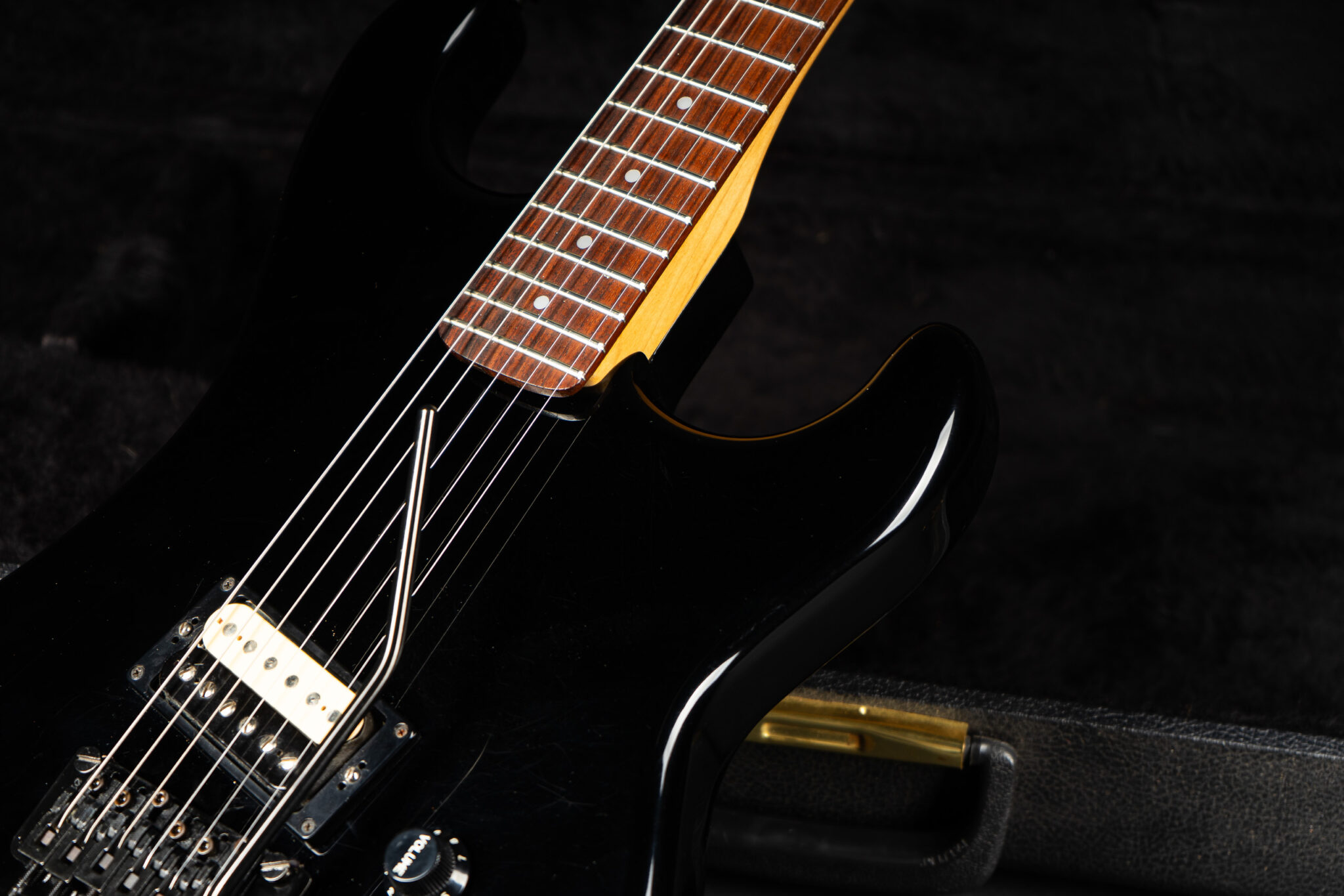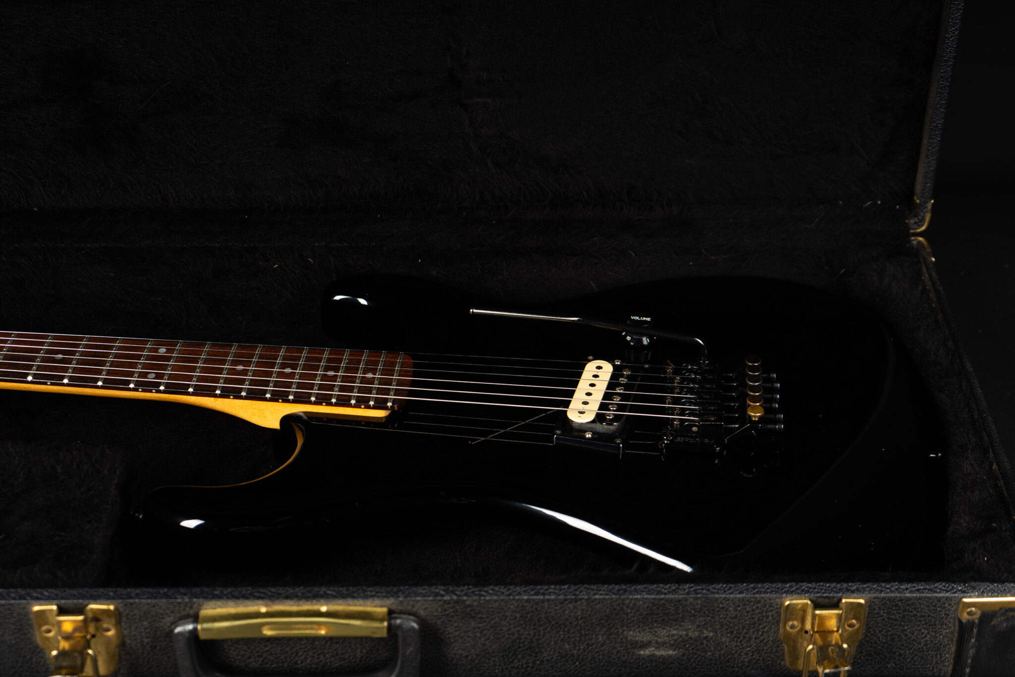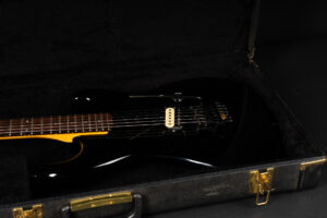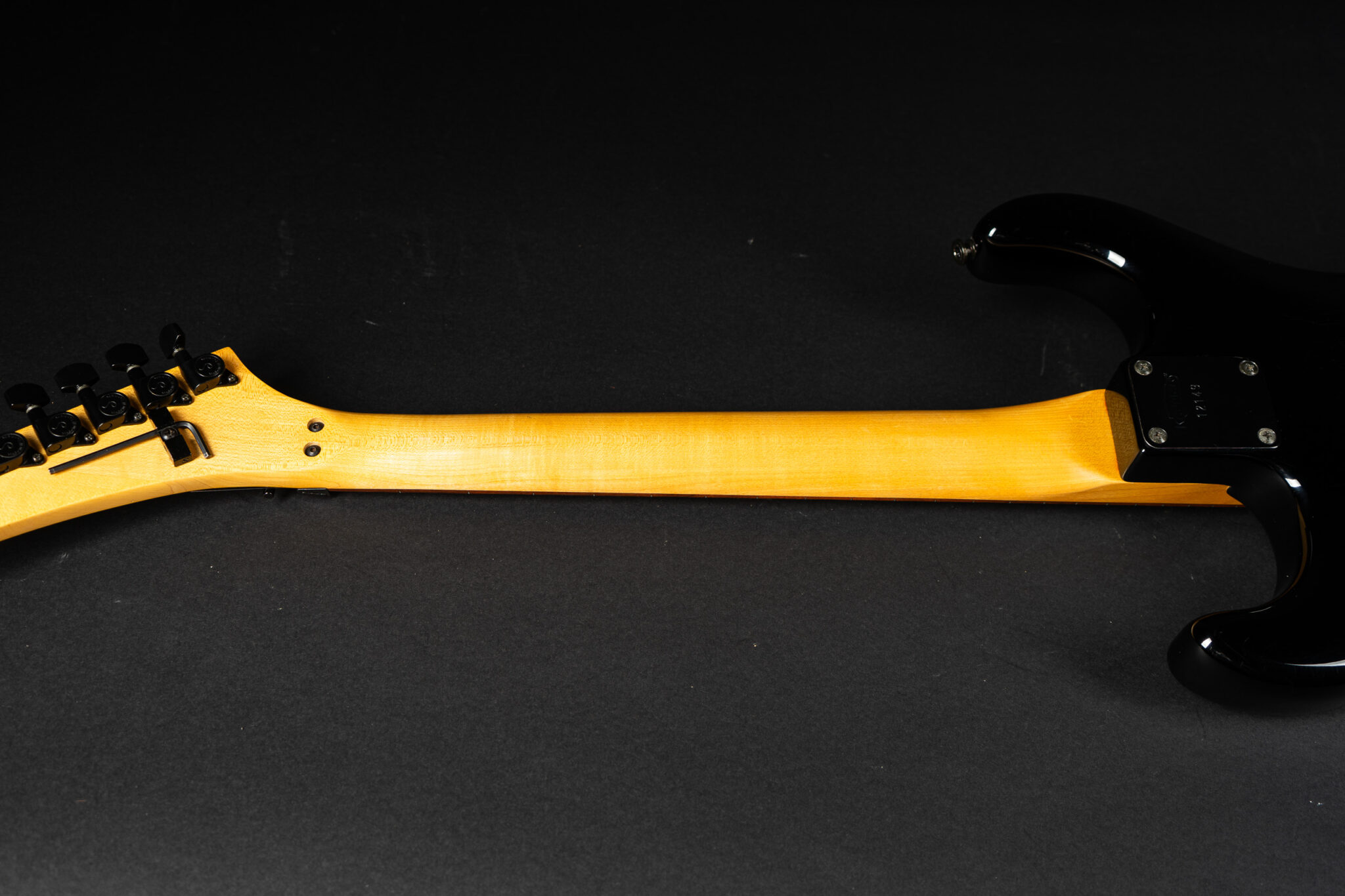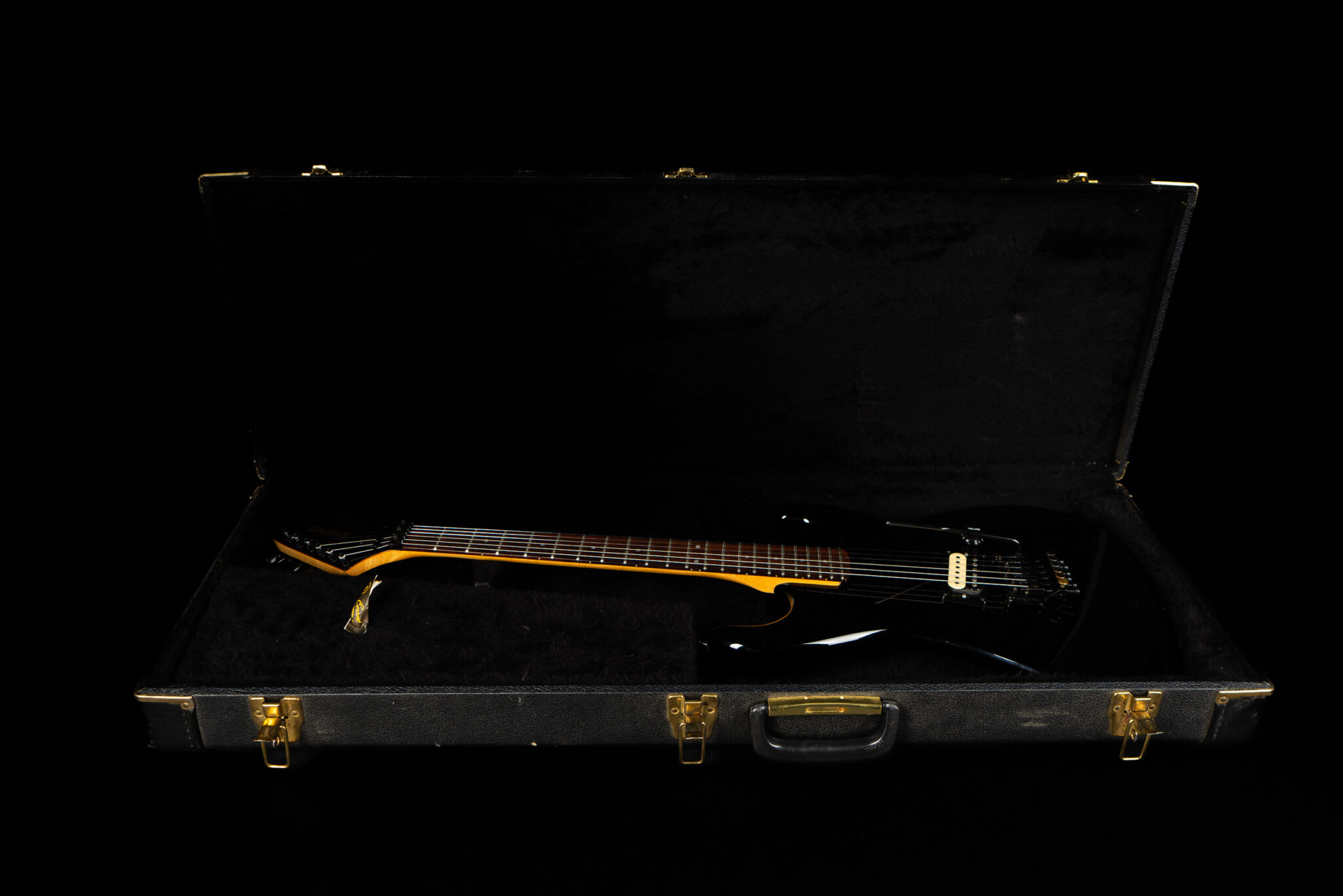 All original 1985 Kramer Baretta in Black finish. The neck is dated September 1985. Still the earlier pre “Neptune” stamped neck plate! 1985 dated pot, Seymour Duncan JB humbucker and USA Floyd Rose. No asian parts, body made in Connecticut by Sports and neck likely made in Canada. Super nice guitar, comes with original case.