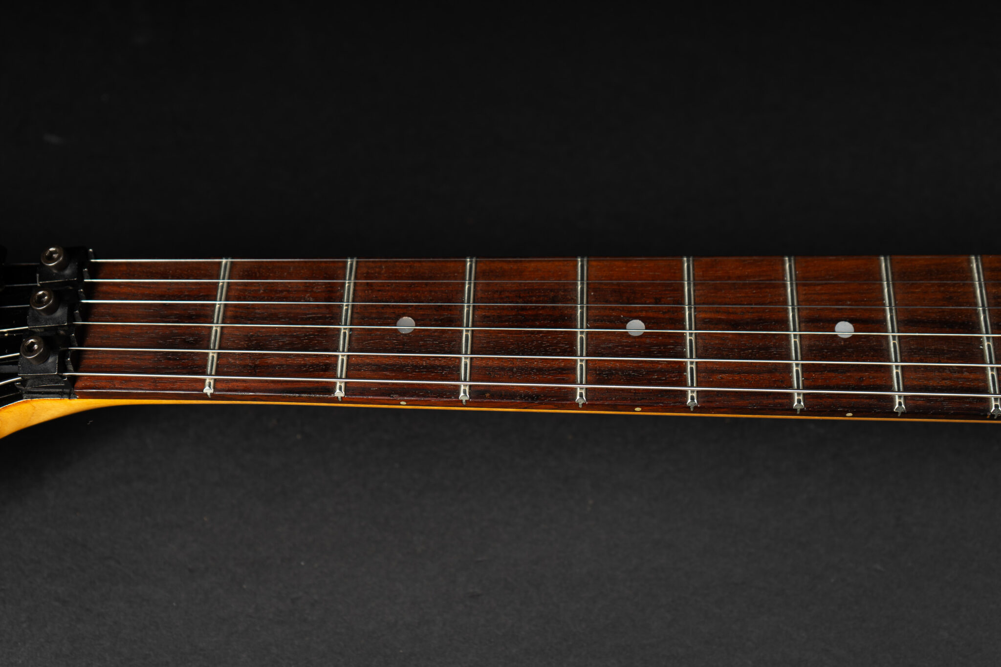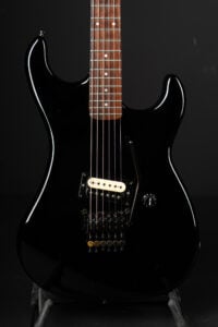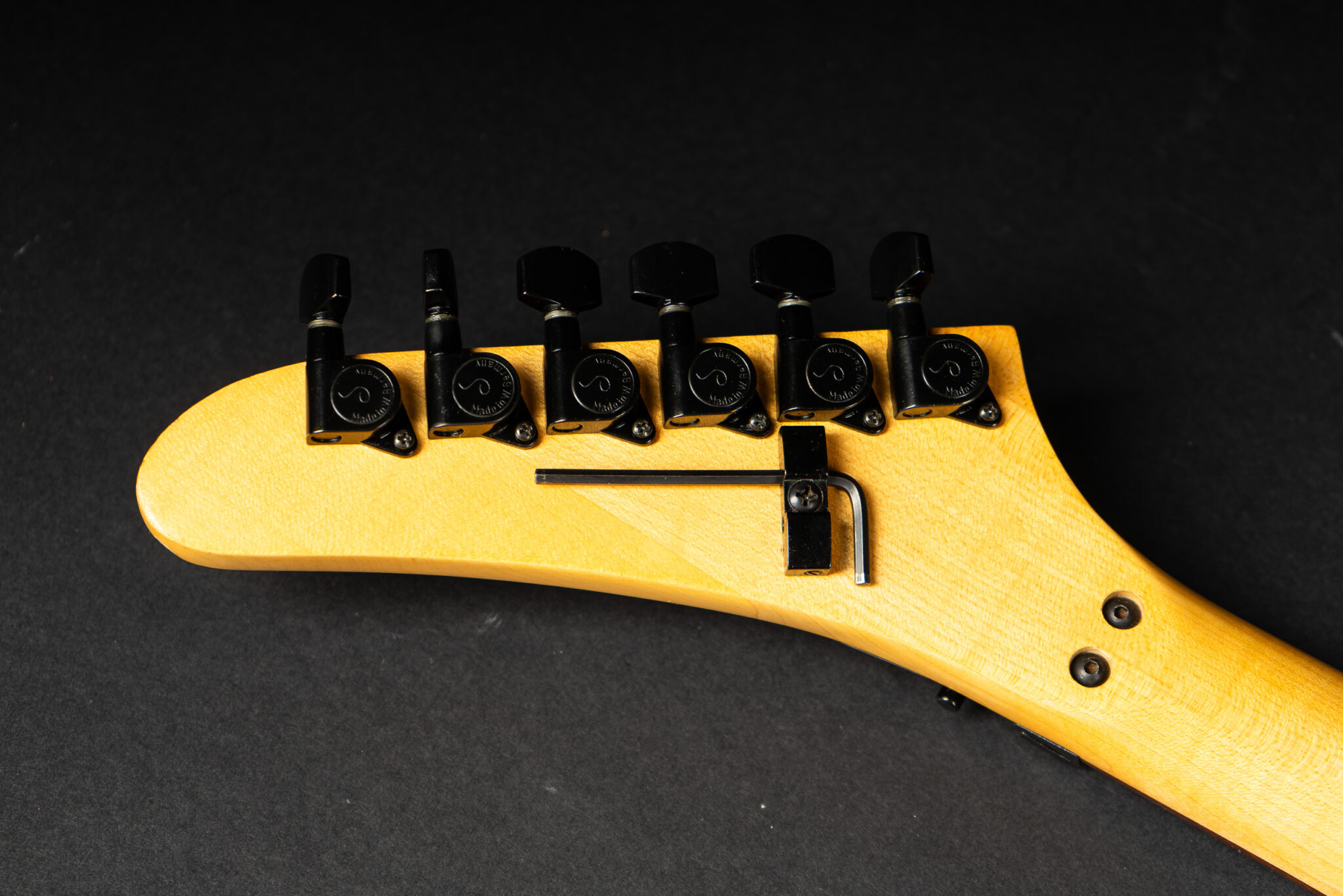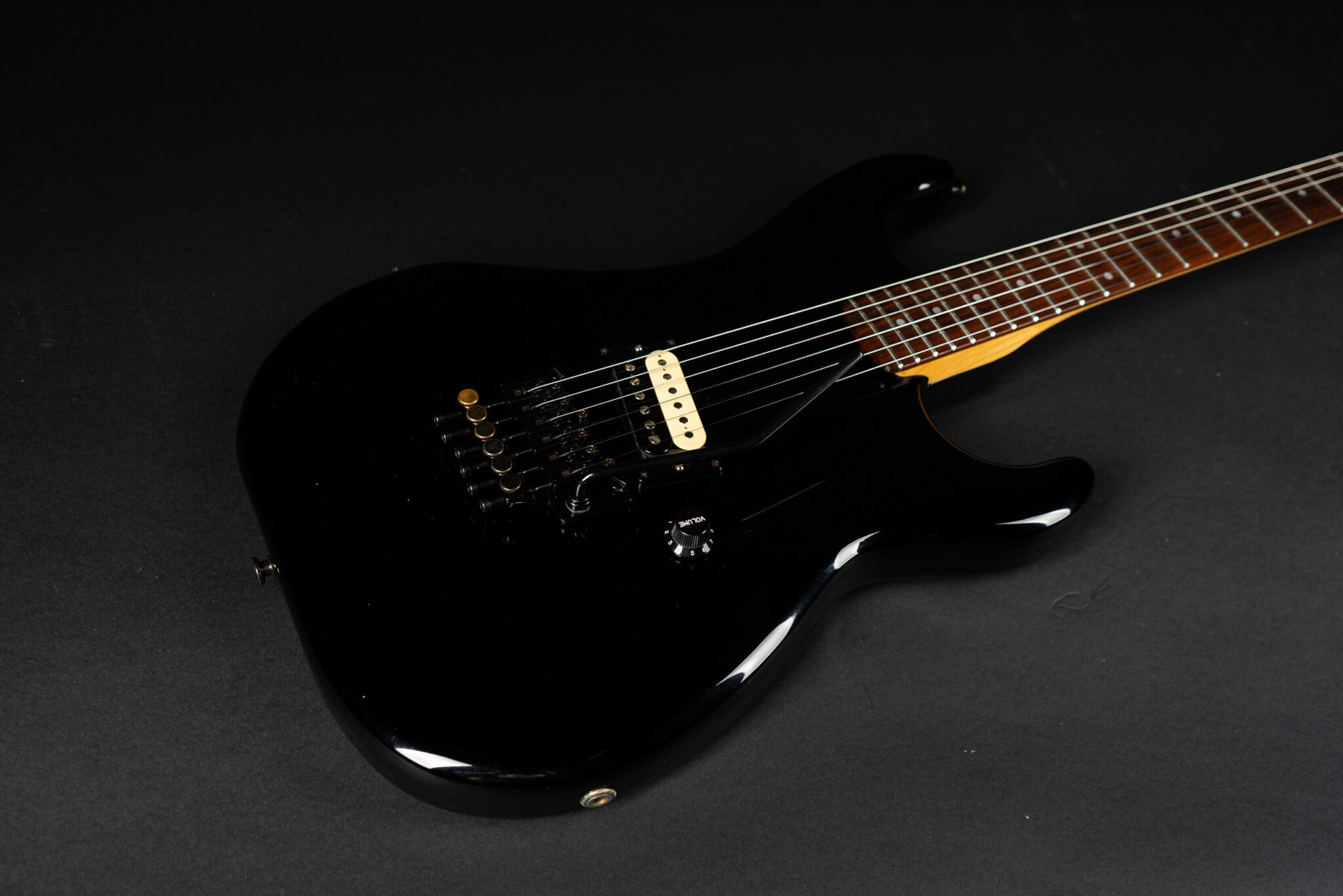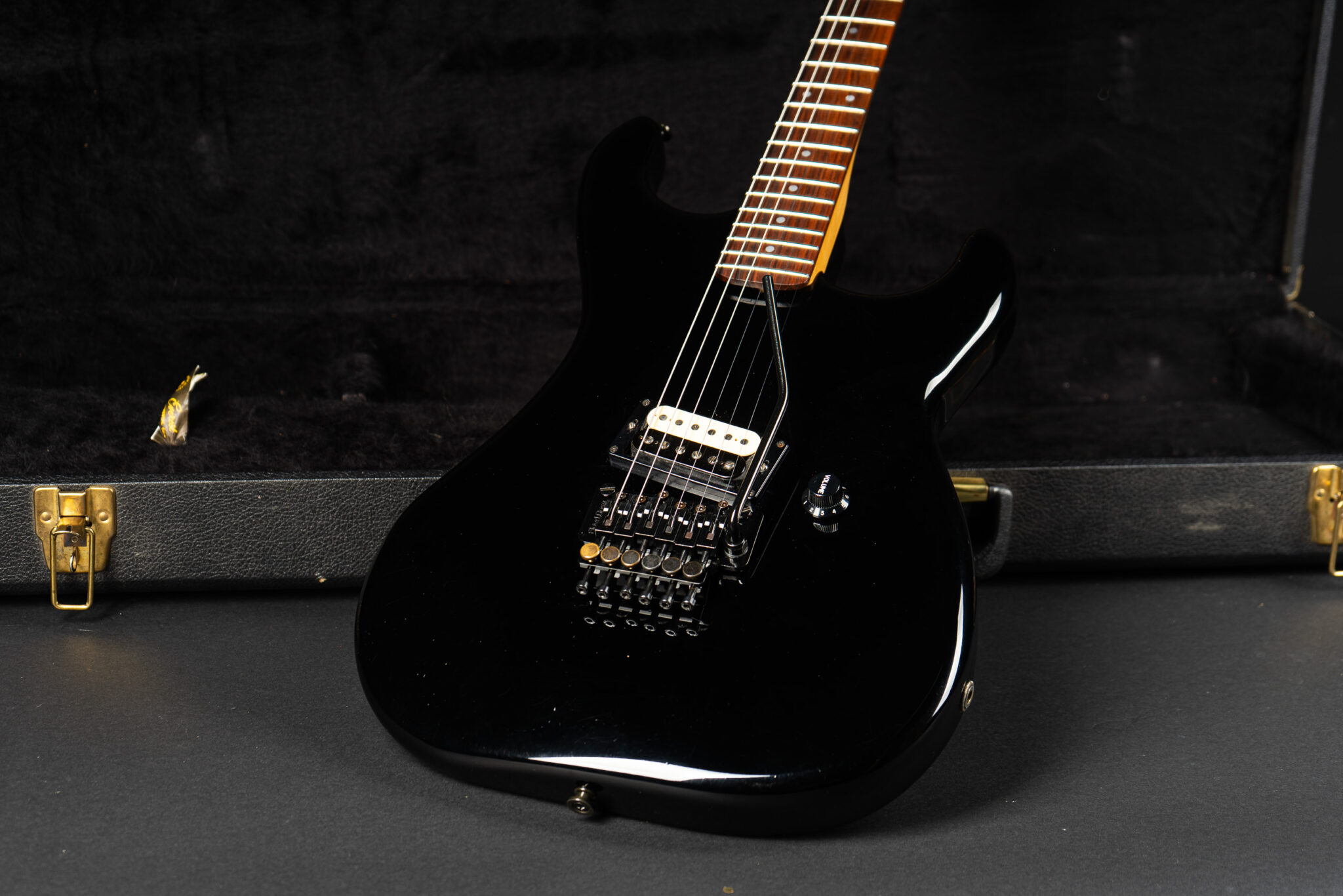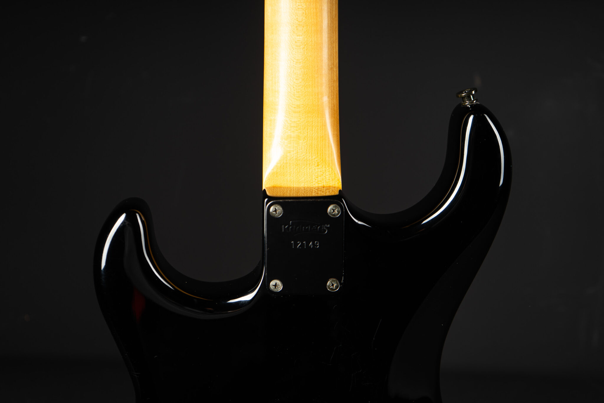 All original 1985 Kramer Baretta in Black finish. The neck is dated September 1985. Still the earlier pre “Neptune” stamped neck plate! 1985 dated pot, Seymour Duncan JB humbucker and USA Floyd Rose. No asian parts, body made in Connecticut by Sports and neck likely made in Canada. Super nice guitar, comes with original case.