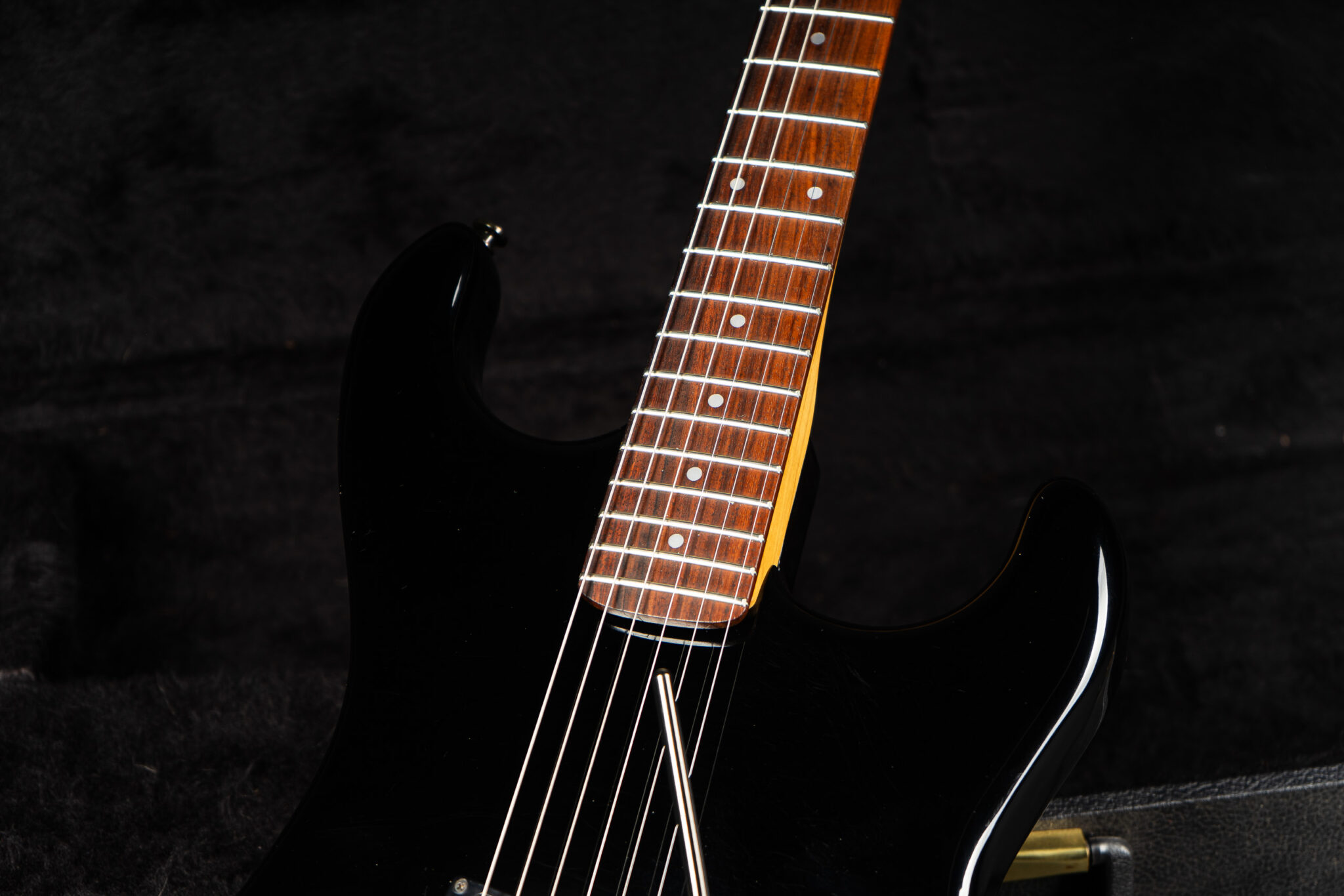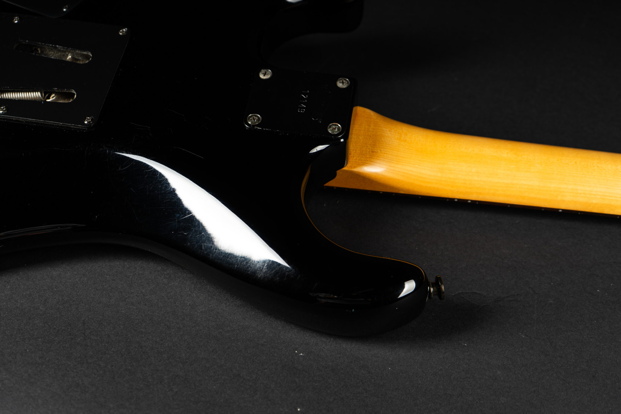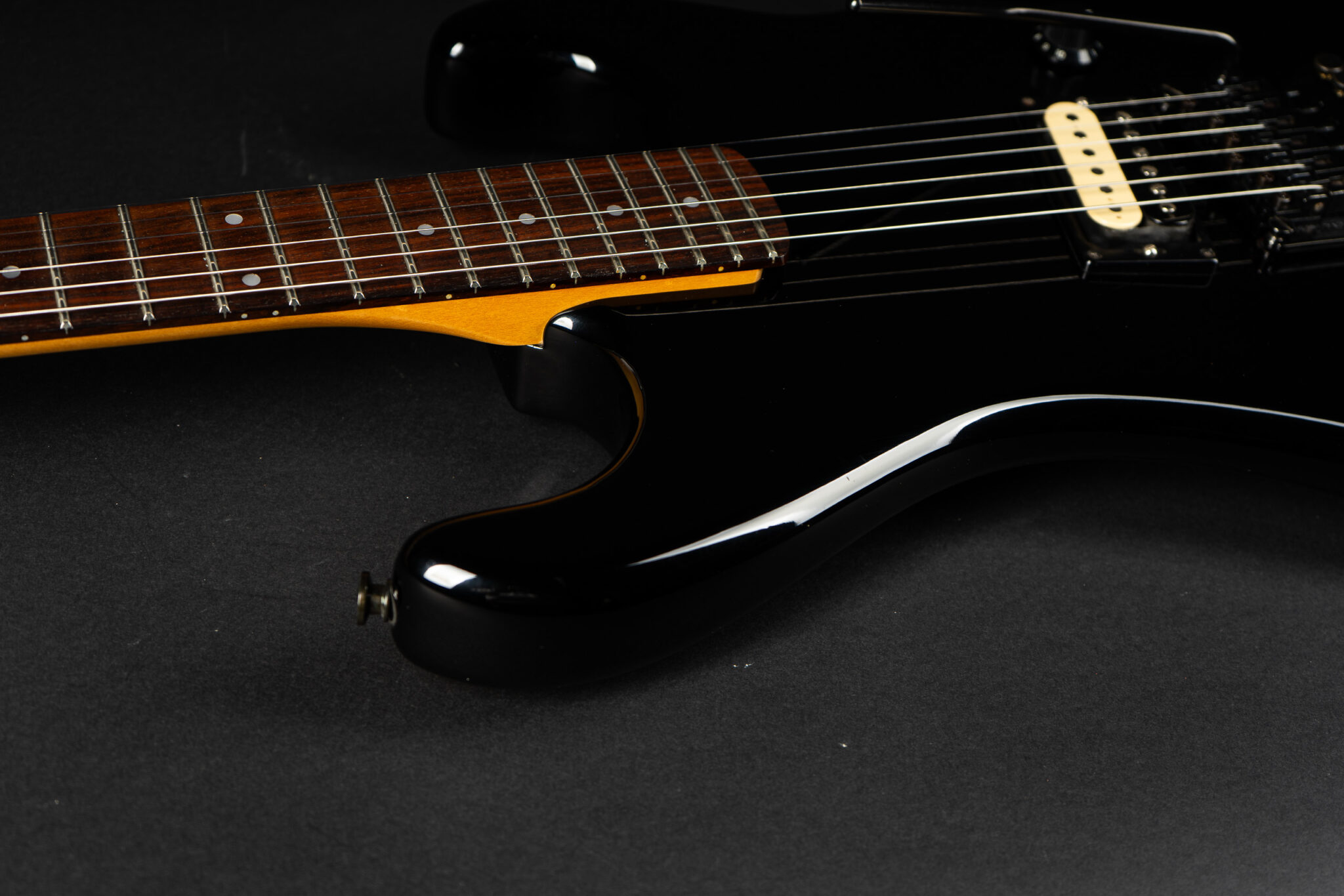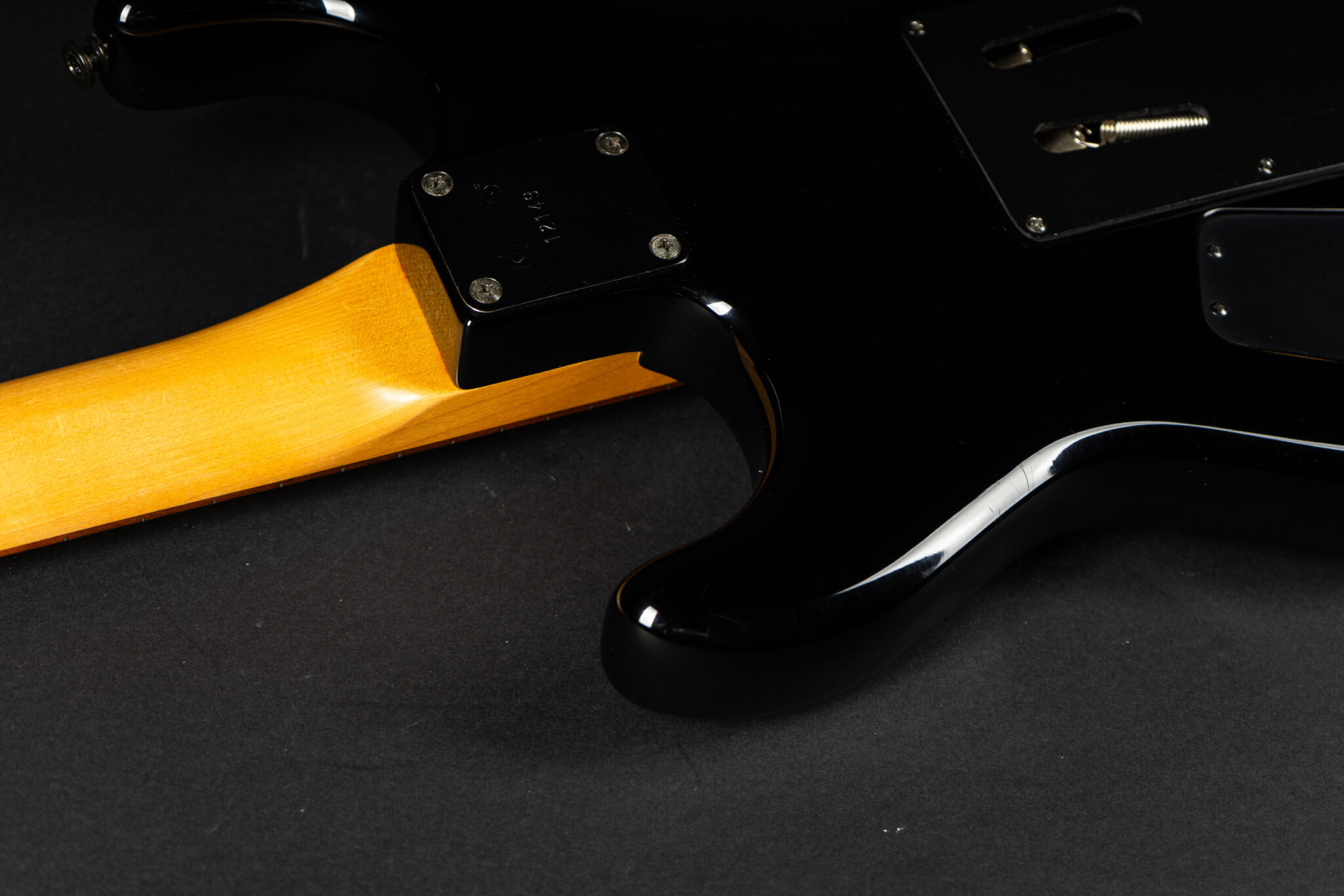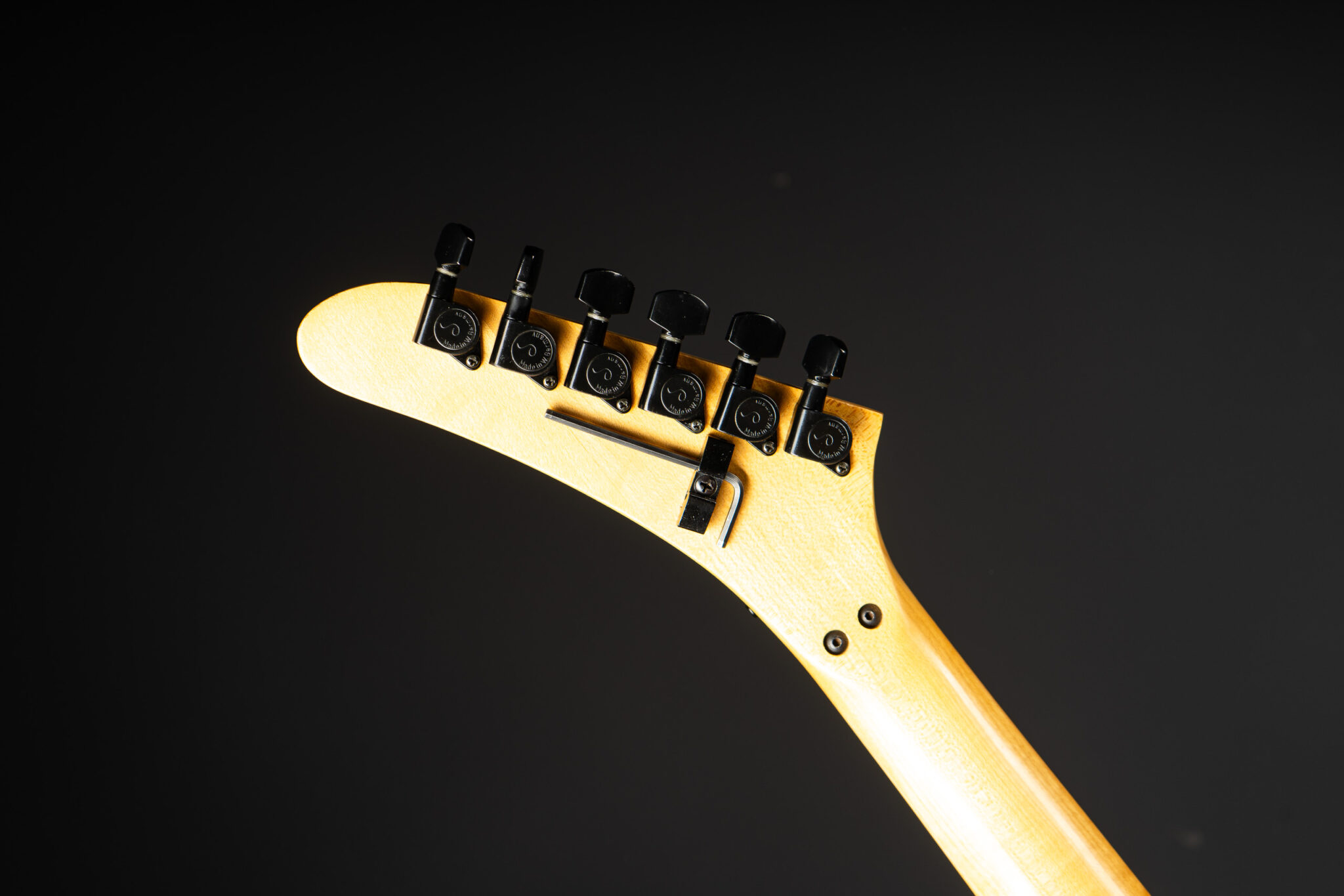 All original 1985 Kramer Baretta in Black finish. The neck is dated September 1985. Still the earlier pre “Neptune” stamped neck plate! 1985 dated pot, Seymour Duncan JB humbucker and USA Floyd Rose. No asian parts, body made in Connecticut by Sports and neck likely made in Canada. Super nice guitar, comes with original case.