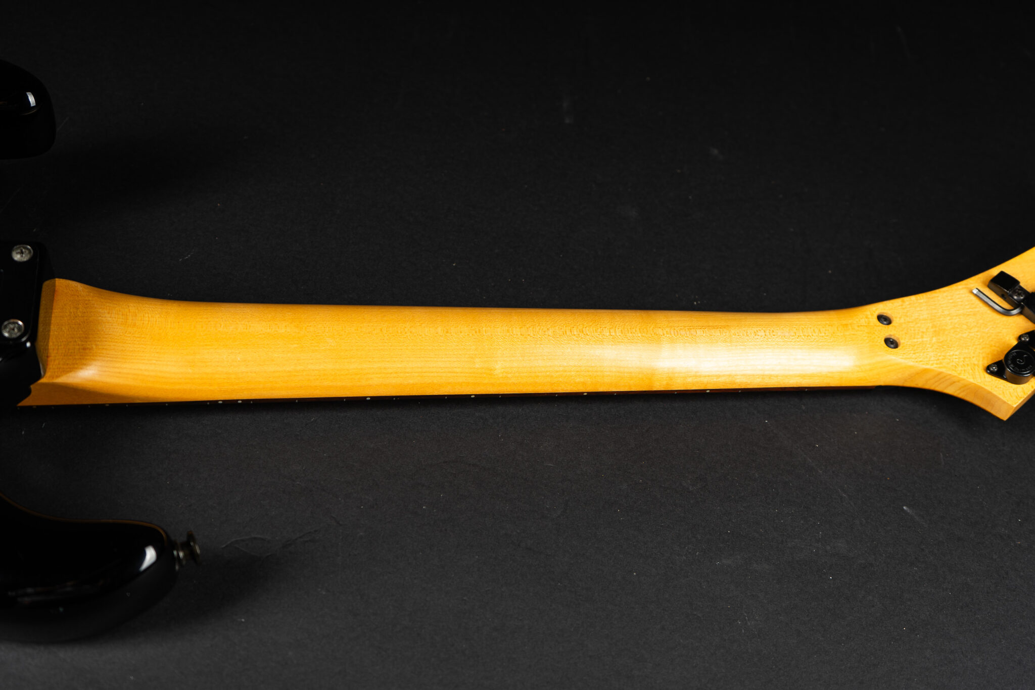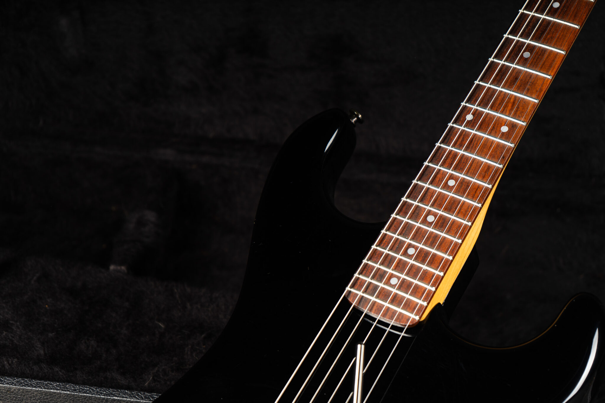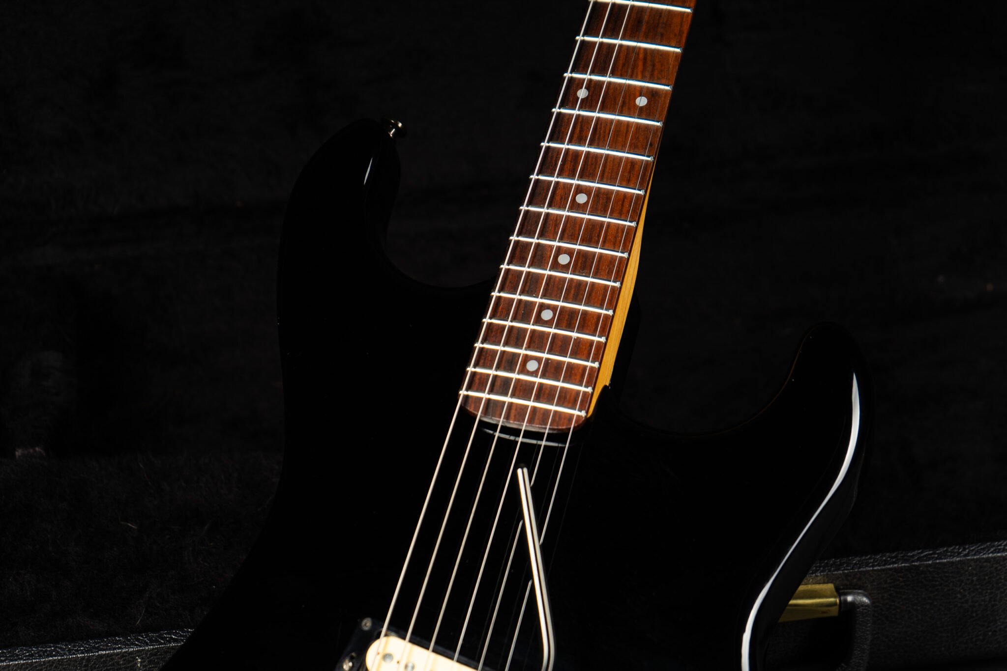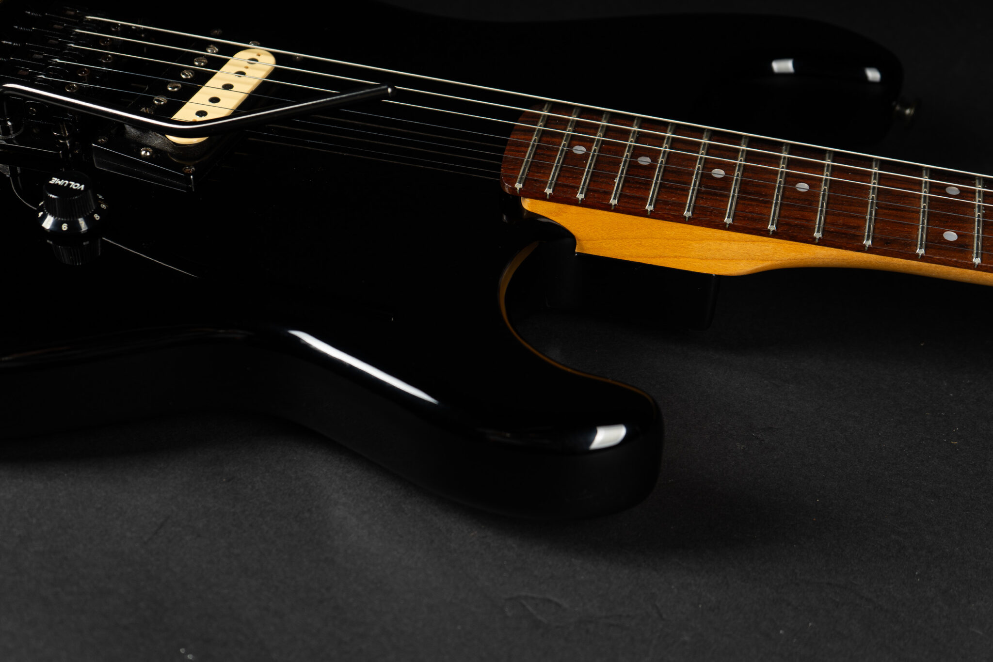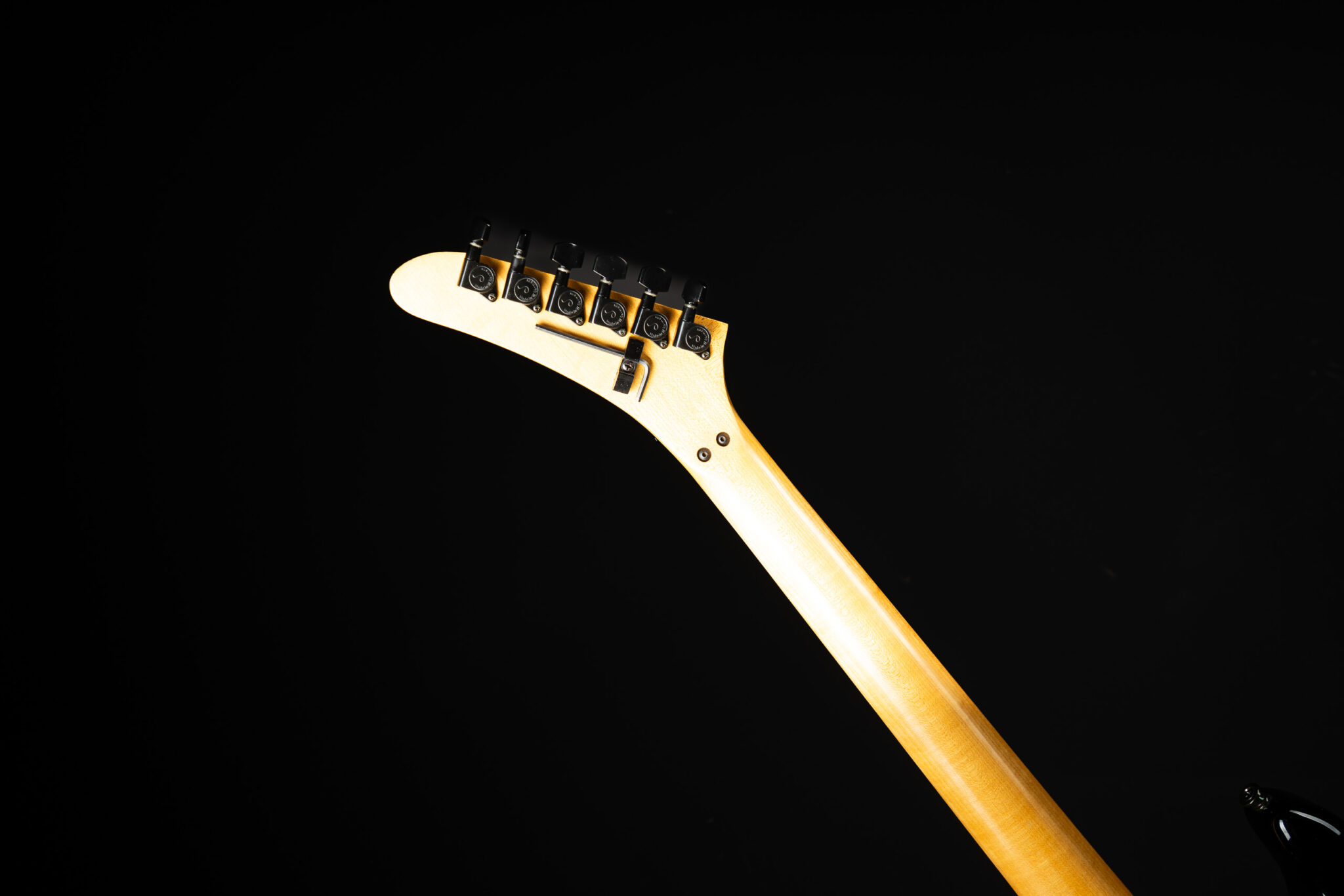 All original 1985 Kramer Baretta in Black finish. The neck is dated September 1985. Still the earlier pre “Neptune” stamped neck plate! 1985 dated pot, Seymour Duncan JB humbucker and USA Floyd Rose. No asian parts, body made in Connecticut by Sports and neck likely made in Canada. Super nice guitar, comes with original case.