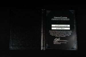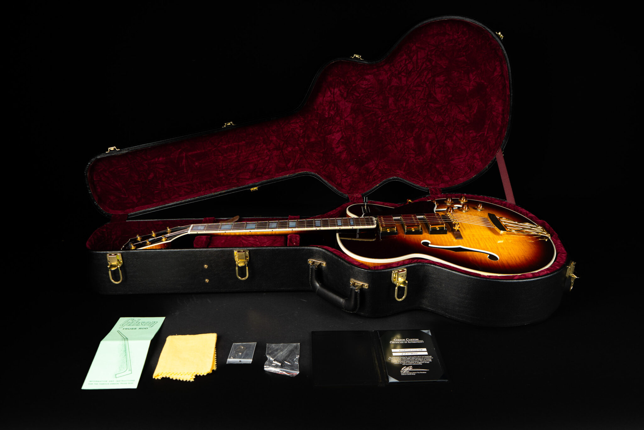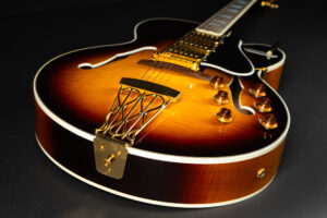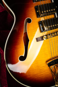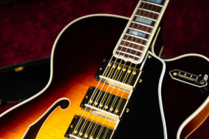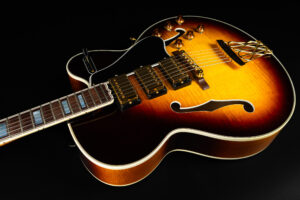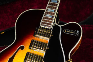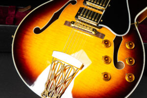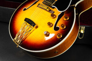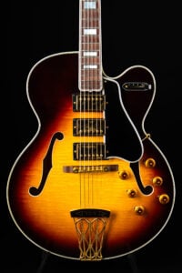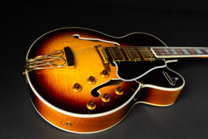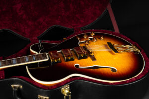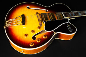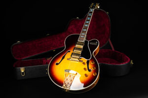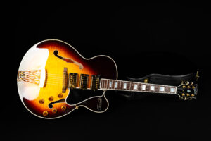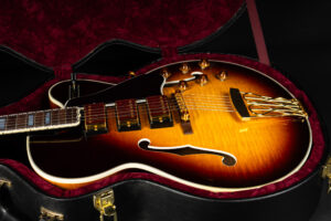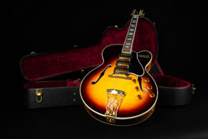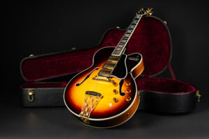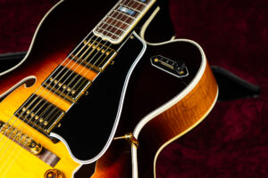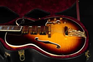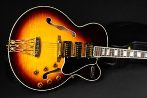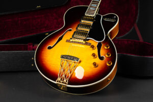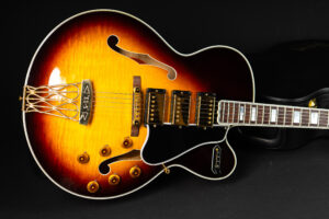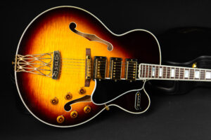 Beautiful 2009 Gibson Custom Shop ES-5 Switchmaster with James Hutchins Masterlabel (means that the legendary luthier, the late James “!Hutch” Hutchins built the whole guitar himself). The ES-5 Switchmaster is the successor of the ES-5 model with 3 PAF humbuckers (57 Classics in this case) and a 4-way pickup selector switch, offering a variety of tonal characteristics. A beautiful guitar in near mint condition. The strap-pin on the back has been slightly relocated – otherwise it’s all original. Comes with COA and original case.