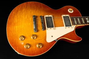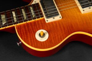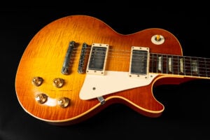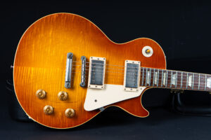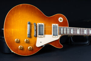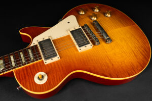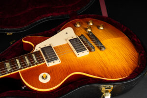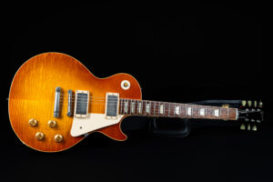 This is a great one guys: 2010 Gibson 59 Les Paul reissue with a super nice authentic maple top. Skinnerburst Vibes! The former owner equipped it with a set of Seymour Duncan Custom Shop Joe Bonamassa signed pickups, Vintage Inspired pots and Schwarz hardware. Those are really expensive upgrades (worth almost 1000€) and improve the guitar’s tone drastically. Such a great sounding Les Paul! There are some light scratches and a few dings and dongs but its only been played at home. Time for a stage now! Perfect weight with 4200g – ask Joe..it’s got balls. Comes incl. original case and all case candy.