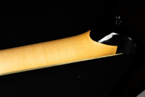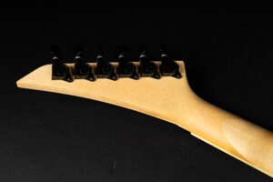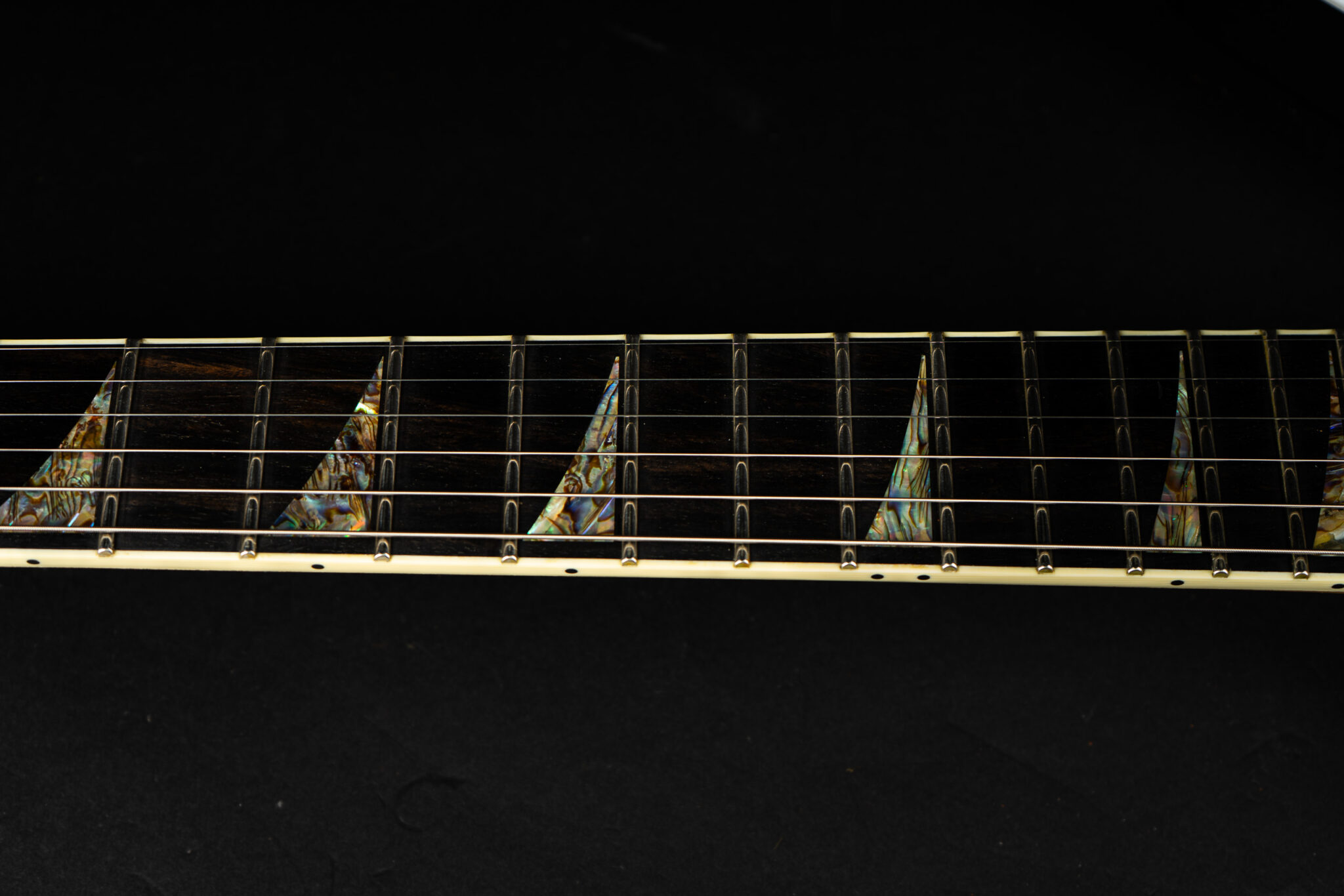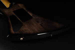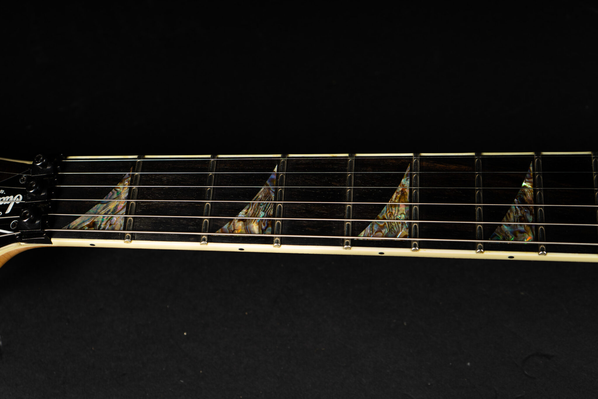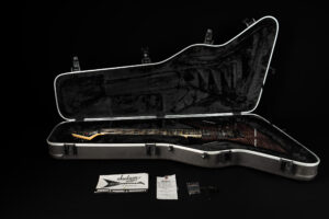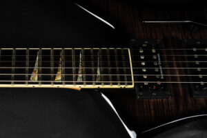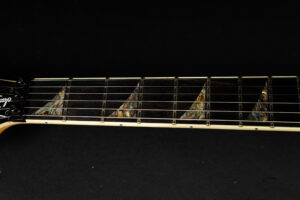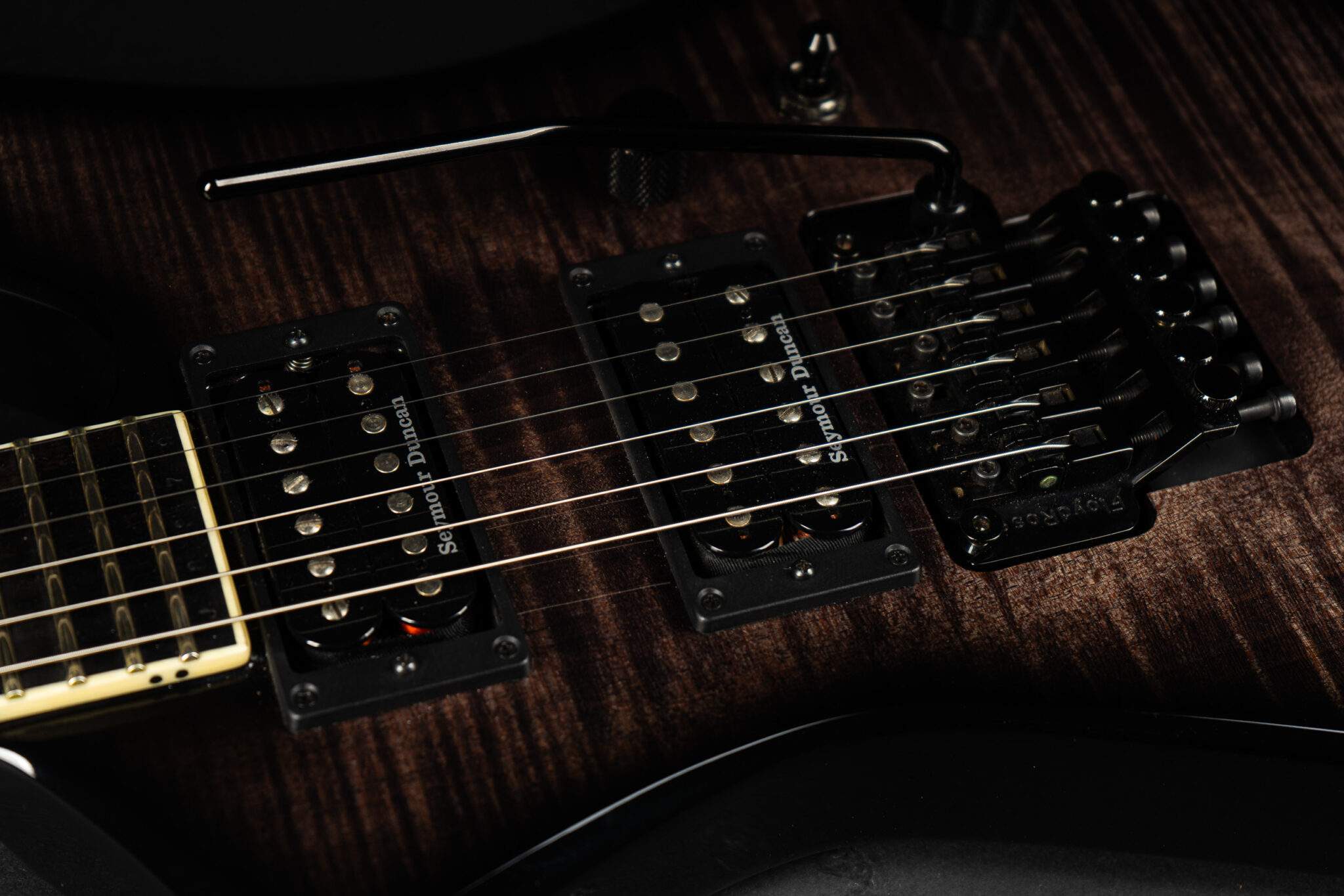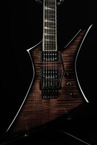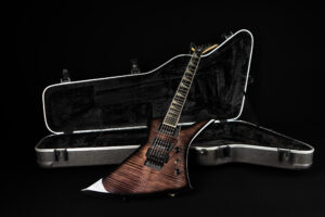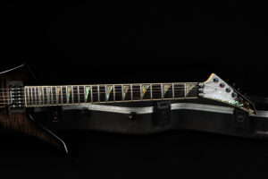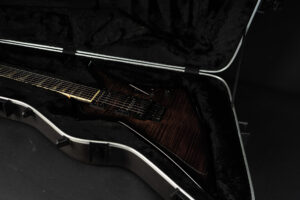 Jackson USA Custom Shop Kelly with flamed maple top in Transparent Ebony finish made in 2014. The guitar barely has any wear, a dent and a few scratches on the back, thats it. The pickups are the “industry standard” Seymour Duncan Jeff Beck TB-4 and SH-2N Jazz neck – the perfect pair you can hear on thousands of records. It also has nice Abalone inlays and Jackson logo. Alder body, neck through Maple neck with Ebony fingerboard – the back of the neck is unfinished. Black Floyd. Really nice one! Comes incl. original case and warranty card.