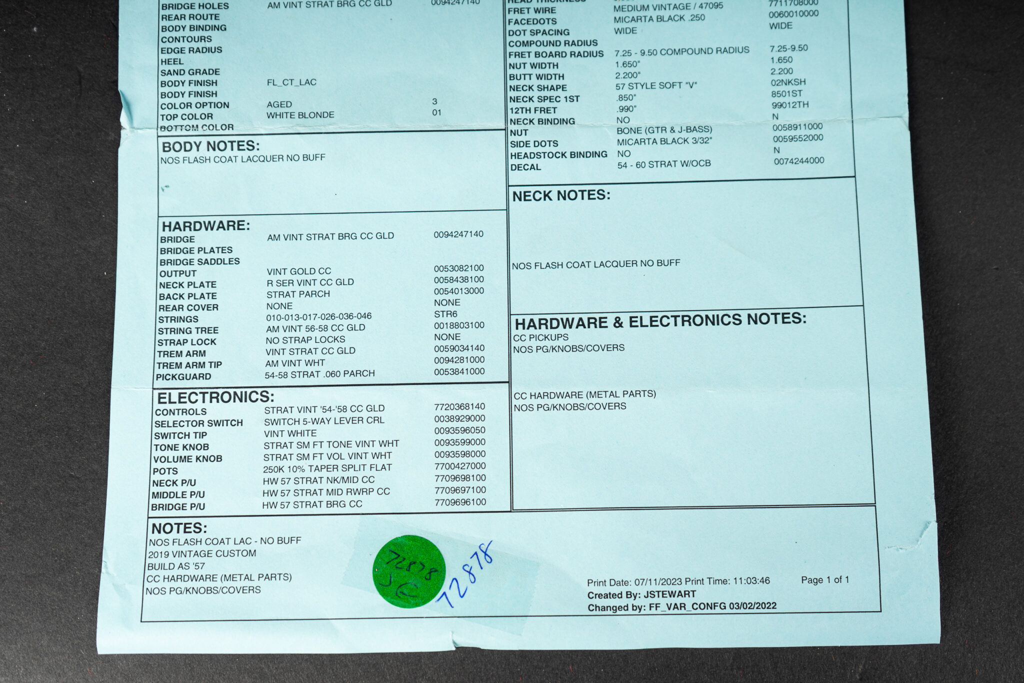 Fender Custom Shop 1957 Stratocaster NOS – Aged White Blond