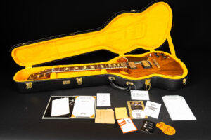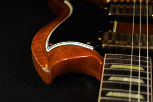 The first two guitars of our own “Inspired By GuitarPoint” series. We are celebrating some of our rarest vintage pieces that we found, purchased and sold during the years and make them available as Custom Shop reissues. One of the rarest guitars we’ve ever had was a factory original Natural finish with Gold hardware and stoptail 1961 Les Paul SG. It combined three features you would never expect to see on a 60s LP/SG so it was truly a unique instrument. We worked closely with the Custom Shop, they even did 4 finish samples to choose from and they really nailed it. We are super happy about the outcome. The original guitar was pretty worn, it was played for decades so we wanted a Murphy Lab Heavy Aging on the reissue. We are proud to present you this outstanding instrument which picks up the legacy of a real vintage gem and makes the look, tone and feel available for you! This is another example of why it’s special to buy at GuitarPoint – we’ve got nothing but the best for you.